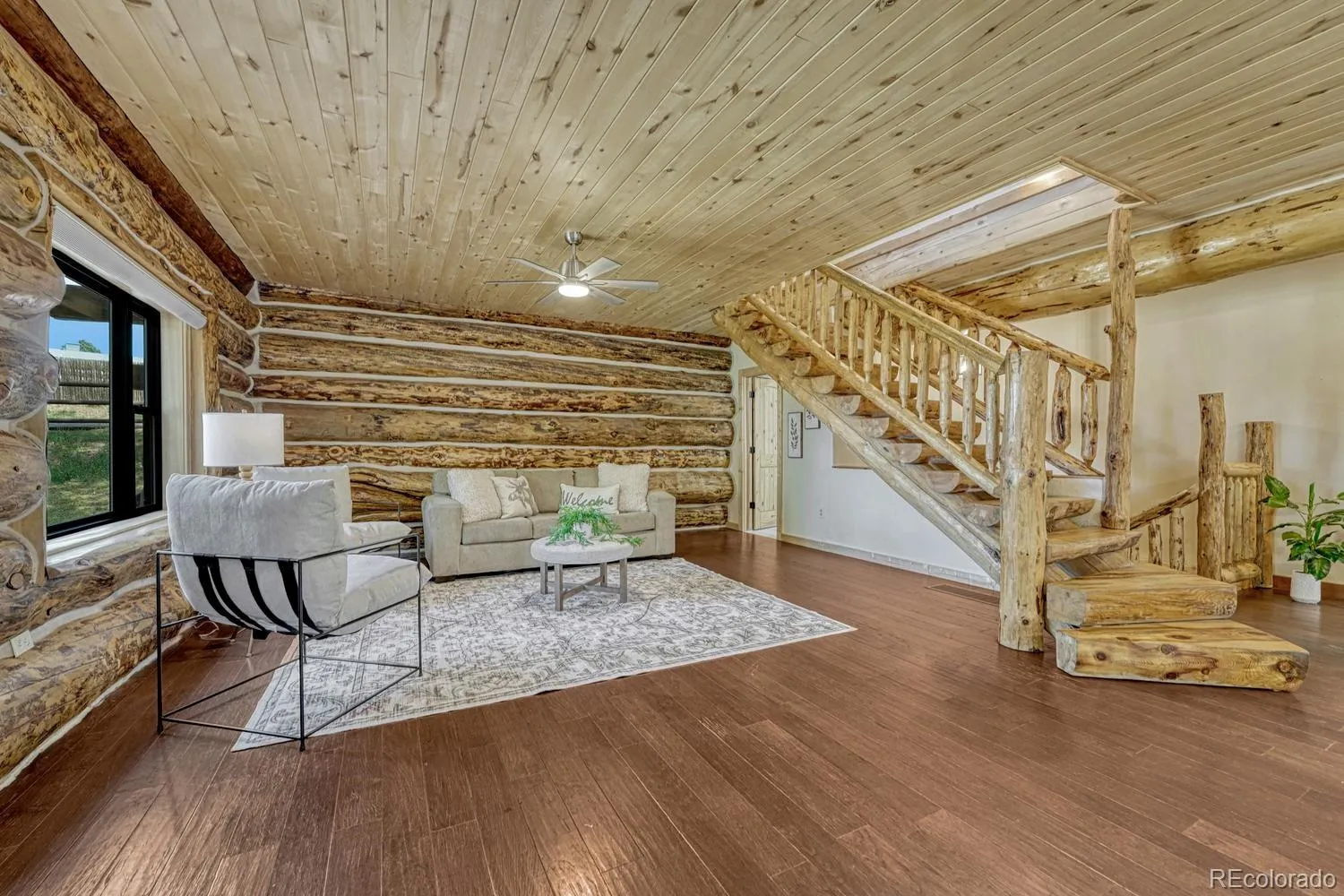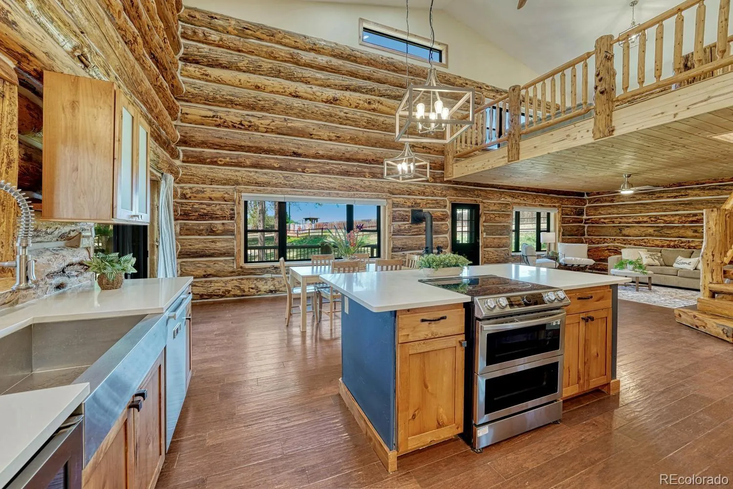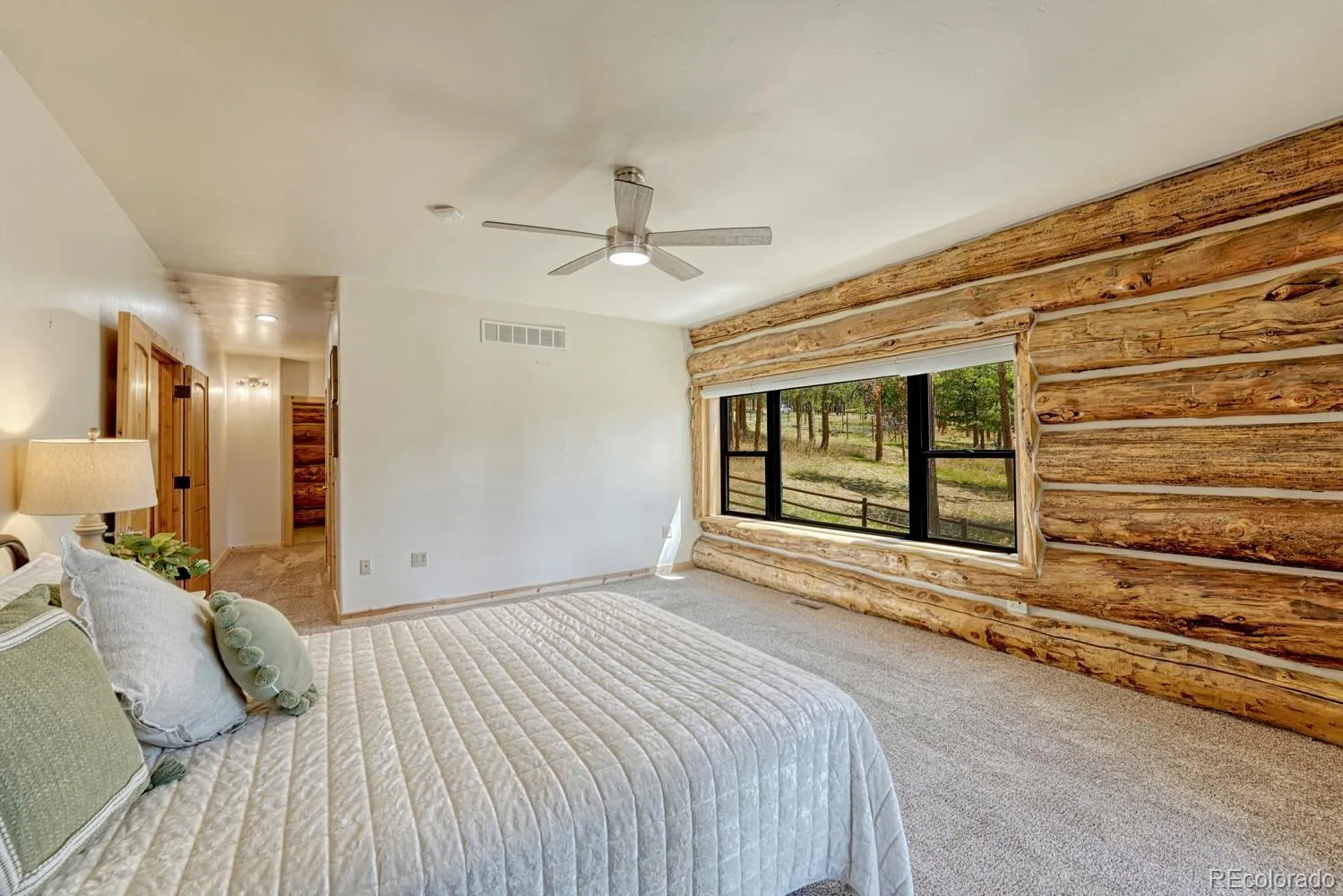 Custom log home in sought-after Indian Hills community with sweeping views of the Continental Divide. Set on a rare .85 acre level lot surrounded by the foothills that Denver buyers seek. Crafted from hand-peeled logs sourced from Steamboat Springs averaging 16” in diameter, this 4BR/4BA/4-car garage home pairs authentic mountain character with extensive upgrades completed over the past five years. EXTERIOR: Newly stained logs with completed caulking and chinking (2023), new gutters, Pella Impervia fiberglass windows and entry and storm doors, custom French doors from the dining room and primary suite. 50-year stone-coated steel roof with workmanship warranty (2024). Expansive wraparound deck sanded and stained (2022), fully fenced lot with motorized security gate, outdoor gas firepit, and patio pre-wired for hot tub. KITCHEN: Center island, walk-in pantry, custom tile backsplash, open flow to dining and living spaces, and a kitchen with a view. Updated with Miele dishwasher, induction oven, and new microwave. DINING/LIVING: Vaulted spaces anchored by log construction with fireplace that can supplement heat. PRIMARY SUITE: Main floor bedroom with private deck access with updated bath featuring new tile, cabinetry, and custom shower details. Convenient main floor laundry. SECONDARY BD/BAs: Two additional bedrooms upstairs with remodeled baths. LOFT: Flexible upper space ideal for office or workout area with some of the best views in the home. BASEMENT: Bedroom with upgraded ¾ bath offering additional living space. HVAC: 98% efficient furnace, heat pump as primary heat source with gas backup, integrated steam humidifier, UV air filtration, A/C, and Honeywell smart thermostat (2022/2023). Tankless hot water system. HOME EXTRAS: Hardwood flooring, hypoallergenic carpet, California Closet systems, automated blinds, radon mitigation, whole-home generator hookup, 220 EV-ready garage, 4-car garage with quiet smart openers (2022). Unincorporated for lower taxes and NO HOA.