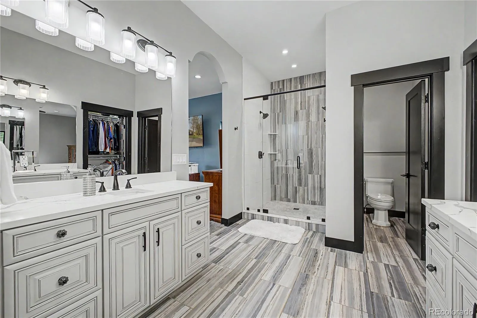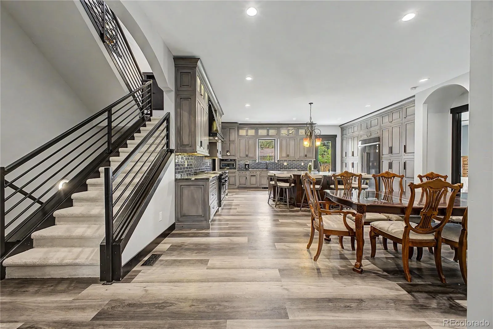 Rare opportunity in the Belmar neighborhood to own a one-of-a-kind remodeled home with a 6 car heated garage, separate upper-level ADU, and unmatched entertaining space just minutes from Denver. Tucked on a quiet dead-end street in one of Lakewood’s most convenient locations, this custom property offers 4 bedrooms, 5 bathrooms, multiple living spaces, and a private additional unit above the garage ideal for an in-law suite, guest quarters, teen retreat, home office, rental opportunity, or flexible multi-generational living. The upper-level entertainer’s dream features a true saloon-style gathering room with a 10-seat built-in bar, beer tap, refrigerators, game room, second family room, private his and her baths creating an unforgettable space for hosting friends and family. The chef’s kitchen is built for gatherings with a massive leathered granite island, seating for 8, luxury plank flooring, abundant prep space, and open-concept flow. Car collectors, hobbyists, and business owners will love the oversized heated and insulated garage with car lift, room for 6+ vehicles, RV storage, boat storage, workshop space, oversized doors, multiple 220V outlets, EV charging capability, and upgraded LED lighting. Additional upgrades include Andersen Windows windows, two fireplaces, tankless water heater, second water heater, vaulted ceilings, walk-in closets, and quality finishes throughout. Enjoy unbeatable proximity just 2 minutes to Target, Whole Foods Market, Walmart, Belmar shopping, restaurants, parks, theaters, and everyday conveniences, with quick access to 6th Avenue for an easy commute to downtown Denver or the mountains. Perfect for buyers seeking a luxury home with a true ADU, guest suite, income opportunity, oversized garage, and Colorado lifestyle living.