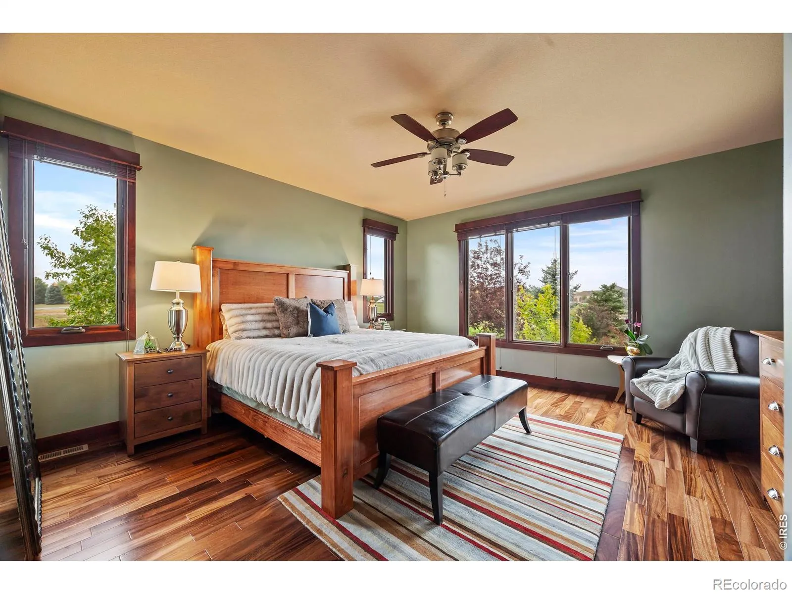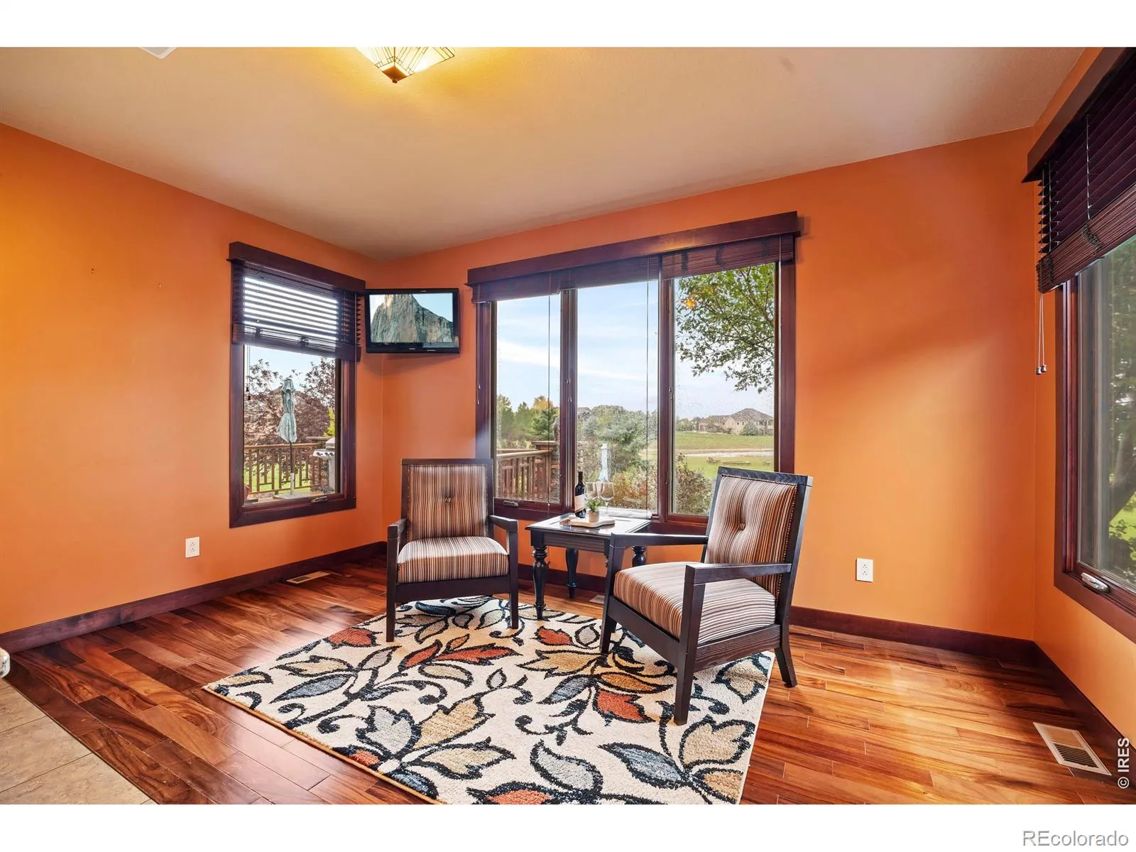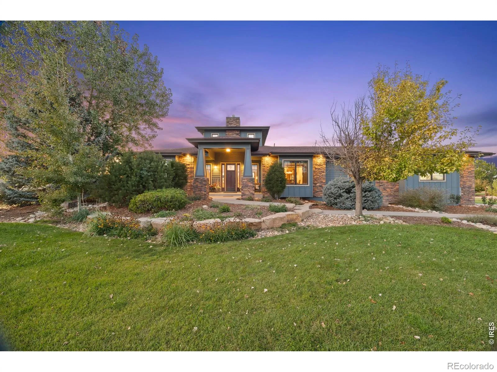 Stunning blend of luxury and Colorado charm in this Prairie-style 4-bed, 4-bath ranch at Soaring Eagle Ranch. With over 5,000 sq ft on 1.8 acres backing to the neighborhood pond, this home offers sweeping mountain views, high-end finishes, and timeless design. The chef’s kitchen features cherry wood cabinetry, granite counters, and a spacious layout ideal for entertaining. A fully finished walkout basement includes a custom bar, theater, and exercise room. Multiple expansive outdoor living areas provide the perfect setting to enjoy the Colorado outdoors. A rare opportunity in one of Northern Colorado’s most sought-after communities.
