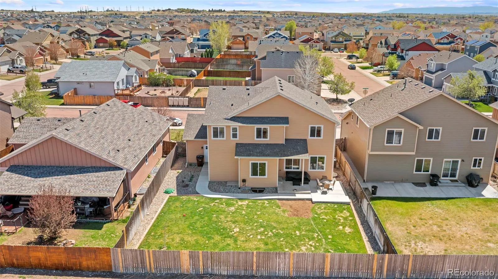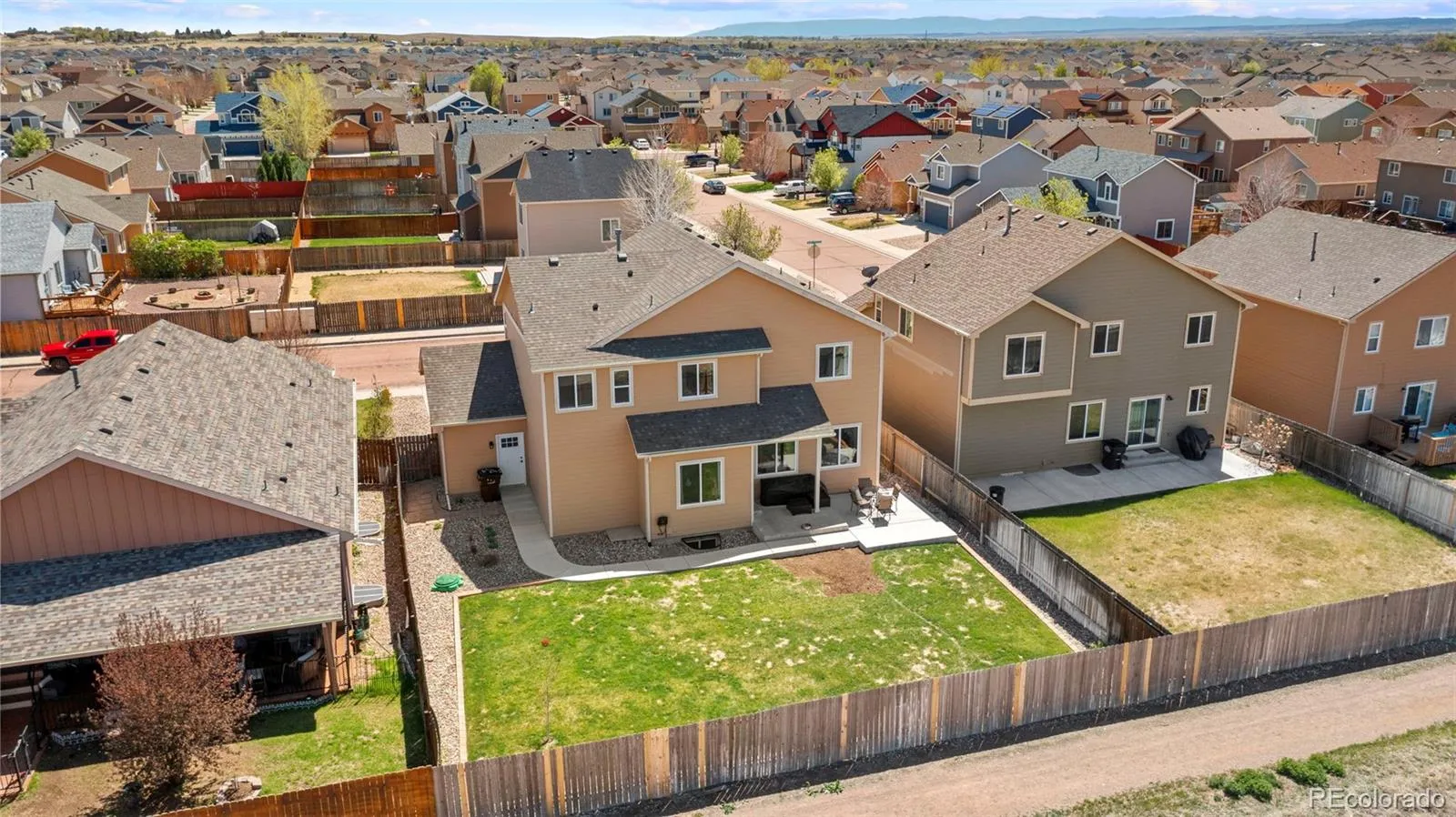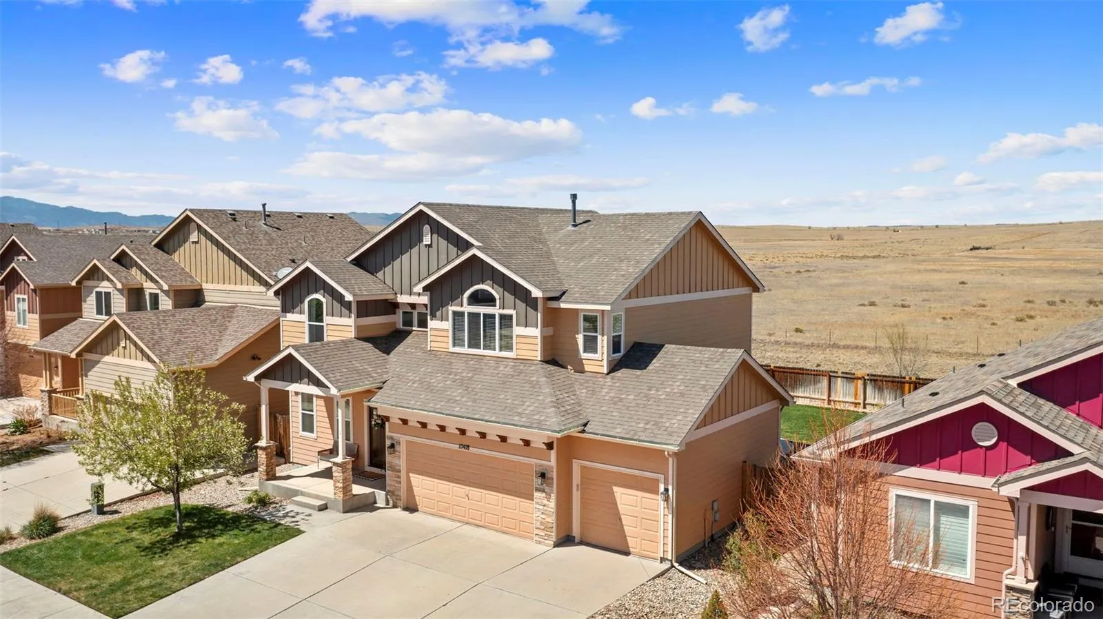 Stunning Home with 4-Car Garage in Coveted Lorson Ranch. Welcome Home—where function meets flawless design in this beautifully maintained 4-bedroom, 3-bath home with over 3,100 square feet of living space. Perfectly positioned on a cul-de-sac in the heart of Lorson Ranch, this gem offers both impressive curb appeal and an interior that stuns at every turn. Step inside to a light-filled open layout featuring wood-style flooring, a cozy fireplace, and a neutral-yet-bold color palette that complements every modern aesthetic. The kitchen is a dream, boasting white shaker cabinets, granite countertops, a gas stove, stainless steel appliances, and a subway tile backsplash. The island with seating becomes the hub for both entertaining and everyday living. Upstairs, retreat to a spacious primary suite with vaulted ceilings, a luxurious 5-piece bath, and an expansive walk-in closet. Three additional bedrooms, two with walk-in closets, and a full bath and laundry room complete the upper level. The basement is unfinished and ready for your vision. Let’s talk garage space. The rare 4-car tandem garage is fully equipped with openers on both doors, custom shelving, and room for hobbies, tools, or storing your weekend toys. Enjoy a professionally maintained backyard with an extended concrete patio, privacy fencing, and no rear neighbors, just open views. Recent upgrades include a new furnace (2023), new window screens and roof (2024), light fixtures, updated blinds, new kitchen faucet, and more. Bonus Features: Water softener, Vaulted ceilings, Energy-efficient forced air system, screened back door, Beautiful entry staircase, and upgraded fixtures throughout. The driveway faces the perfect direction for quick snow melt. Homes like this, designed with intention, updated with care, and offering unmatched garage space, don’t last long. Don’t miss your chance to own one of Lorson Ranch’s finest.