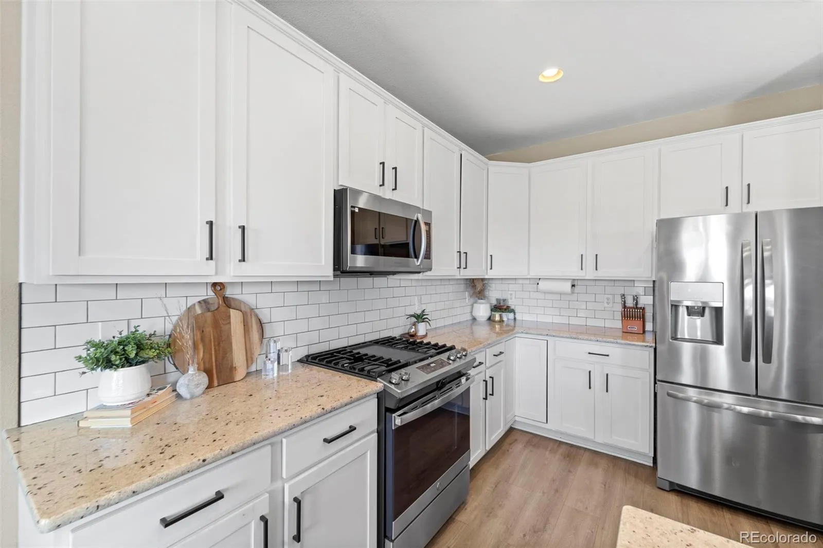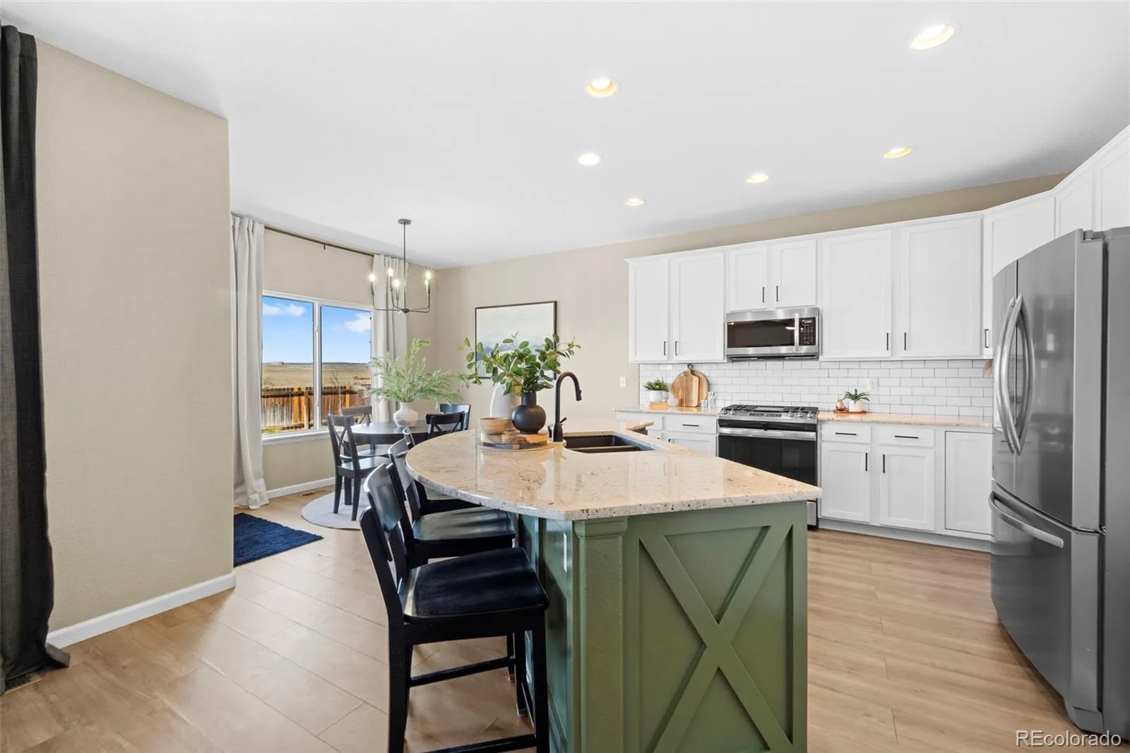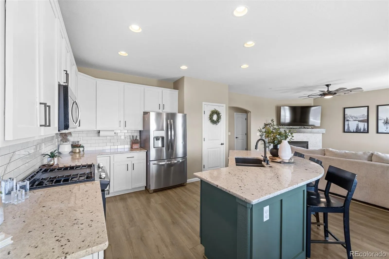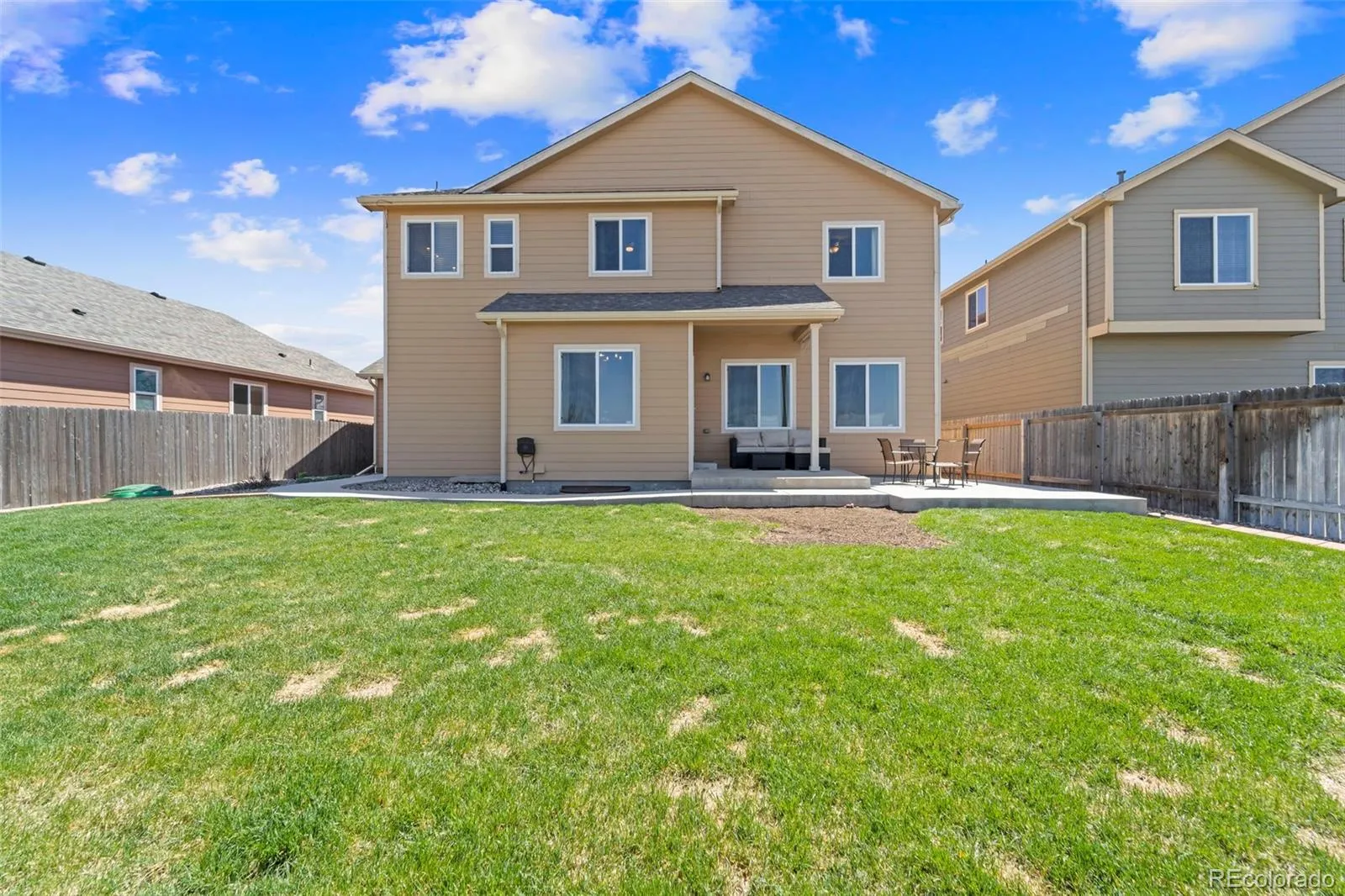 Stunning Home with 4-Car Garage in Coveted Lorson Ranch. Welcome Home—where function meets flawless design in this beautifully maintained 4-bedroom, 3-bath home with over 3,100 square feet of living space. Perfectly positioned on a cul-de-sac in the heart of Lorson Ranch, this gem offers both impressive curb appeal and an interior that stuns at every turn. Step inside to a light-filled open layout featuring wood-style flooring, a cozy fireplace, and a neutral-yet-bold color palette that complements every modern aesthetic. The kitchen is a dream, boasting white shaker cabinets, granite countertops, a gas stove, stainless steel appliances, and a subway tile backsplash. The island with seating becomes the hub for both entertaining and everyday living. Upstairs, retreat to a spacious primary suite with vaulted ceilings, a luxurious 5-piece bath, and an expansive walk-in closet. Three additional bedrooms, two with walk-in closets, and a full bath and laundry room complete the upper level. The basement is unfinished and ready for your vision. Let’s talk garage space. The rare 4-car tandem garage is fully equipped with openers on both doors, custom shelving, and room for hobbies, tools, or storing your weekend toys. Enjoy a professionally maintained backyard with an extended concrete patio, privacy fencing, and no rear neighbors, just open views. Recent upgrades include a new furnace (2023), new window screens and roof (2024), light fixtures, updated blinds, new kitchen faucet, and more. Bonus Features: Water softener, Vaulted ceilings, Energy-efficient forced air system, screened back door, Beautiful entry staircase, and upgraded fixtures throughout. The driveway faces the perfect direction for quick snow melt. Homes like this, designed with intention, updated with care, and offering unmatched garage space, don’t last long. Don’t miss your chance to own one of Lorson Ranch’s finest.