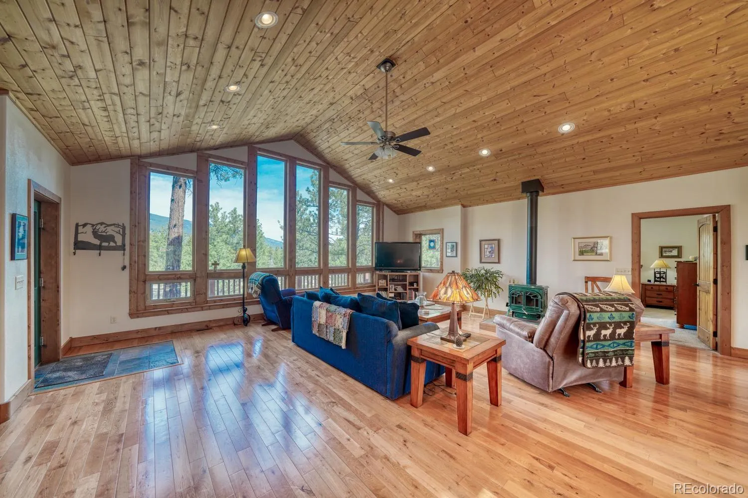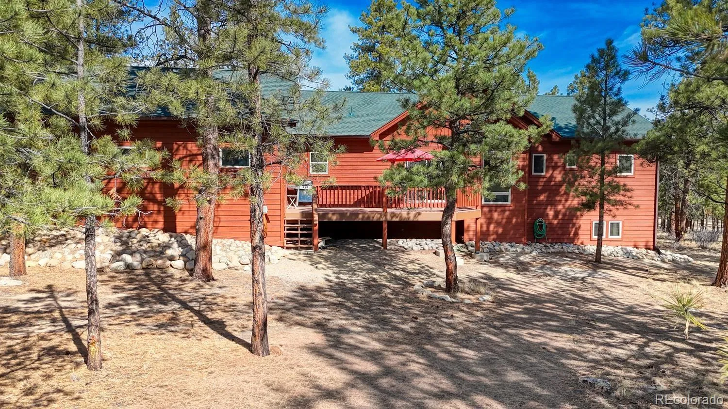 Welcome to this beautiful custom home located in the highly desirable Game Trail Subdivision, offering comfort, quality craftsmanship, and stunning mountain living. The open floor plan is highlighted by beetle-kill pine ceilings, pre-finished oak flooring, and a cozy fireplace in the living room, framed by large picturesque windows that bring the outdoors in. The well-designed kitchen features hickory cabinets, granite countertops, soft-close drawers, and convenient pullouts, making meal preparation and entertaining a breeze. The primary bedroom on the main level offers deck access along with a spacious ensuite bath featuring dual sinks and a walk-in shower. The lower level provides additional living space with a comfortable family room, two additional bedrooms, a mechanical room, and abundant storage options. Additional highlights include a Steffes heating system, oversized 2-car garage with shelving, and inviting front and back decks perfect for relaxing and enjoying the mountain setting. Recent improvements include a new roof in 2024, exterior re-stained in 2025, and a newer hot water heater. The circular driveway adds convenience and curb appeal, and the home is offered furnished for an easy transition. This property combines thoughtful design, recent upgrades, and the sought-after lifestyle of the Game Trail community.