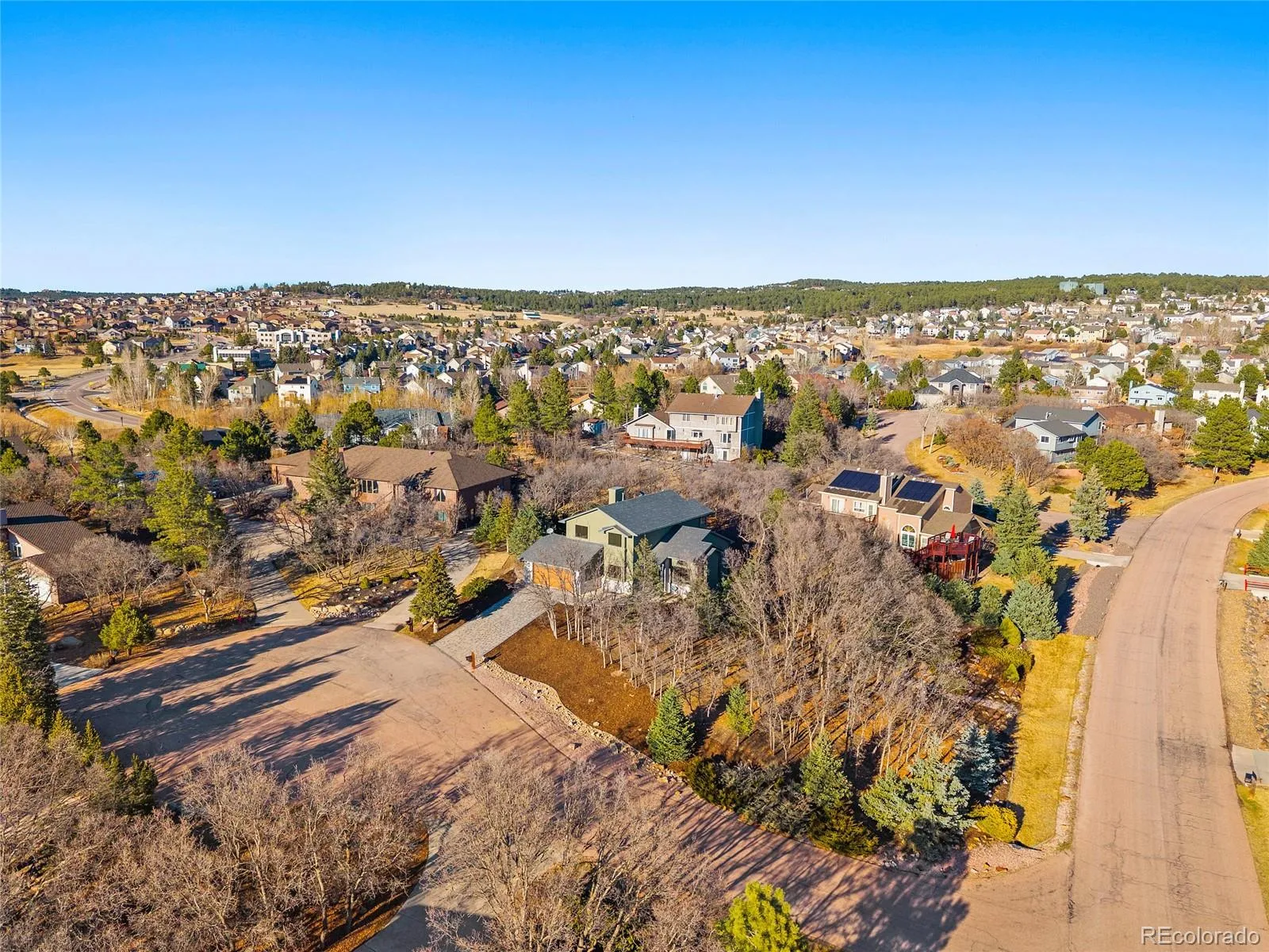 Set on nearly half an acre at the end of a quiet cul-de-sac in the sought-after Gleneagle community, this beautifully updated home offers a rare blend of privacy, mature trees, and modern design-all within Academy District 20 and just minutes from Fox Run Regional Park with quick access to I-25. Beautifully wooded, the property feels peaceful and secluded from the moment you arrive. A brick-laid driveway welcomes you home, while the backyard offers an inviting outdoor retreat with an elevated deck accessible from the living room, and a walkout basement opening to a concrete patio-perfect for entertaining or enjoying Colorado’s mountain air. Inside, the home has been extensively updated throughout. New flooring, fresh paint, and updated railings create a clean, modern feel, while large windows fill the home with natural light-even in the basement. The renovated kitchen was designed for everyday living and entertaining, featuring new cabinetry, quartz countertops, and premium Café appliances including a double-oven 6-burner gas range and Hauslane hood. The kitchen flows into the main living area where a cozy gas fireplace creates a warm gathering space. Upstairs, the primary suite offers a quiet retreat with sound-insulated walls. The five-piece bathroom features a soaking tub, floor to ceiling tiled shower, dual vanities, and a U by Moen smart shower system with digital temperature control. The walkout basement includes a bright open layout with a private suite, en-suite bath, and kitchenette with cabinets, sink, and refrigerator-ideal for guests or flexible living space with its own entrance. Additional updates include a lifetime composite tile roof (30-50yrs) installed in 2022, along with a new furnace and air conditioning system. Located minutes from Fox Run Regional Park and the Promenade Shops at Briargate, this home offers the perfect balance of privacy and convenience and is perfectly positioned in one of northern Colorado Springs’ most desirable communities.