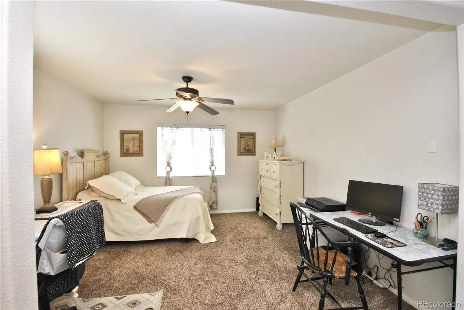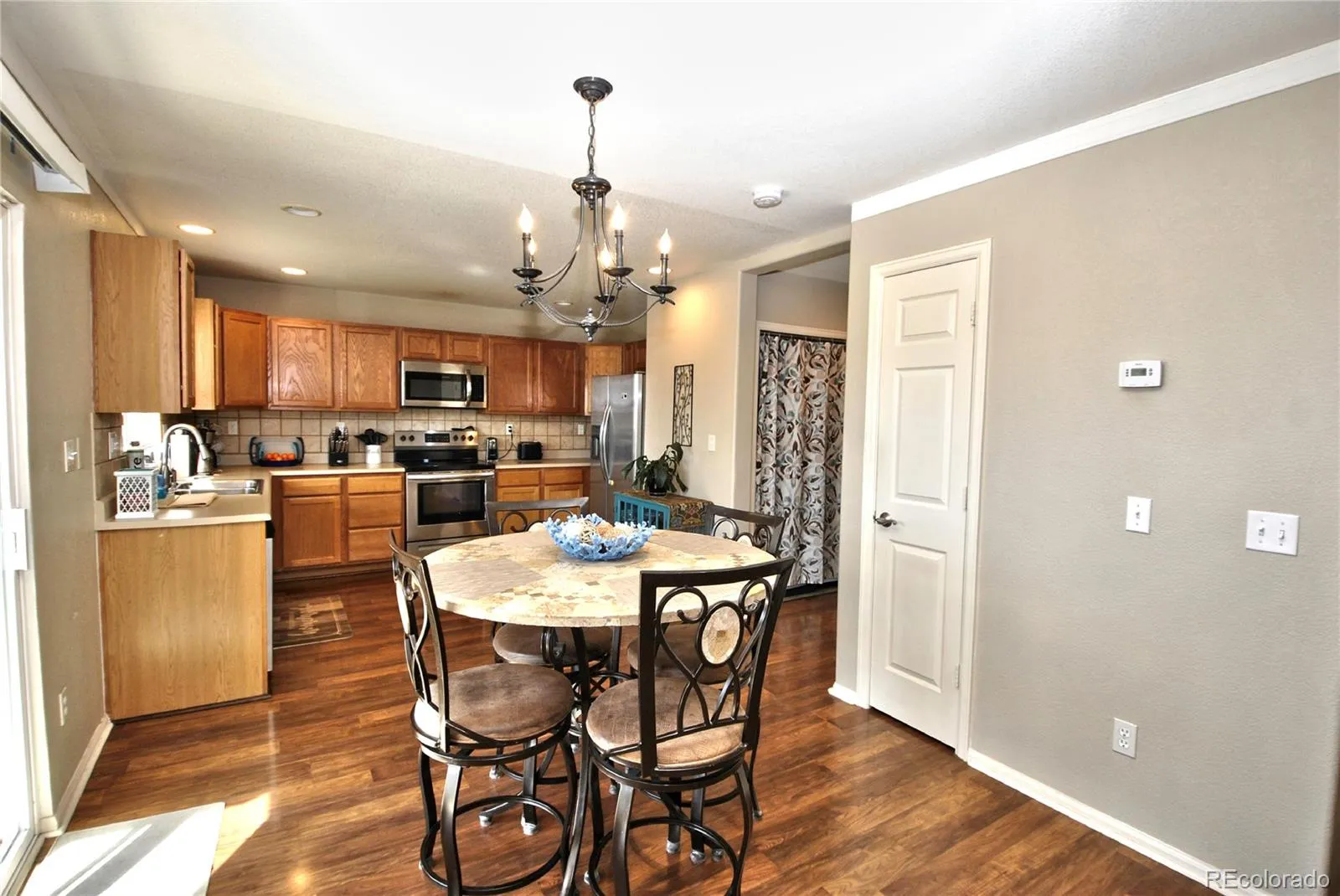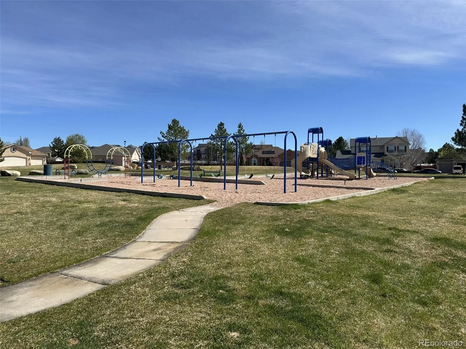 Step into this beautiful two-story home featuring a bright, open floor plan on the main level perfect for both everyday living and entertaining. The living room, dining area, and kitchen flow seamlessly together, creating a welcoming open-concept space enhanced by low-maintenance Pergo flooring throughout. Cozy up in the living room by the gas fireplace, while guests enjoy the convenience of a main-level half bath. The laundry area is also thoughtfully located on the main floor for added ease. The spacious kitchen is a true highlight, complete with stainless steel appliances, a stylish tiled backsplash, abundant cabinetry, and a pantry for extra storage. From the dining area, step into your private, fenced backyard that backs to open space offering breathtaking views of Pikes Peak and a peaceful outdoor retreat. The front yard is beautifully maintained by the community, providing effortless curb appeal. Upstairs, you’ll find a versatile loft area ideal for a home office, media room, or additional living space. The upper level also includes a generous primary suite with a luxurious five-piece bath, two additional bedrooms, and a full bathroom. Additional features include central A/C, brushed nickel fixtures, window blinds, automatic sprinklers, and a neutral color palette throughout. Conveniently located near Peterson AFB, schools, parks, trails, and shopping, this home offers both comfort and convenience in a desirable setting.