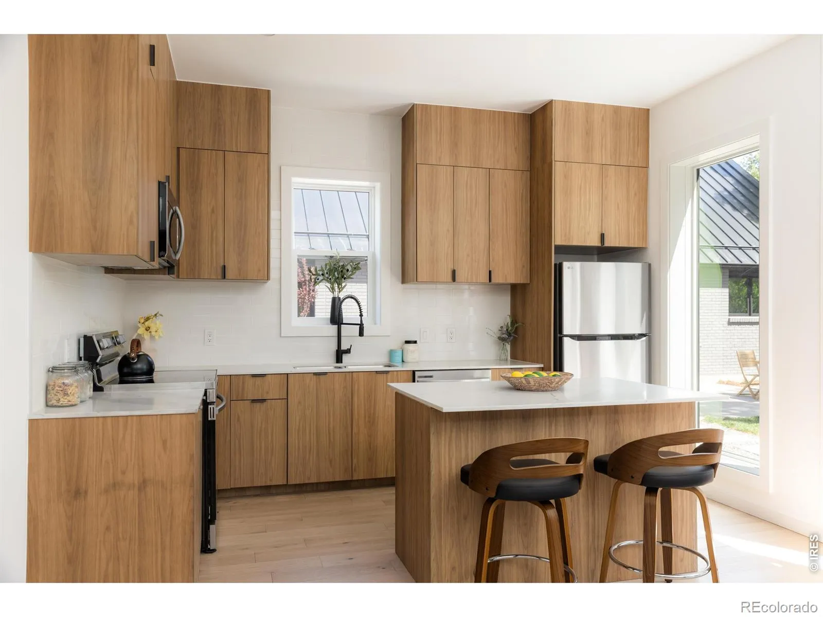 Fully remodeled in 2026 with a complete down-to-the-studs renovation and expansion, 1760 Hawthorn Place offers a turn-key opportunity on a quiet street in highly sought-after North Boulder. This 5-bedroom, 5-bathroom home features an open-concept layout with double-height ceilings, abundant natural light, skylights, and white oak hardwood floors throughout. A detached 511 sq ft ADU from Olerra provides a fully independent living space with a full kitchen, bathroom, living area, and integrated sleeping space, built with a steel frame and designed for energy efficiency and fire resistance, ideal for guests, multigenerational living, rental income, or a private office. In the main home, the kitchen is centered around a large island with custom cabinetry and flows seamlessly into the living and dining areas, with expansive sliding glass doors opening to a private, fully fenced backyard designed for indoor-outdoor living, complete with a patio, fire pit, and grill area. The main-level primary suite includes vaulted ceilings and a spa-like bathroom, while upstairs offers two en-suite bedrooms with vaulted ceilings and built-in desk niches. The finished lower level adds two additional bedrooms, a spacious rec room, oversized laundry, and storage. Additional features include an attached 2-car garage with EV rough-in, new mechanical systems, energy-efficient windows, updated plumbing and electrical, and professionally designed landscaping from Evoke. Located near Ideal Market, North Boulder Recreation Center, Growing Gardens, parks, and trails, this home offers modern construction, flexible living, and an exceptional North Boulder location.