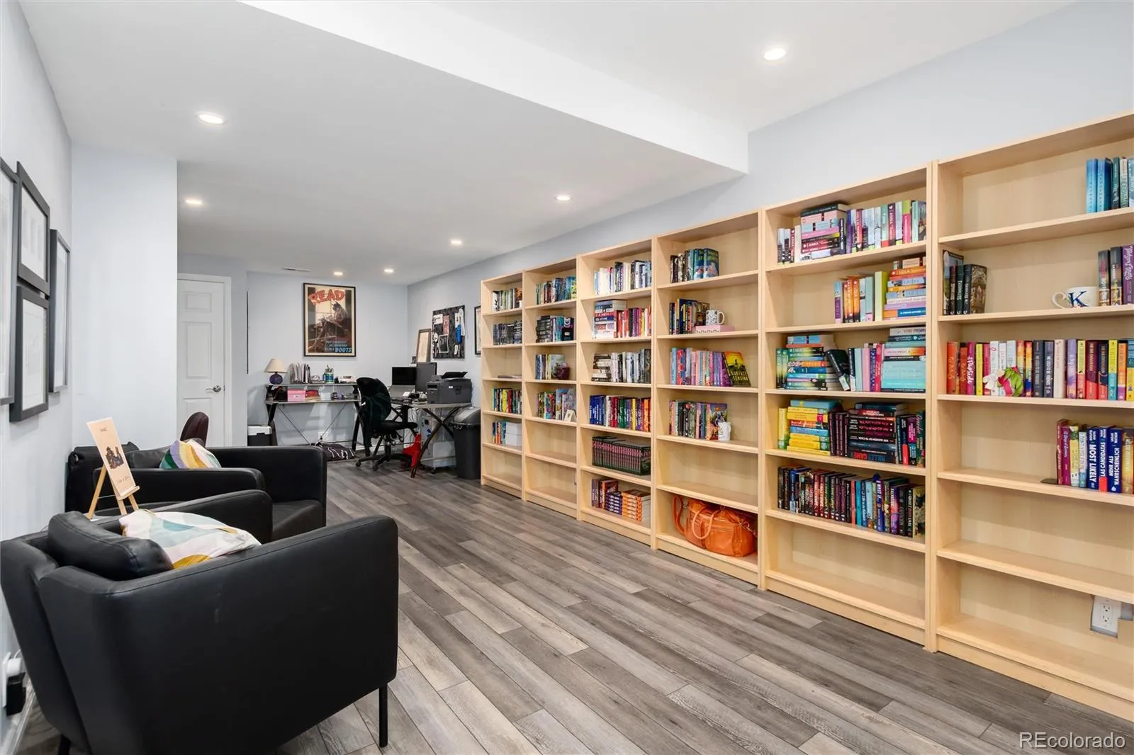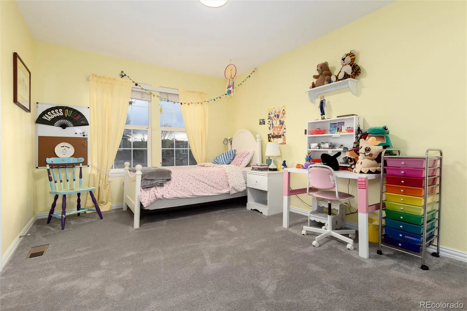 Outside, an updated walk-out deck connects to a fully fenced backyard with synthetic turf — water-wise and low upkeep year-round. The xeriscaped front yard continues that low-maintenance approach.