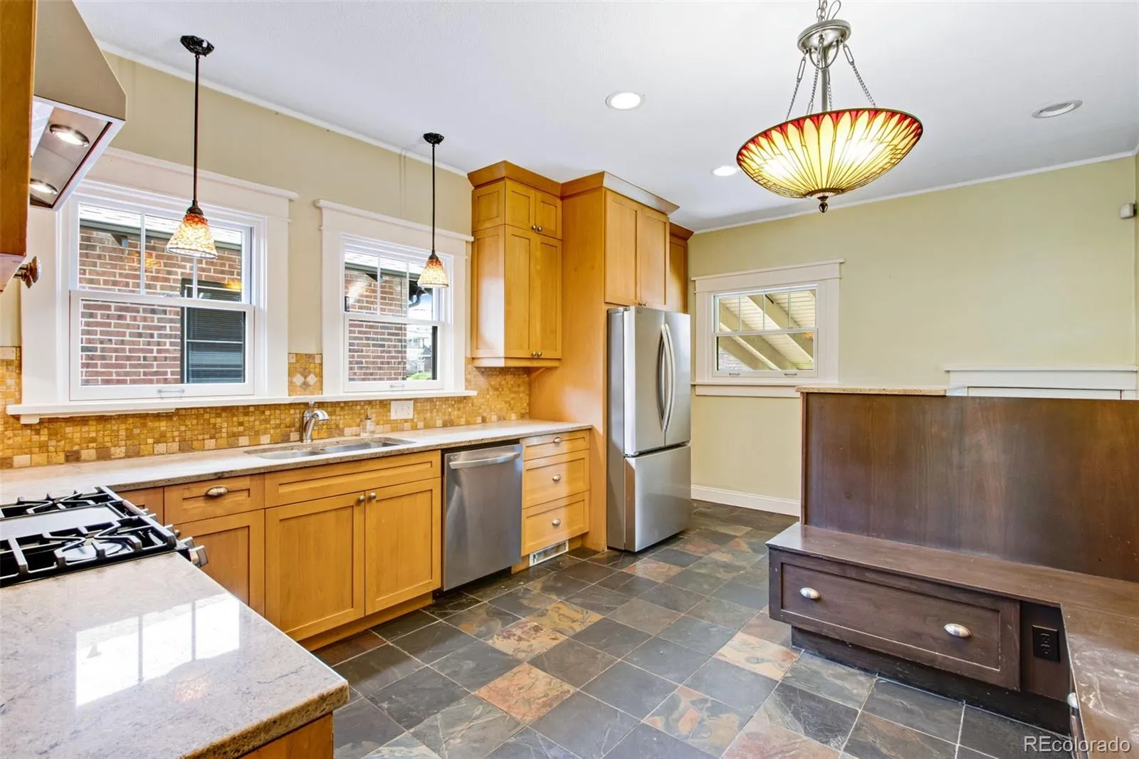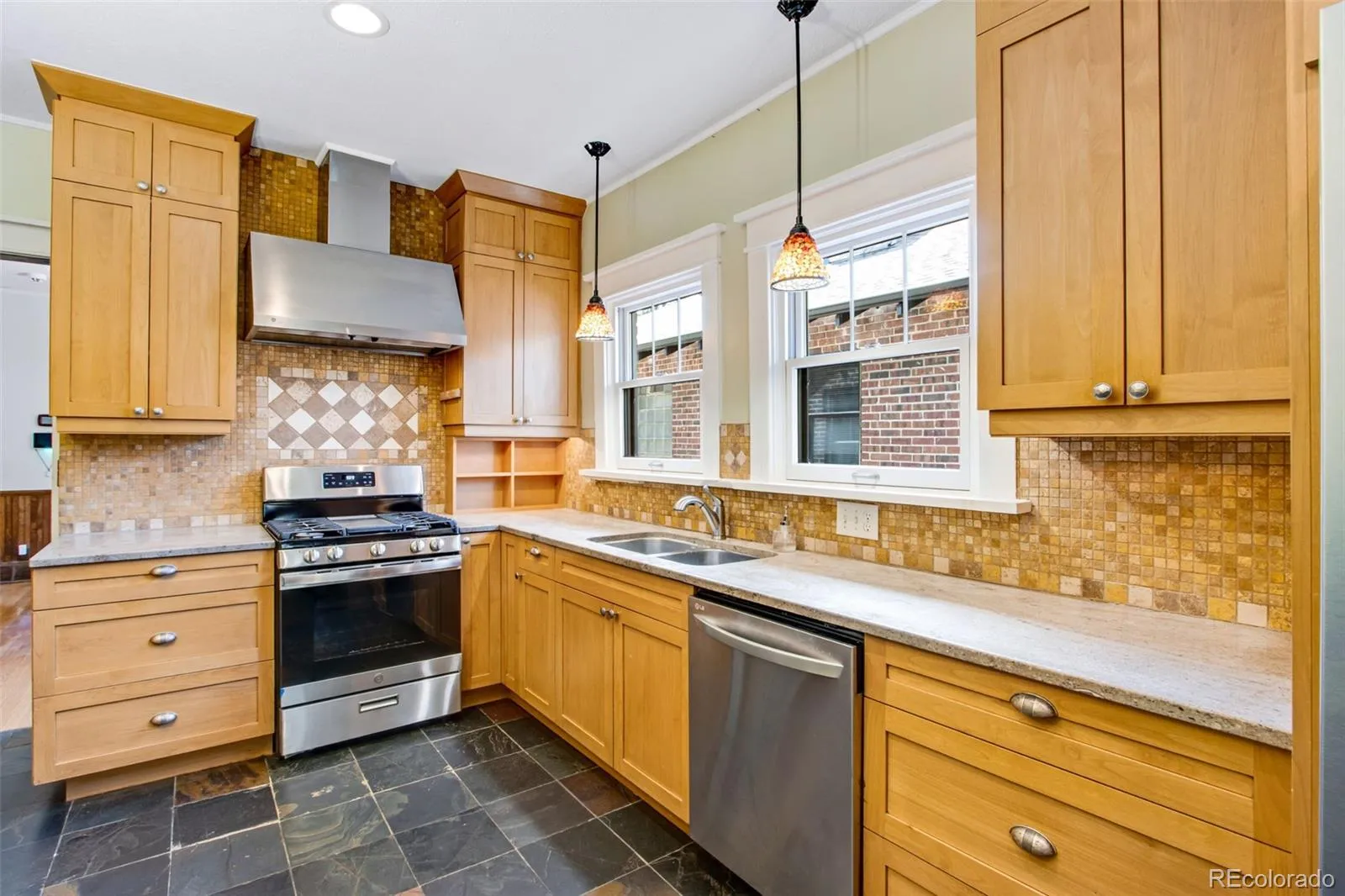 Beautiful Craftsman bungalow in the heart of Park Hill. Classic 1912 original character blends perfectly with modern updates. As you enter, you are greeted with formal living spaces that display beautiful natural woodwork, built-ins, original dining room hutch, gas fireplace, picture rails and wood floors.The thoughtfully renovated kitchen offers an eat-in area, brand new stainless appliances, granite countertops, ample cabinet space and storage.The main floor bathroom features subway tile and a glass shower door. The finished basement features a double staircase, family room, two bedrooms with egress windows, updated full bathroom and a large laundry room. Updates include windows, hot water heater, solar, roof (2014), air conditioning, new carpet and brand new appliances. Enjoy summer evenings on the amazing front porch or entertaining in the private backyard. Located blocks to local shopping and restaurants on 23rd and Cherry Street. Steps to City Park, Denver Zoo and the Museum of Nature and Science