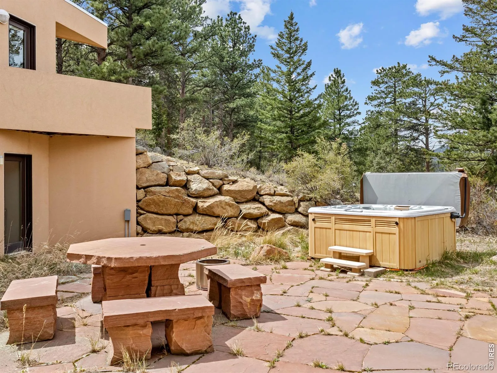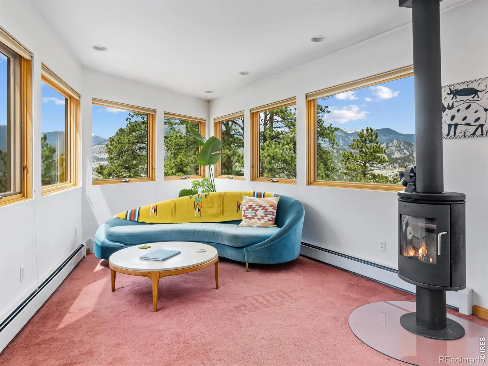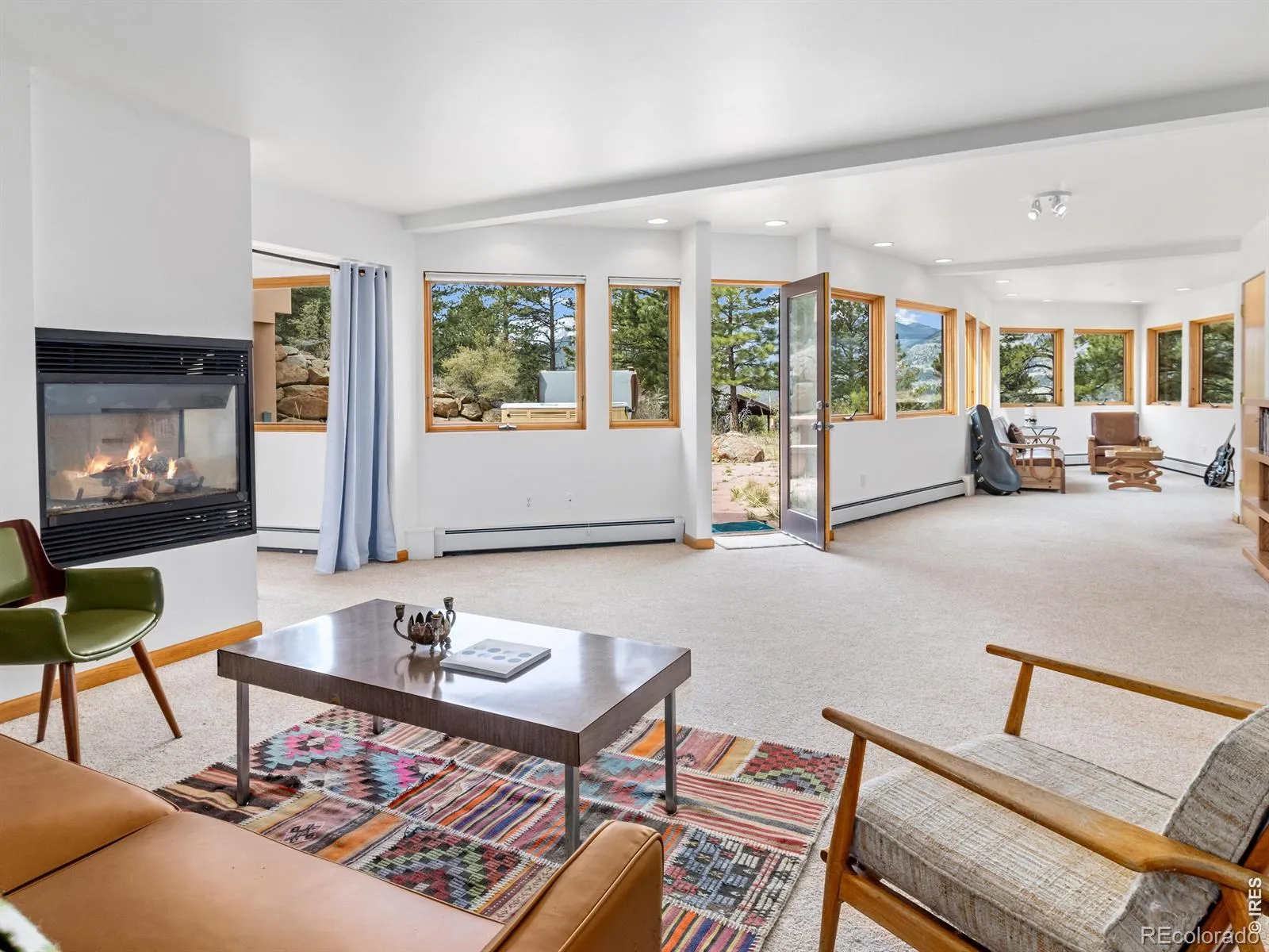 On the west side of Estes Park, 700 Spring St is anything but ordinary. This striking crescent-shaped home feels like it was sketched by an architect who refused to color inside the lines & the result is unforgettable. Perched at the end of a quiet road, the post-modern home delivers something rare: privacy, panoramic views of peaks & valley, & architecture that settles naturally into the landscape. The sweeping, curved design embraces its mountain surrounding. The concave facade wraps around a flagstone courtyard w/ a hot tub, framed by native landscaping & mountain backdrop. Inside, the design does something quietly elegant. Morning light enters along the inner curve & moves across the open interior throughout the day. Living, dining, & gathering spaces flow in a single unbroken gesture. Clean lines meet warm, livable spaces, w/ each level anchored by a double-sided gas fireplace. Red countertops & tile add a splash of color. Skylights & an unending line of windows bring the outside in, each window framing something beautiful. Lumpy Ridge fills one view, a massive lichen-covered boulder another, & the King Tut rock formation rises above it all. At night, the lights of the valley twinkle through the glass. The property backs to 8 acres of private Land Trust open space. Offering 3,334 finished sq ft across 2 levels, the home includes 2 BRs, 3 baths, a walk-in closet, main-level laundry, & a dedicated office where the mountain backdrop becomes your commute. Located in West Estes, you’re just over the hill from Rocky Mountain National Park, with easy access to hiking, wildlife, & everything that defines mountain living in Estes Park. Move-in ready where it counts. The bones & setting are exceptional, w/ room for a buyer to make cosmetic updates & add their own touch. That opportunity is reflected in the price. Quiet, privacy, & space at the end of Spring Street. This home is a conversation piece, a sanctuary, & a rare opportunity to own something truly unique.