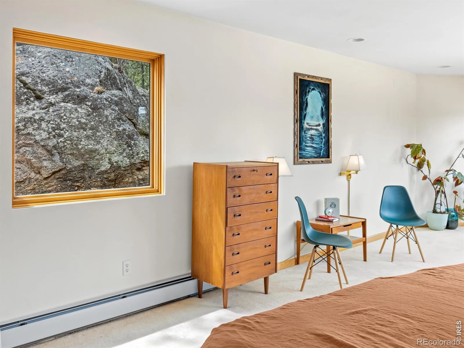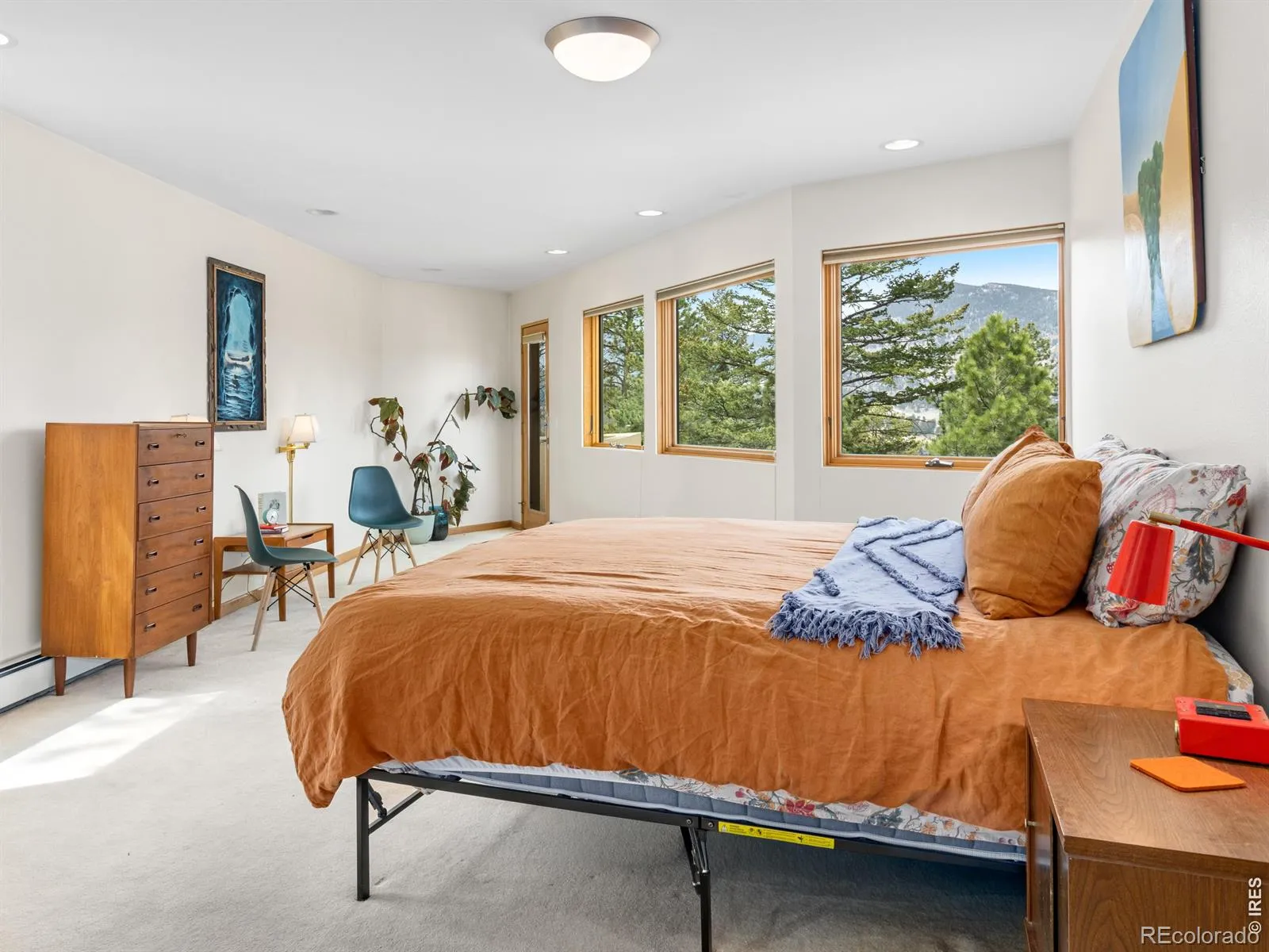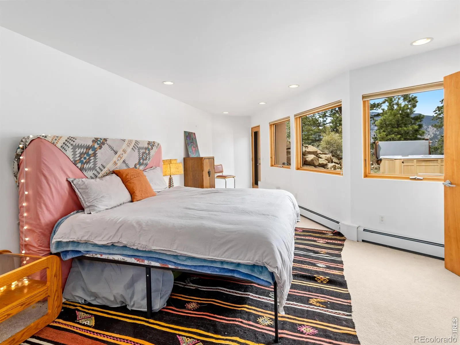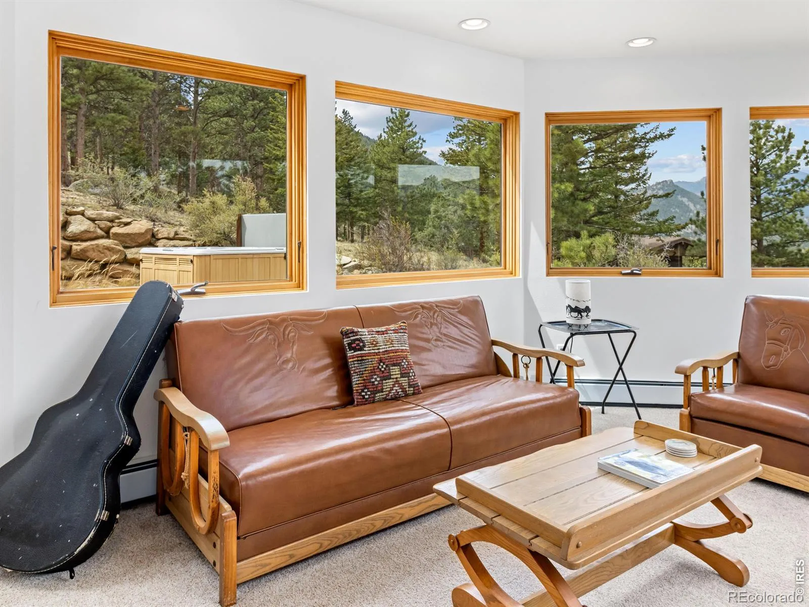On the west side of Estes Park, 700 Spring St is anything but ordinary. This striking crescent-shaped home feels like it was sketched by an architect who refused to color inside the lines & the result is unforgettable. Perched at the end of a quiet road, the post-modern home delivers something rare: privacy, panoramic views of peaks & valley, & architecture that settles naturally into the landscape. The sweeping, curved design embraces its mountain surrounding. The concave facade wraps around a flagstone courtyard w/ a hot tub, framed by native landscaping & mountain backdrop. Inside, the design does something quietly elegant. Morning light enters along the inner curve & moves across the open interior throughout the day. Living, dining, & gathering spaces flow in a single unbroken gesture. Clean lines meet warm, livable spaces, w/ each level anchored by a double-sided gas fireplace. Red countertops & tile add a splash of color. Skylights & an unending line of windows bring the outside in, each window framing something beautiful. Lumpy Ridge fills one view, a massive lichen-covered boulder another, & the King Tut rock formation rises above it all. At night, the lights of the valley twinkle through the glass. The property backs to 8 acres of private Land Trust open space. Offering 3,334 finished sq ft across 2 levels, the home includes 2 BRs, 3 baths, a walk-in closet, main-level laundry, & a dedicated office where the mountain backdrop becomes your commute. Located in West Estes, you’re just over the hill from Rocky Mountain National Park, with easy access to hiking, wildlife, & everything that defines mountain living in Estes Park. Move-in ready where it counts. The bones & setting are exceptional, w/ room for a buyer to make cosmetic updates & add their own touch. That opportunity is reflected in the price. Quiet, privacy, & space at the end of Spring Street. This home is a conversation piece, a sanctuary, & a rare opportunity to own something truly unique.