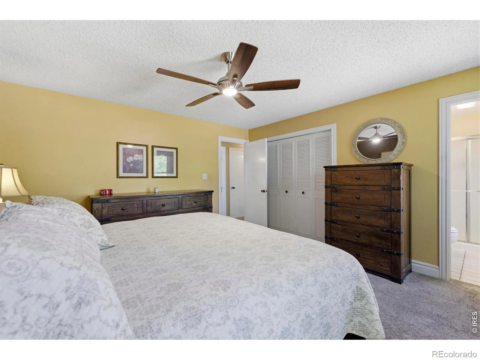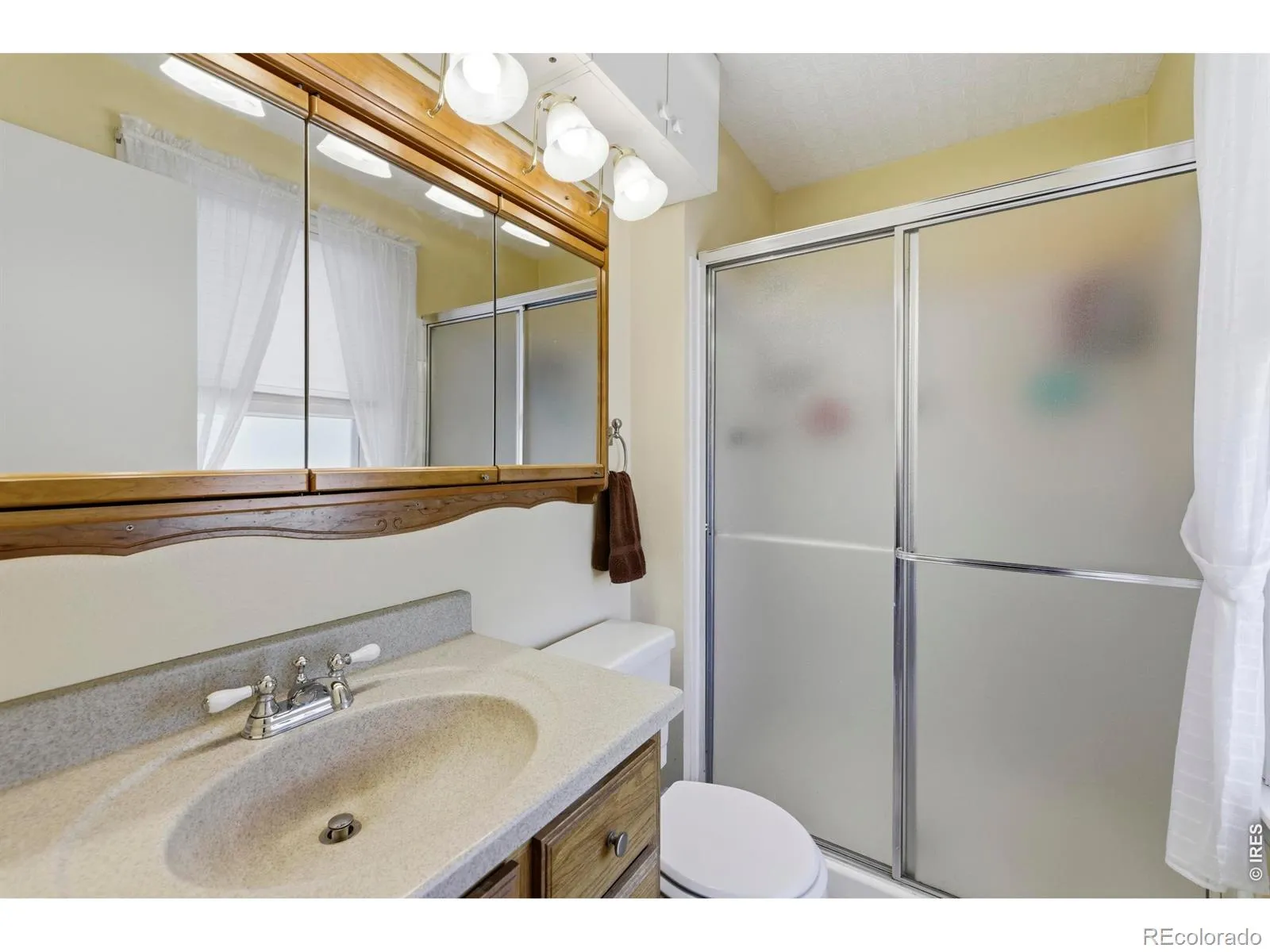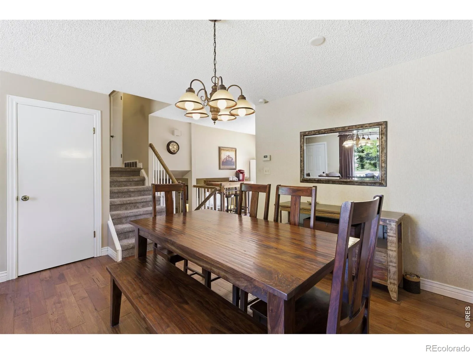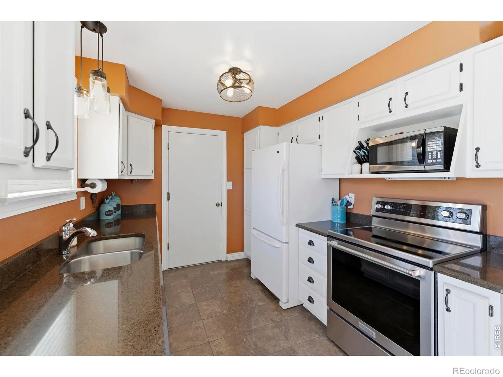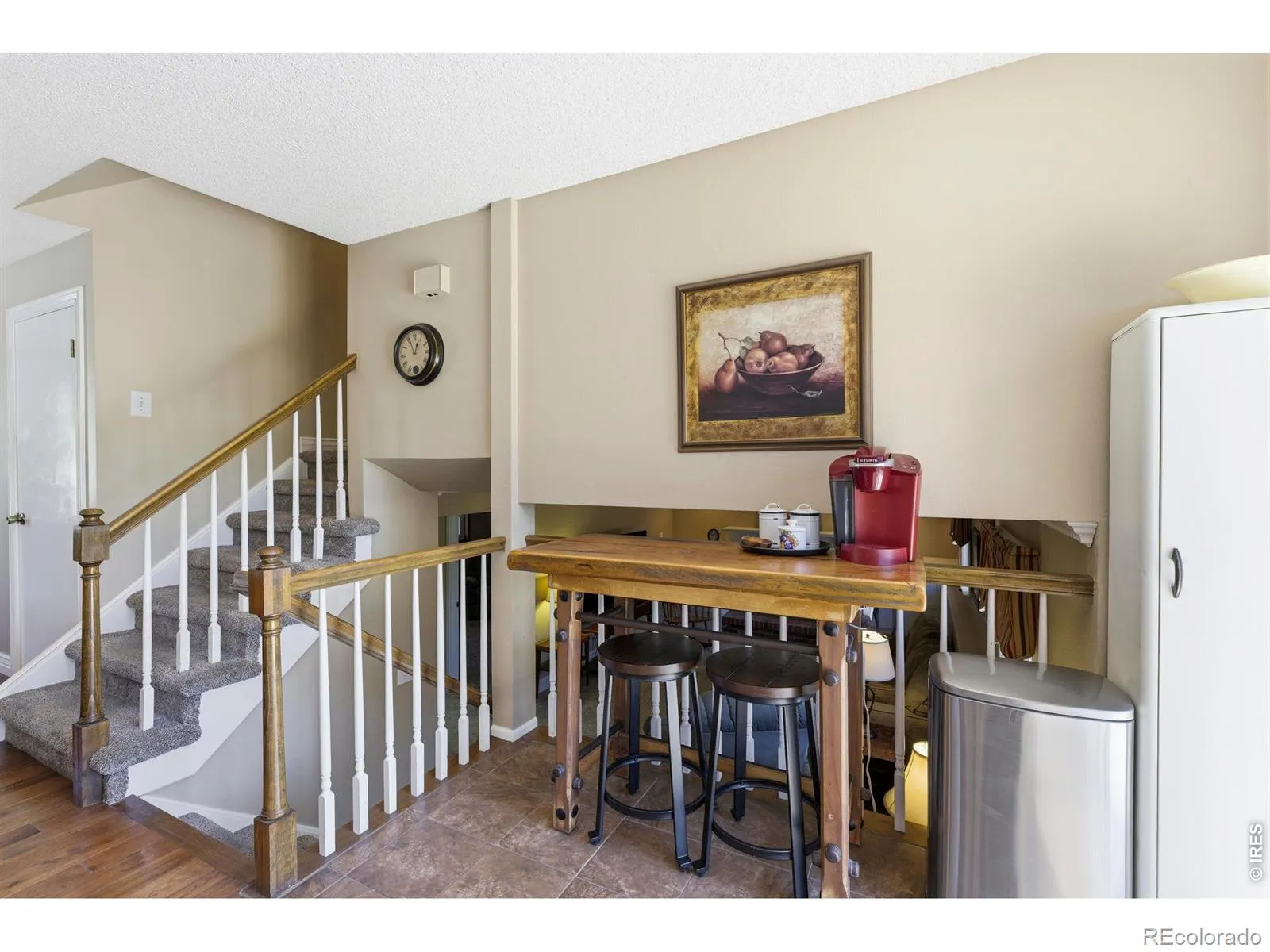 Character meets comfort in this well-maintained tri-level tucked in Loveland. Hand-scraped hickory floors throughout the main level add a level of warmth. The updated kitchen (2020) features new countertops, painted cabinets with fresh hardware, and updated lighting. Newer carpet throughout (2023) with upgraded pad adds comfort. Upstairs, the primary bedroom includes a private 3/4 bath, two additional bedrooms and a full bath. Head downstairs to a cozy family room with built-ins, the perfect spot to relax, along with a 4th bedroom, laundry, and half bath. Outside, it includes a large deck for entertaining. The backyard also includes a dedicated ancillary office space, a storage shed, and a full irrigation system with drip lines for the garden beds. The exterior was freshly painted in 2021, and the attached 2-car garage rounds out everything you need. 1-year First American Home Warranty also included.