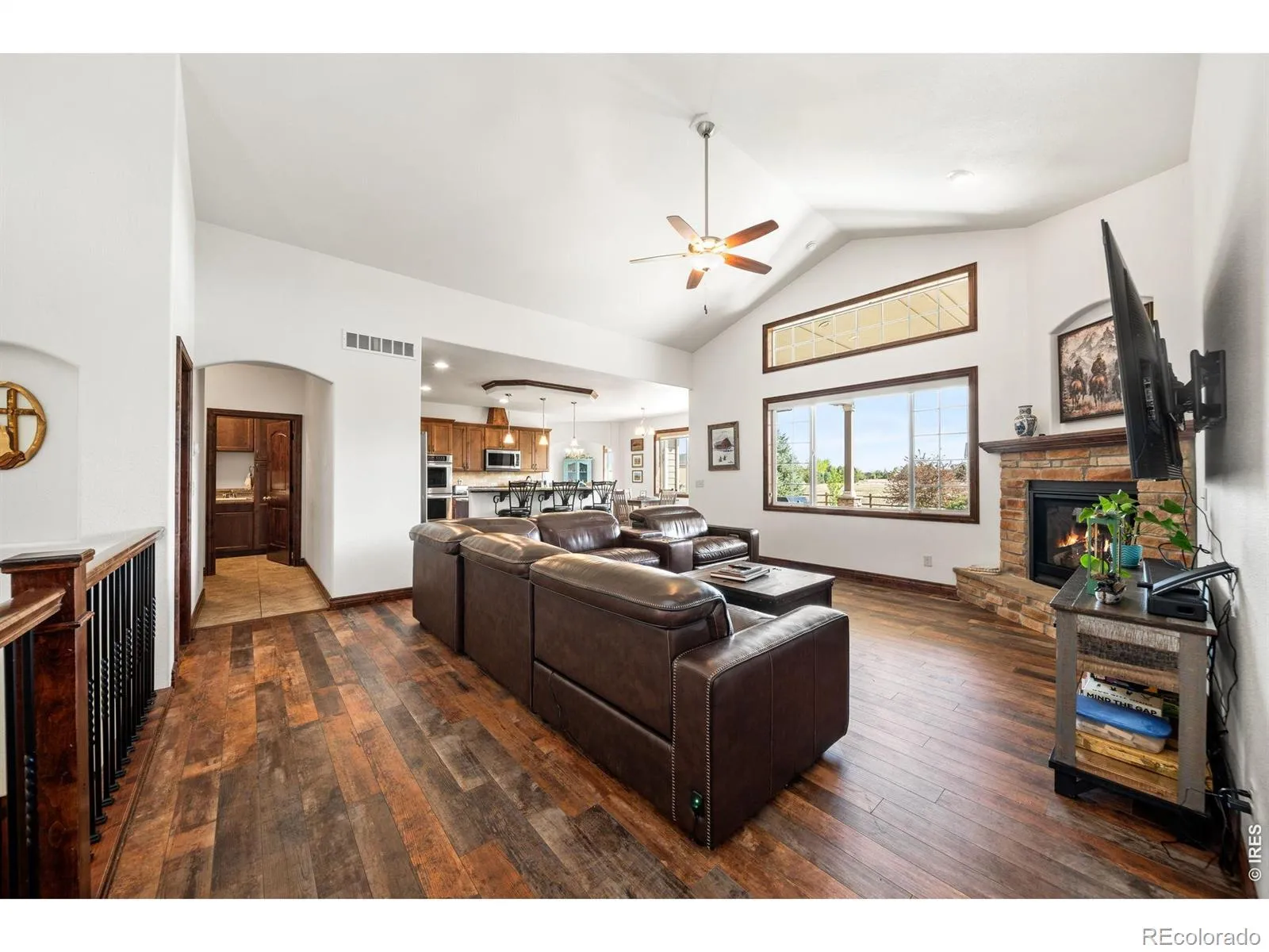 Beautifully designed ranch in the heart of Highpointe, ideally positioned adjacent to open space. From the moment you enter, you’re welcomed by a light-filled, flowing layout accented by rich wood floors and thoughtful design throughout. The open kitchen is both functional and inviting, featuring a pantry, center island, double ovens, and a sunny dining nook-perfect for everyday living and entertaining alike.The great room is anchored by a striking stone fireplace, creating a warm and comfortable gathering space, while the main-floor study with French doors offers a quiet retreat for work or relaxation. The primary suite provides a peaceful escape with a well-appointed 5 piece bath including a jetted tub and spacious walk-in closet. The partially finished basement expands your living space with a generous recreation room ideal for movie nights or hosting guests, along with an additional bedroom and bath, plus a wine storage room and ample space for storage or future expansion. Step outside to enjoy the vaulted covered patio, where the soothing sounds of the beautiful water fountain create a tranquil setting. The lush, fenced backyard offers space for play, entertaining, or simply unwinding and the oversized garage can store all your toys. Residents of Highpointe enjoy exceptional amenities including a resort-style pool with waterslide, kiddie pool, sports courts, and a well-appointed clubhouse. With convenient access to trails, shopping, and dining, this home delivers the perfect balance of comfort, convenience, and lifestyle.