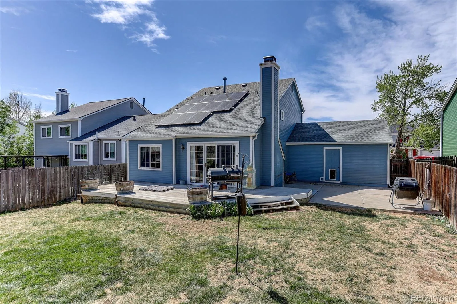 Enjoy this Seven Hills 2-Story with 3 beds, 2 full baths, over 1390+ sq.ft. finished area, and plenty of upgrades! With great curb appeal and covered front porch, this beautiful home is ready for you! The large living room includes Oak hardwood floors and wainscot finishes. An open dining room boasts wood floors, chandelier, and plenty of natural light! The spacious kitchen has low maintenance Formica countertops, S/S appliances, pantry, and much more. An oversized kitchen island means there’s plenty of food prep space! The main level bedroom can be an office or host your guests with the added convenience of a main level bath. Trex deck for your outdoor entertaining! Upstairs, an oversized primary bedroom has space for your furniture needs, and ceiling fan. The well-appointed primary bath includes tub, wood sink vanity, tile surround, and much more! Additionally, you will find 2 good-sized bedrooms, and full bath on the upper level. The large basement is ready to finish as desired. There’s no lack of storage in this great home. 2 car garage parking with room for all your toys! Fully fenced! Washer and dryer stay! Beautiful yard! Minutes to DIA! Central A/C! Furnace new 2024! Free and Clear Solar panels reduce your energy costs. 2025 production of 4.4 Megawatts resulting in significant energy savings. Cherry Creek schools! Move-in ready!
