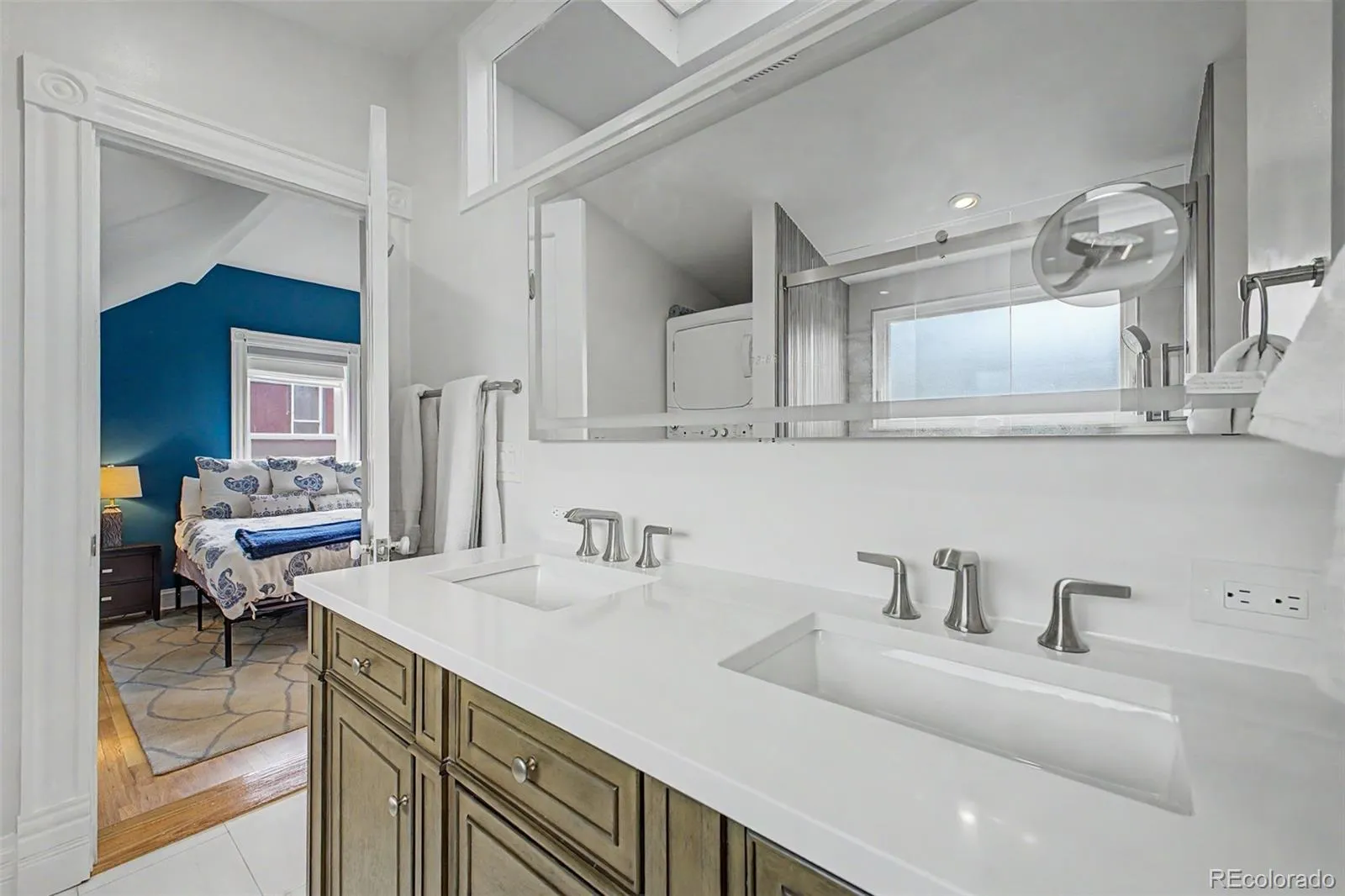 Upstairs, two true primary suites offer privacy & flexibility, while the lofted space between them, filled with natural light from skylights, creates a perfect spot to work, read, or reset.