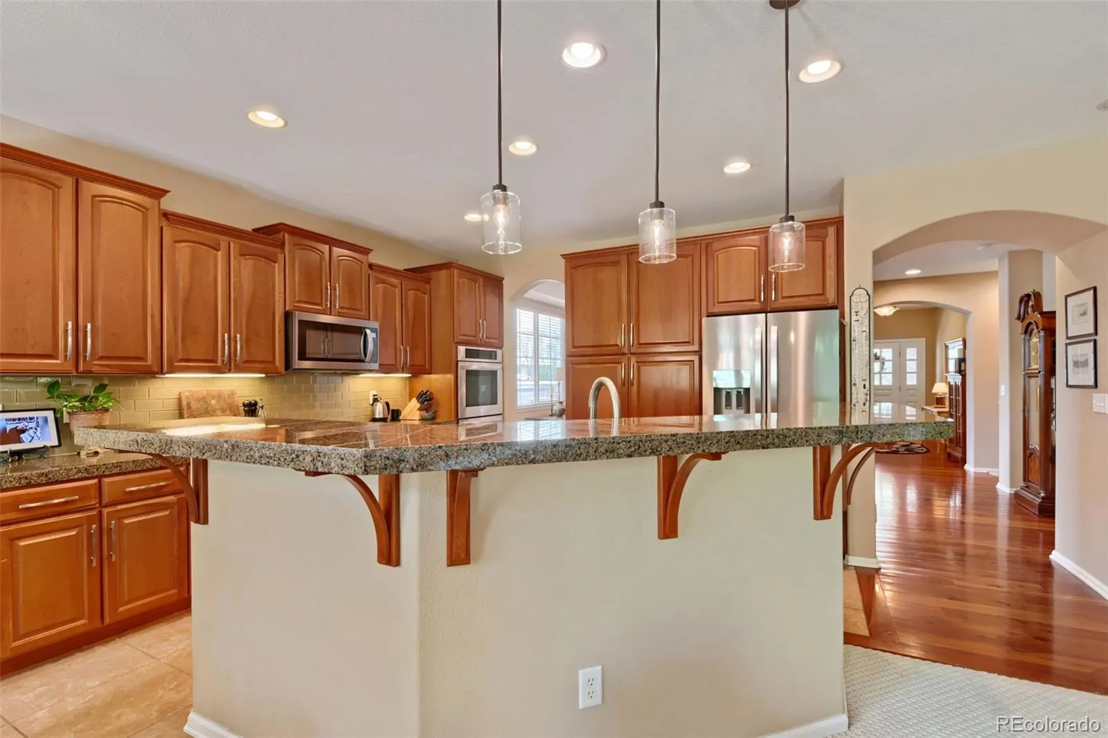 Welcome Home! This stunning sprawling ranch in Brighton East Farms with high-end upgrades, offers an unparalleled living experience in a prime location. This versatile and spacious layout boasts 3 bedrooms, 3 bathrooms and a private study/den. Step into the foyer through the custom made entry door and experience gleaming cherrywood floors guiding you into this bright open concept floorplan. Working from home is easy with the private study/den just off the foyer which has easy access to the completely renovated custom 3/4 bath. This set up allows for the versatility of the study to act as a 4th bedroom. The nice sized formal dining room has convenient access to the chef inspired kitchen which offers stunning solid cherrywood cabinets with full-extension pull-out’s, granite countertops, glass backsplash, under cabinet lighting, stainless appliances including gas stove top and full size double ovens. The breakfast nook allows for casual dining and views of the backyard through the full glass French doors. The cozy living room has a gas fireplace with a custom mantle, built-in cherrywood shelving unit, CF and surround sound speakers. Head down the hall to a well appointed full bath, upgraded laundry room w/utility sink & cherrywood cabinets, and two nice sized secondary bedrooms. Lastly, you’ll find the spacious primary bedroom and a spa like 5 pc. en-suite with dual sink vanity, and dual walk-in closets. The un-finished basement has ample lighting and built-in storage shelves, roughed in plumbing, crawl space and grated window wells. There is plenty of room in the 3 car heated garage with LED lighting, built-in shelving, and a 220V outlet. A very private professionally designed and landscaped backyard oasis offers the perfect place to relax and entertain. Additional upgrades & features include: Central A/C, Low maintenance Delta faucets throughout, Newer water heater, Tile roof, Sprinkler system front & back (incl all trees & plants). Move in and enjoy! See it today!