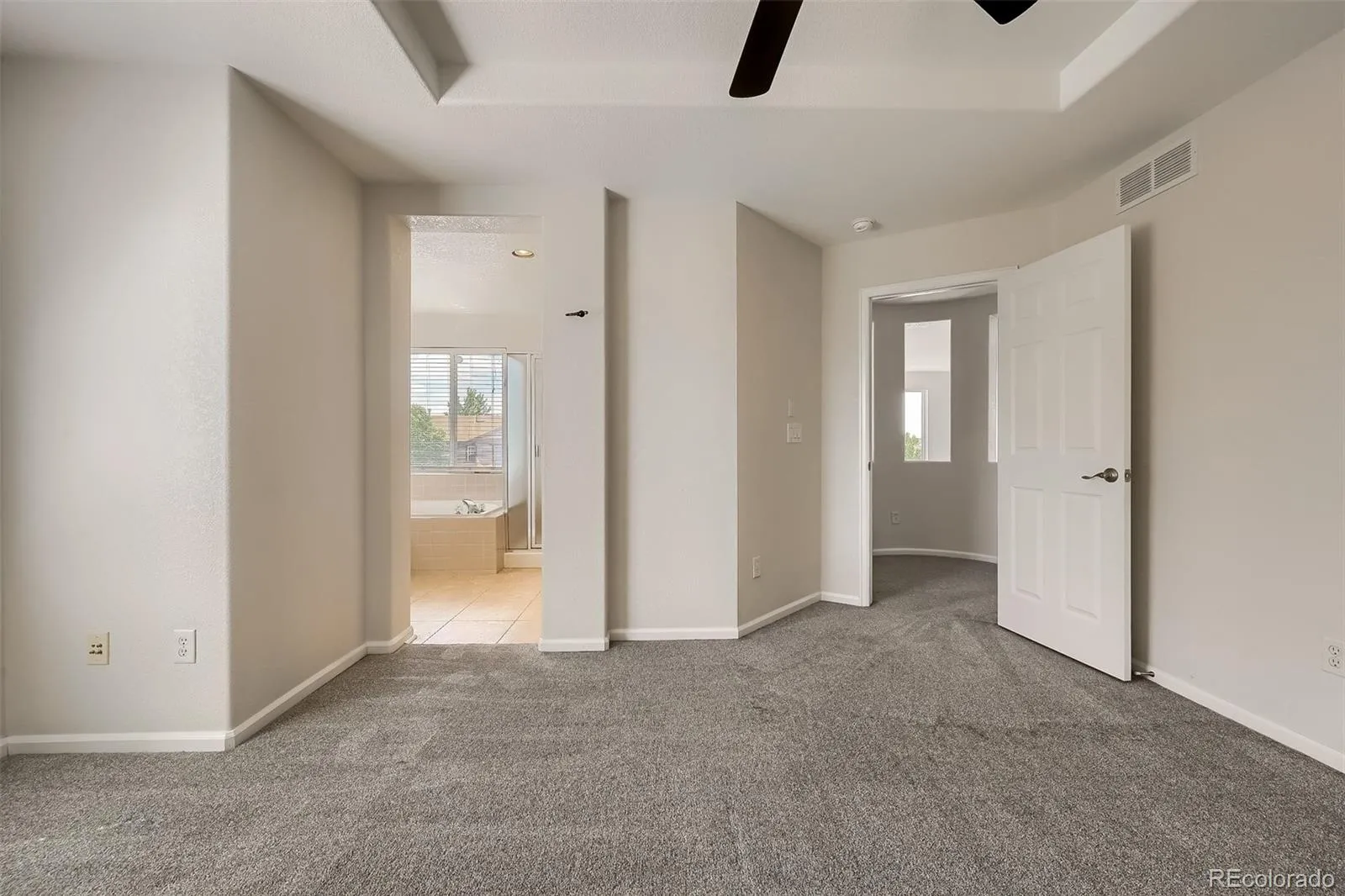 Upstairs, the spacious primary suite features coffered ceilings, a ceiling fan, a walk-in closet, and a 5-piece bath. Two additional bedrooms share a Jack-and-Jill bathroom, and there is also a built-in desk area perfect for work or study. .