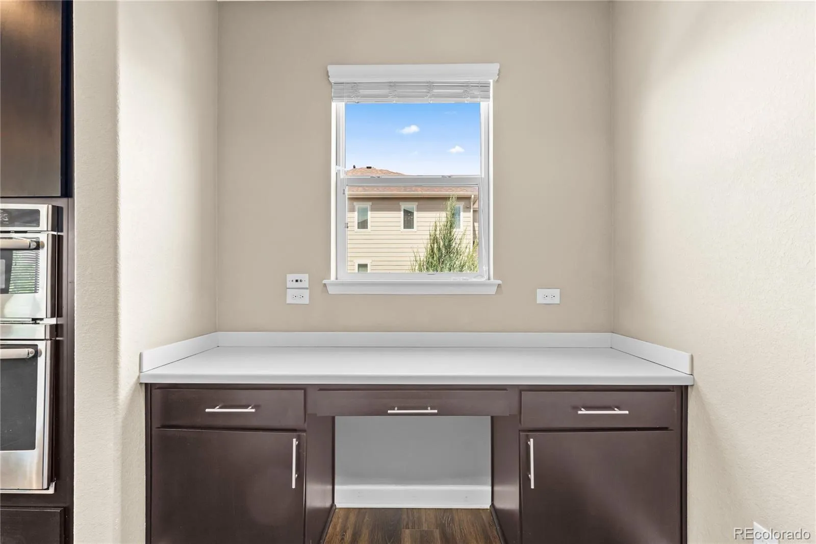 Tucked just off the main area is a planning center/pocket office—perfect for keeping life organized without sacrificing space elsewhere.