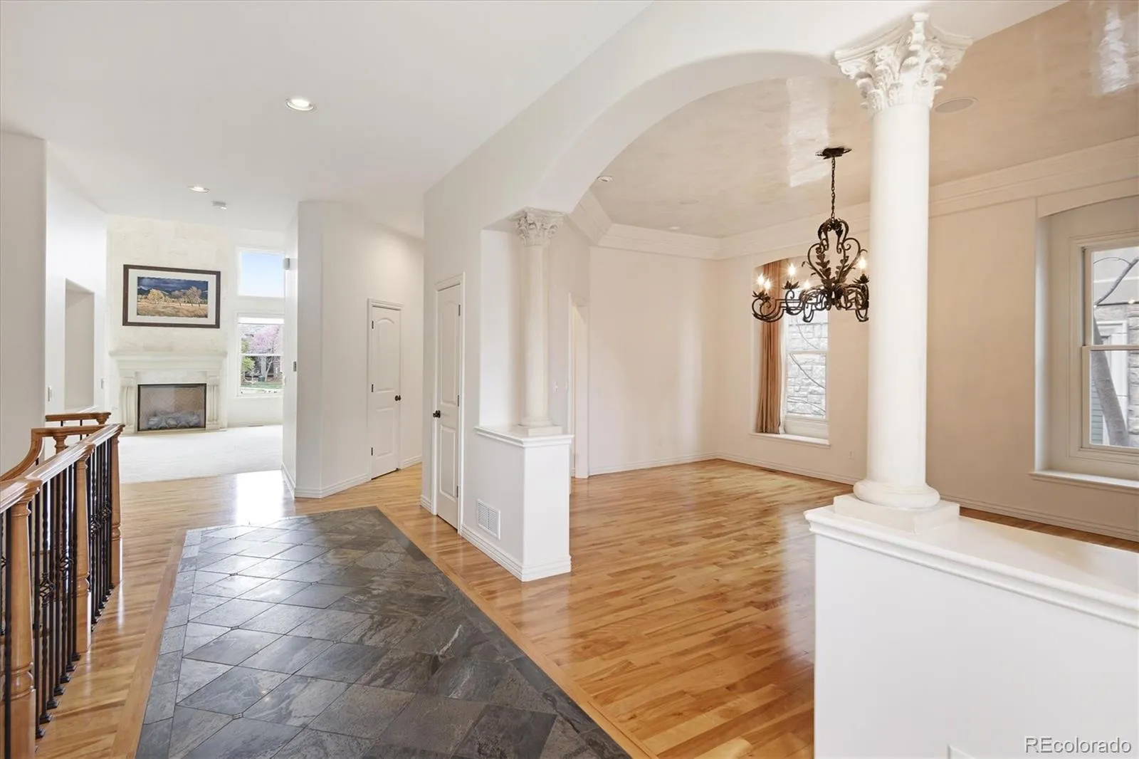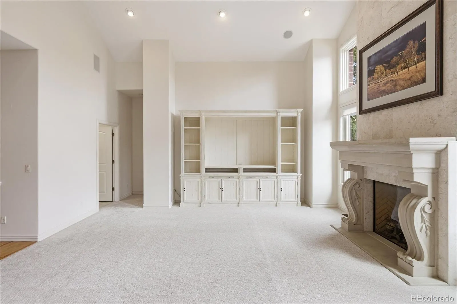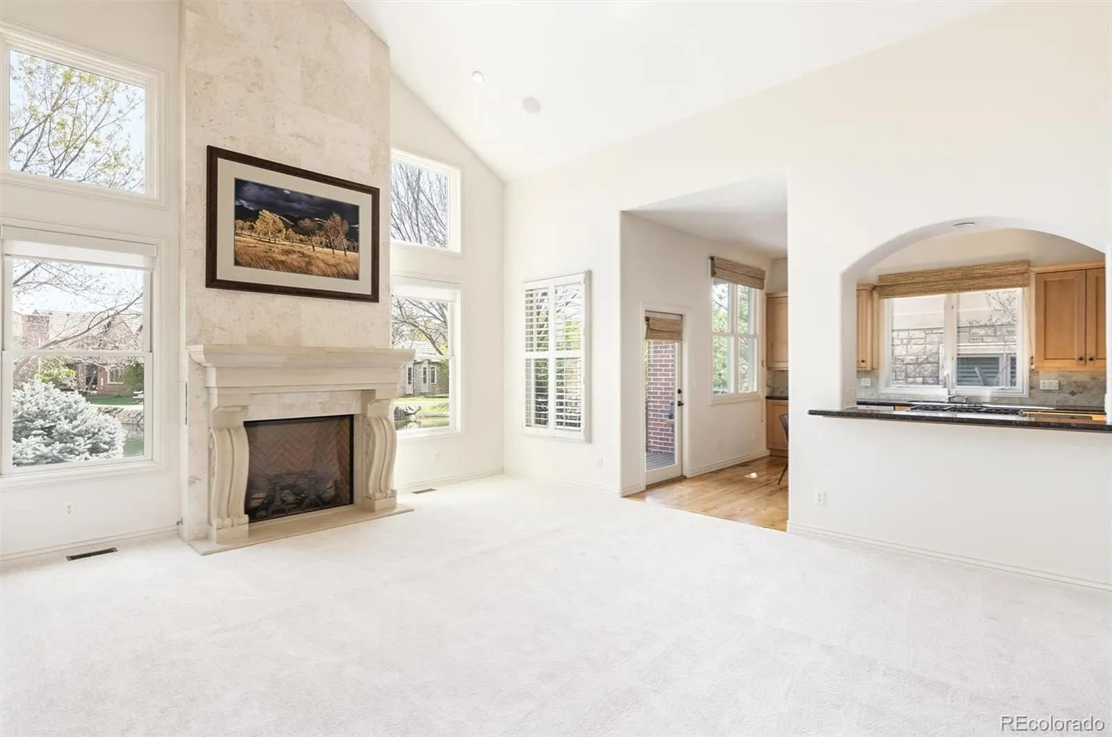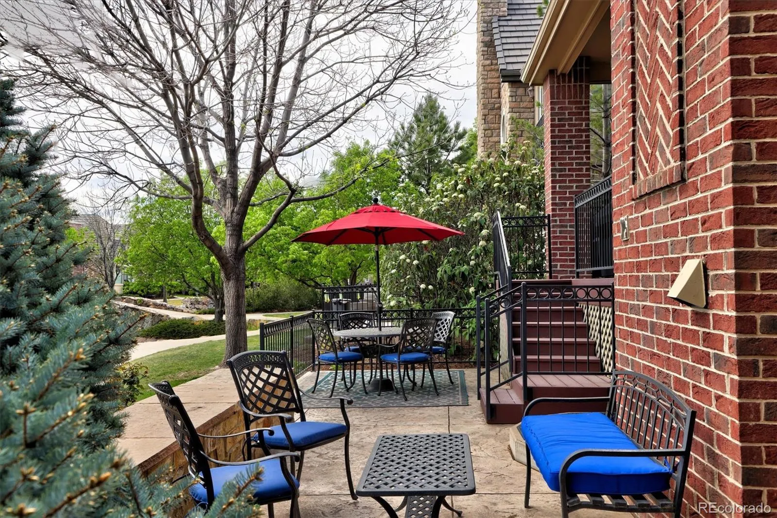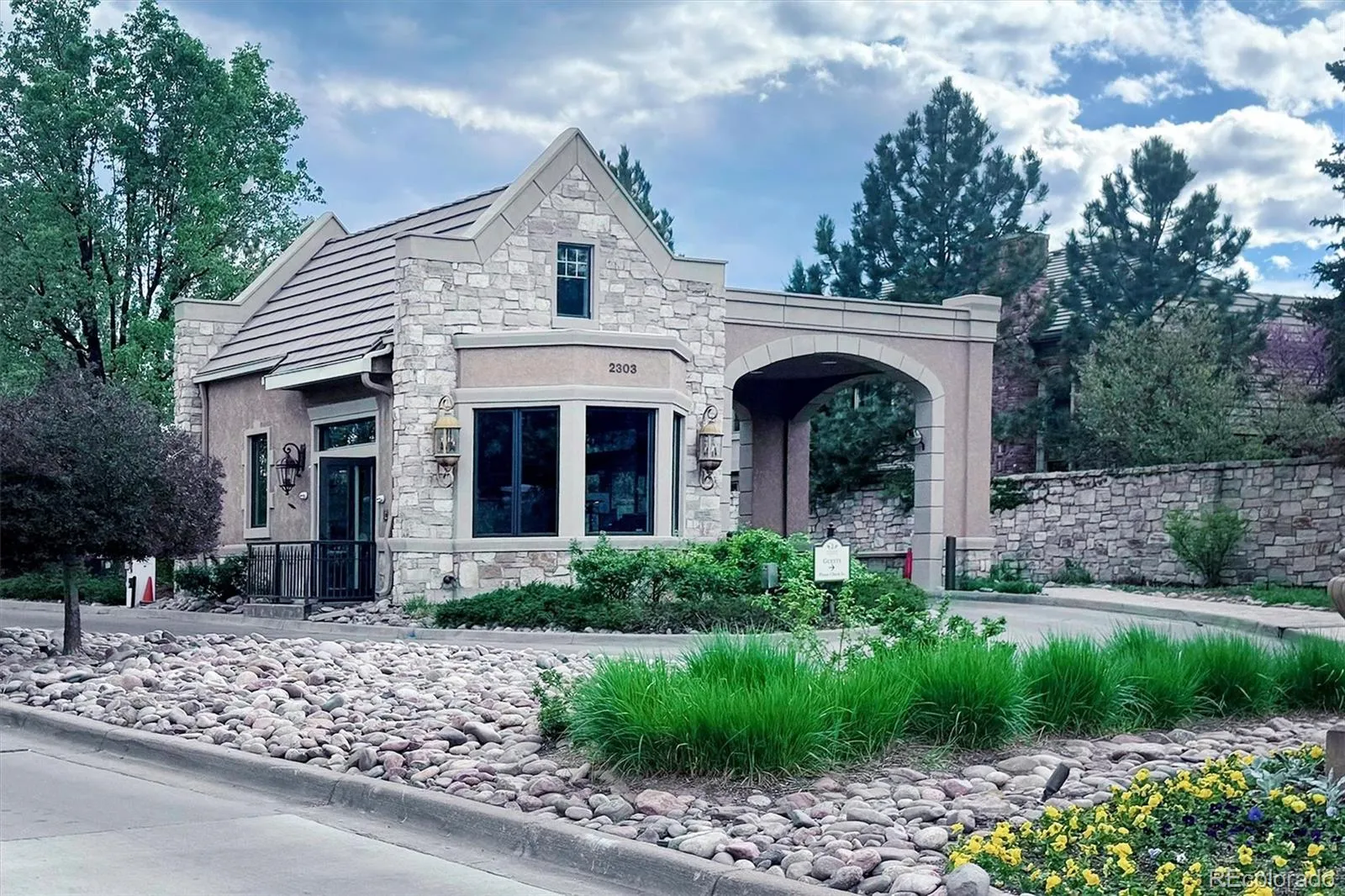 Fabulous ranch-style home backing to a serene, picturesque pond in the exclusive, gated Cherry Creek Country Club community. The heart of the home is a sun-drenched great room with dramatic vaulted ceilings, a statement cast-stone fireplace, and walls of windows that showcase tranquil pond views. The home features a striking stacked-stone accent wall, complemented by fresh interior paint and new carpet throughout the main living level, offering a crisp, move-in ready feel. The highly desirable main-floor primary suite provides a private retreat, combining comfort and sophistication with effortless main-level living. Designed for both everyday living and entertaining, the open kitchen features abundant custom cabinetry, a spacious center island with seating, a Thermador 5-burner gas cooktop, Wolf double ovens, and a Sub-Zero refrigerator. Main floor office/den bathed in natural light, creating a bright and inviting workspace. The beautifully finished lower level expands the living space with a bright family room, two spacious bedrooms with a Jack-and-Jill bath, and abundant storage—ideal for guests or extended living. Enjoy tranquil water views from your private outdoor space, creating a serene retreat just minutes from the heart of Denver. Enjoy life in a gated, resort-style community with the opportunity for membership to private Jack Nicklaus Signature golf course, clubhouse dining, fitness and spa amenities, and tennis courts.
