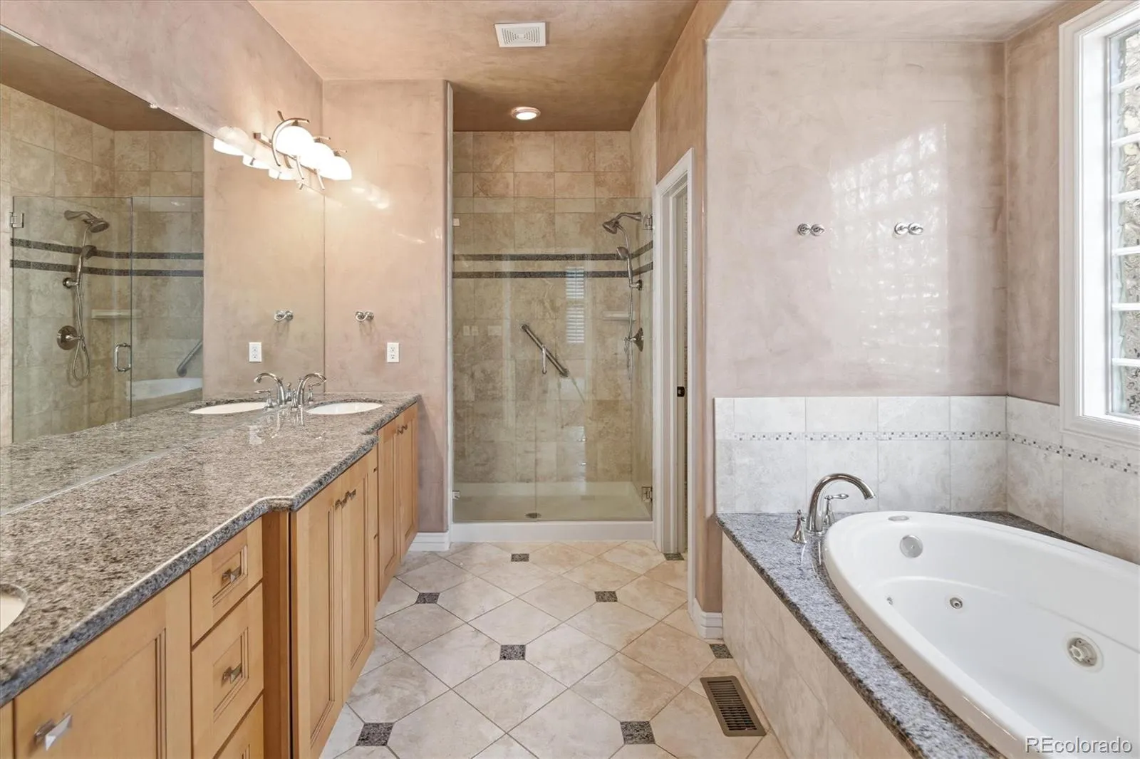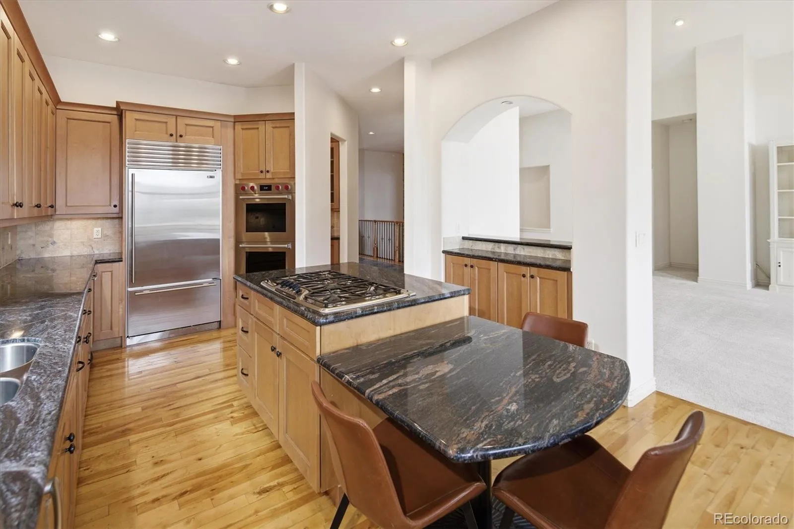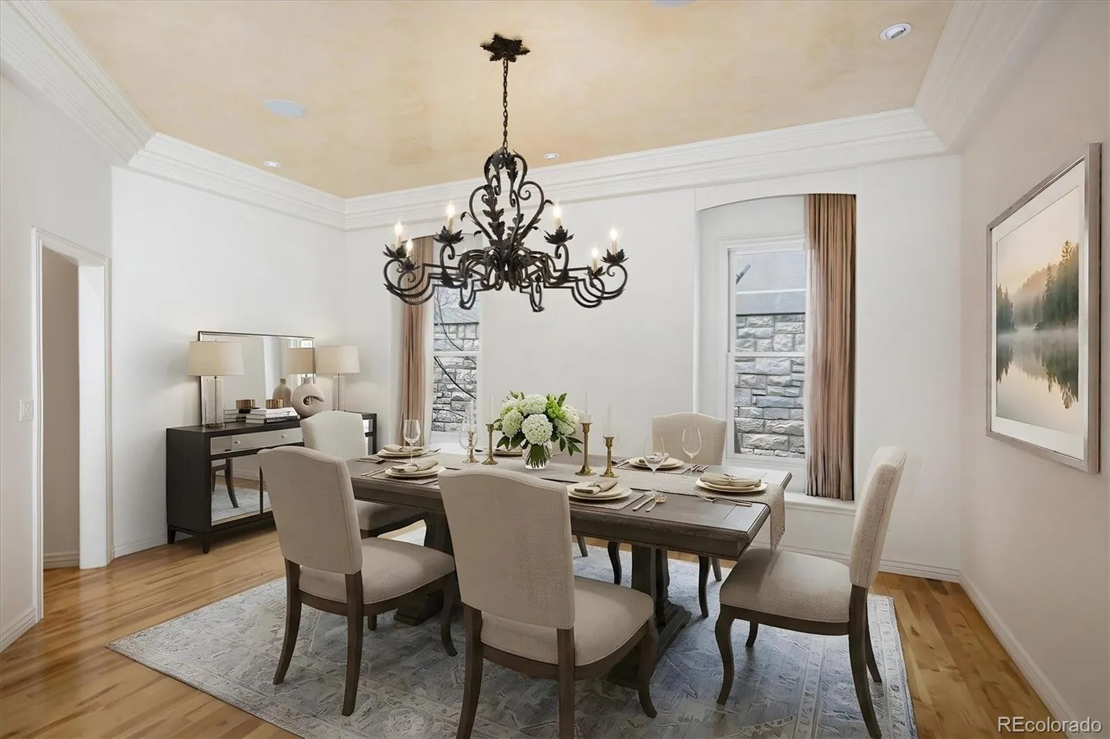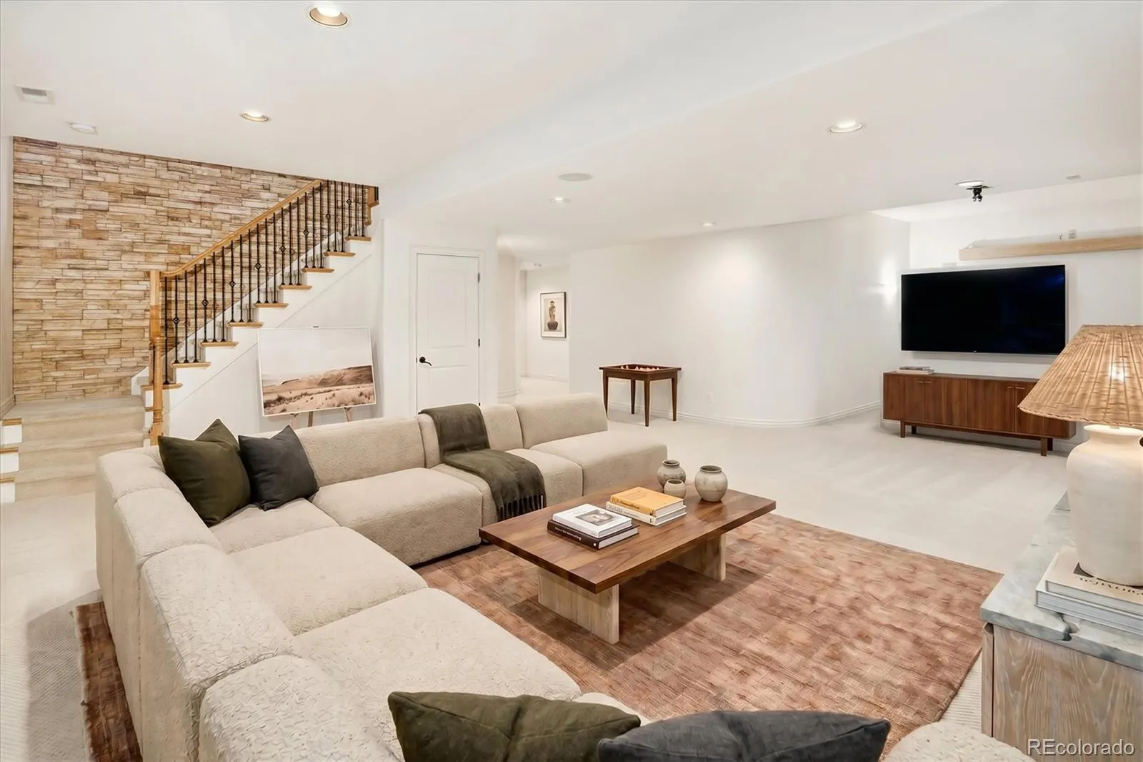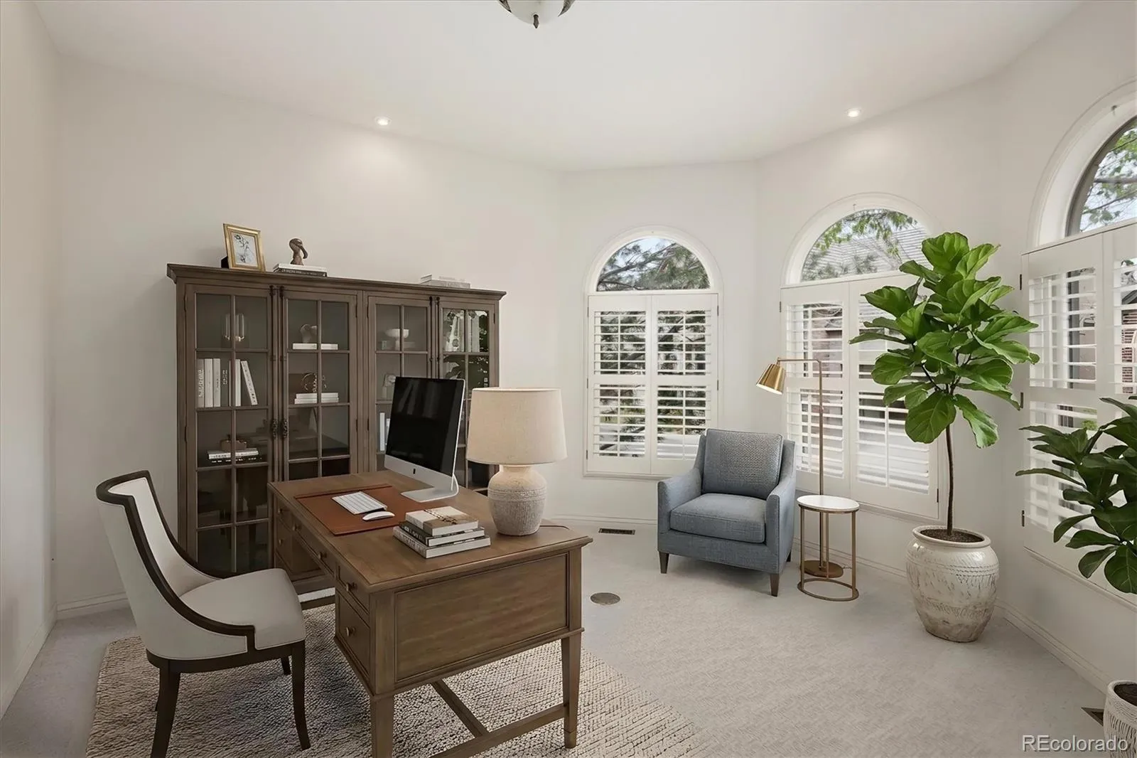 Fabulous ranch-style home backing to a serene, picturesque pond in the exclusive, gated Cherry Creek Country Club community. The heart of the home is a sun-drenched great room with dramatic vaulted ceilings, a statement cast-stone fireplace, and walls of windows that showcase tranquil pond views. The home features a striking stacked-stone accent wall, complemented by fresh interior paint and new carpet throughout the main living level, offering a crisp, move-in ready feel. The highly desirable main-floor primary suite provides a private retreat, combining comfort and sophistication with effortless main-level living. Designed for both everyday living and entertaining, the open kitchen features abundant custom cabinetry, a spacious center island with seating, a Thermador 5-burner gas cooktop, Wolf double ovens, and a Sub-Zero refrigerator. Main floor office/den bathed in natural light, creating a bright and inviting workspace. The beautifully finished lower level expands the living space with a bright family room, two spacious bedrooms with a Jack-and-Jill bath, and abundant storage—ideal for guests or extended living. Enjoy tranquil water views from your private outdoor space, creating a serene retreat just minutes from the heart of Denver. Enjoy life in a gated, resort-style community with the opportunity for membership to private Jack Nicklaus Signature golf course, clubhouse dining, fitness and spa amenities, and tennis courts.
