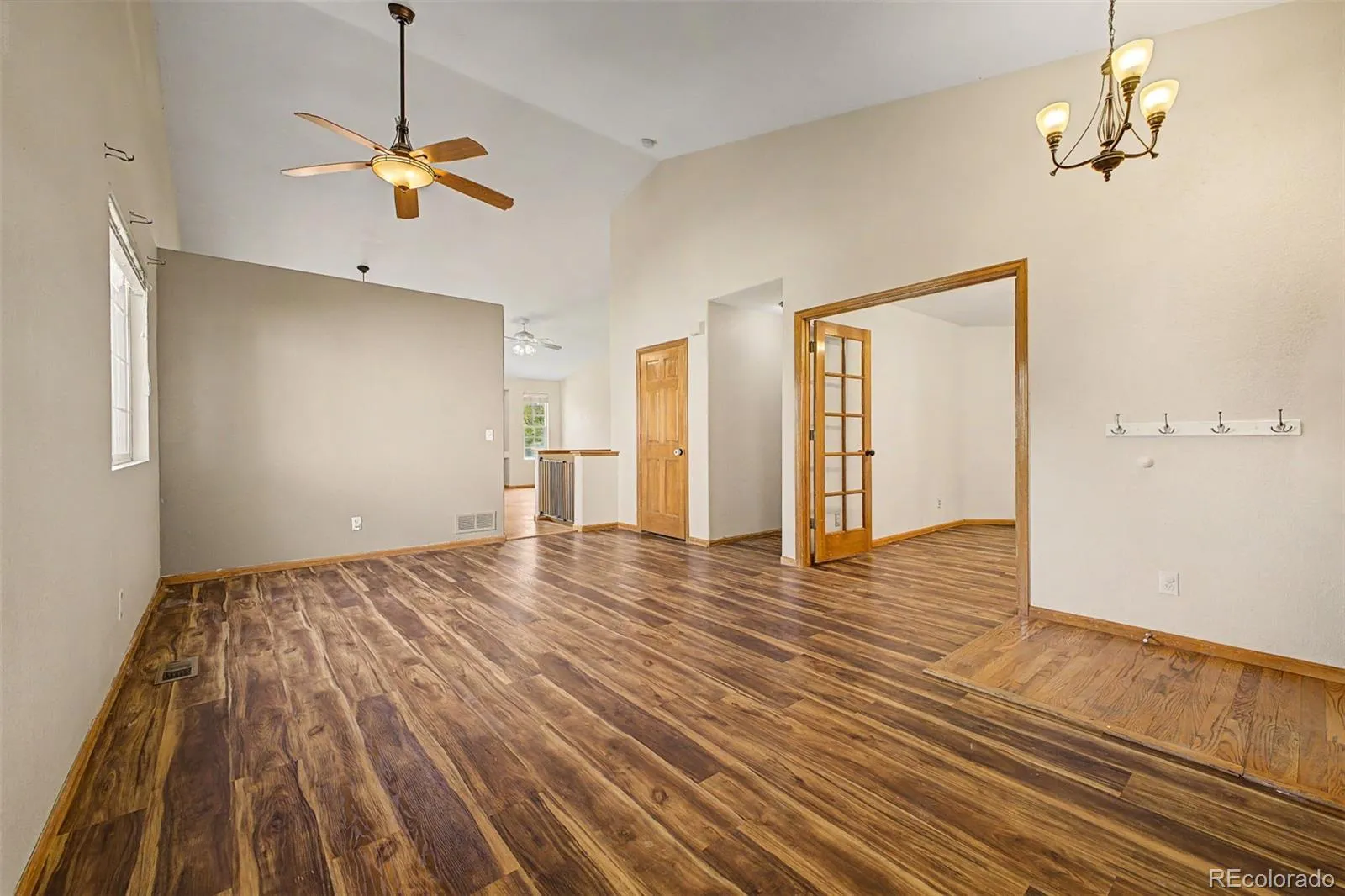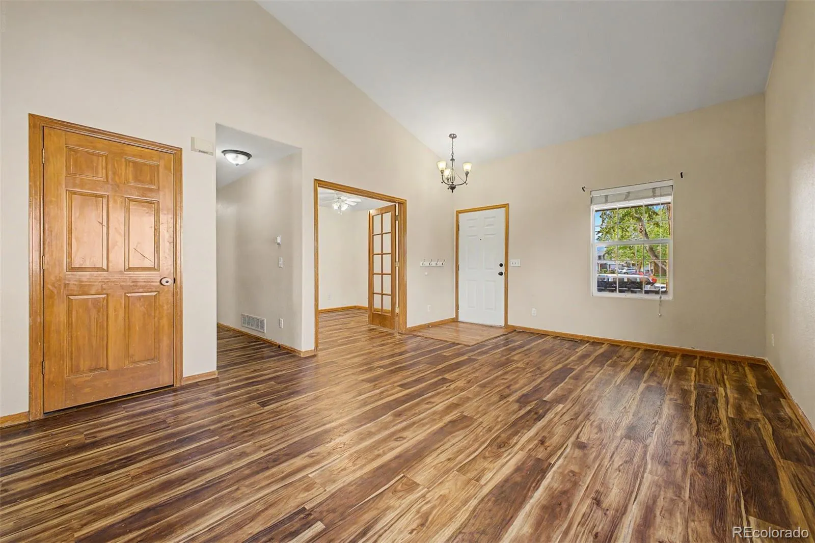 You don’t want to miss this home with a walk-out basement-plus $10,000 in seller concessions! Fall in love with the sweet curb appeal, charming front porch, and 2-car garage. Inside, a welcoming living room greets you! Discover vaulted ceilings and beautiful wood flooring that create an airy, open feel. A versatile den with elegant French doors offers the perfect space for an office or study, while the gas fireplace is ideal for relaxing evenings. The kitchen has a center island, stainless steel appliances, a pantry cabinet, and rich maple cabinetry. Delightful main bedroom boasts a walk-in closet and a private bathroom with dual sinks. Downstairs, the finished walk-out basement expands your living space with a wine/wet bar, a media niche in the living area, two additional bedrooms, and a full bathroom. With its separate entrance and functional layout, the basement offers excellent potential for house hacking or rental income opportunities. Outdoors, enjoy a large backyard designed for relaxation and gatherings, showcasing a deck, a paved seating area, and easy-care landscaping. Ideally located with quick access to I-25 for an easy Denver metro commute, and just minutes from the Thornton Community Center, library, parks, pools, skate park, and nearby shopping and dining.This is the home you’ve longed for! Act now!