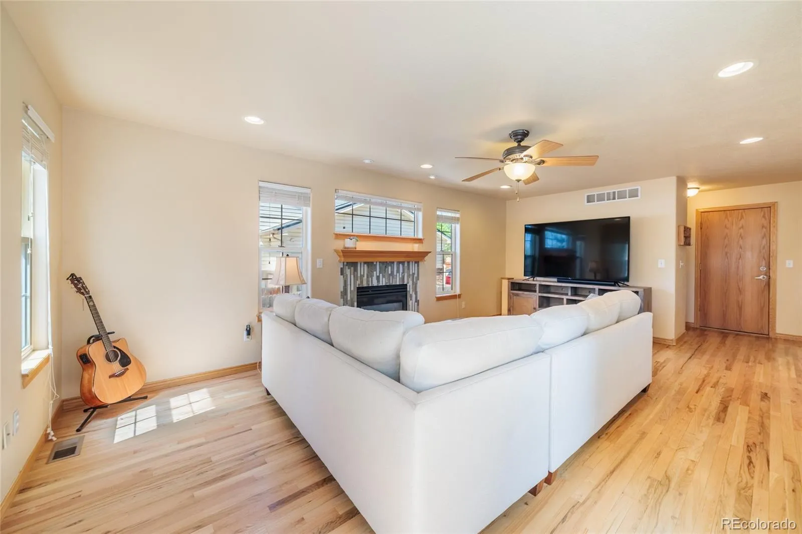 Discover this beautifully updated 4-bedroom, 3-bathroom single-family home offering 3,227 sq ft of modern comfort built in 2000. The spacious layout offers a front sitting room, formal dining- both with vaulted ceilings and windows that flood the space with light. The large updated kitchen has lots of counterspace for prep, stainless steel appliances, quartz countertops, and a view of the backyard. The space flows into a cozy living room with a gas fireplace. Access the back yard and the oversized patio- great for entertaining, or outdoor dining. Relax in your private xeriscaped backyard with raised planting beds backing green space, mature landscaping, and neighborhood trails for daily walks.