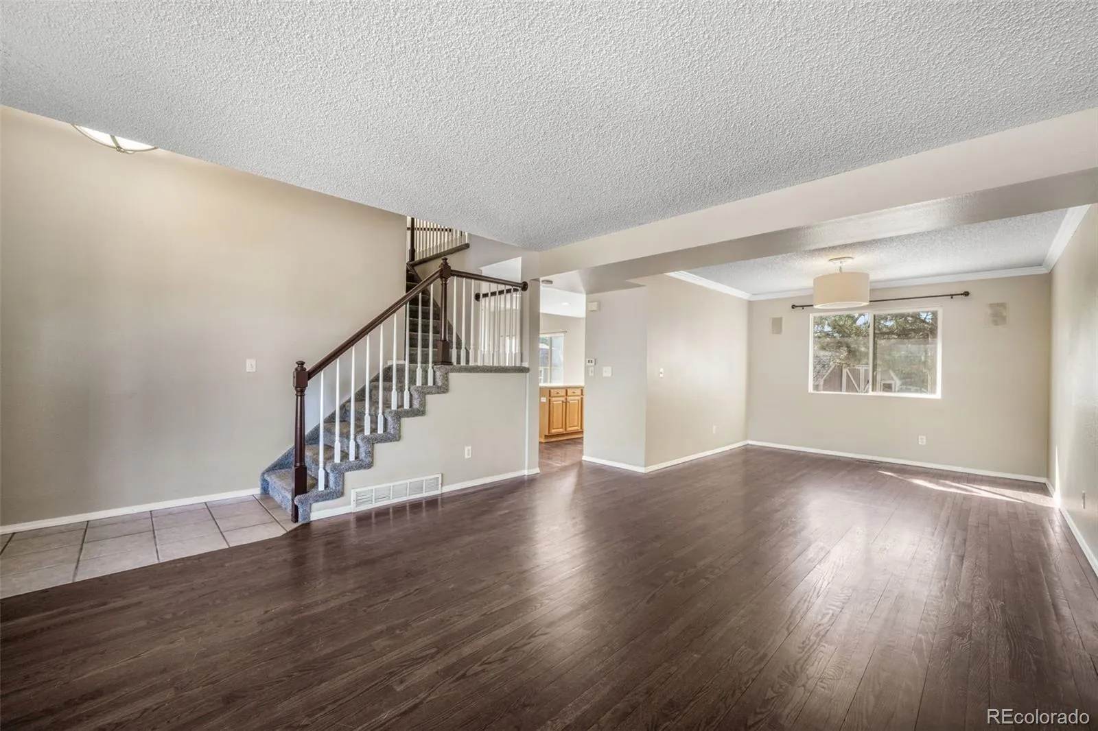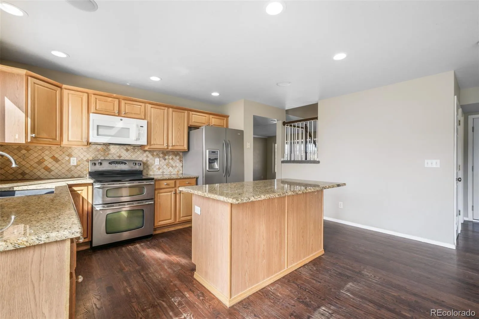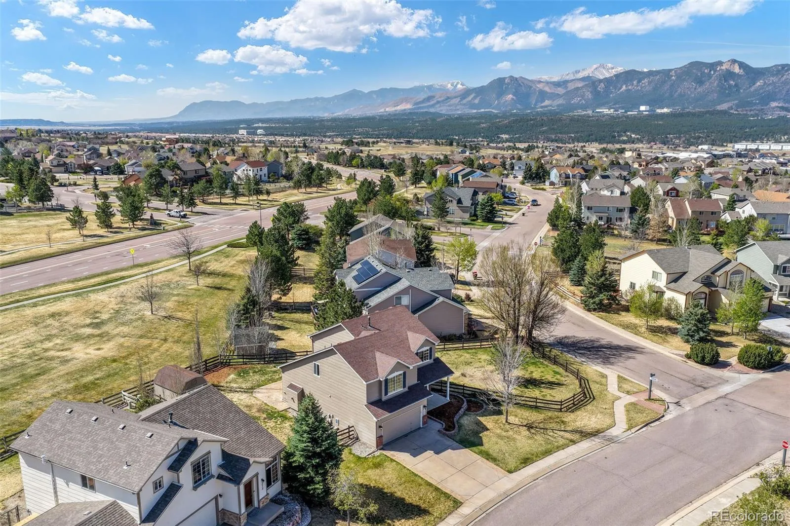 Beautiful two story home nestled in the highly sought after Jackson Creek community within School District 38, perfectly positioned on a spacious and private corner lot with mature landscaping and full irrigation. This inviting property showcases a brand new roof and upcoming exterior paint, offering strong curb appeal and long term peace of mind, along with a charming covered front porch that creates a warm and welcoming first impression. Inside, you are greeted by a light filled formal living room and a dining room accented with crown molding, ideal for both everyday living and special gatherings. The expansive kitchen features a large center island, granite countertops, tasteful backsplash, and seamless access to the backyard, making indoor and outdoor entertaining effortless. The adjoining family room offers a comfortable and inviting retreat with vaulted ceilings, a cozy gas fireplace, ceiling fan, and custom built in shelving and cabinetry that add both function and character. The main level is thoughtfully designed with a convenient laundry room and powder bath. Upstairs, the spacious primary suite provides a relaxing escape with vaulted ceilings, a ceiling fan, an oversized walk in closet, and a beautifully appointed five piece bath complete with tile finishes and granite countertops. Three additional bedrooms each include ceiling fans and share a well appointed full bathroom with granite countertops. The finished basement expands the living space with a versatile second family room or game room featuring durable vinyl flooring, a full bathroom with tile flooring and a tiled shower and tub surround, granite countertops, and abundant storage options throughout the basement. The outdoor living space is equally impressive with a fully landscaped and fenced backyard, a stamped concrete patio perfect for entertaining or quiet evenings, and a large storage shed for added convenience, all set on an expansive corner lot that enhances both privacy and usability.