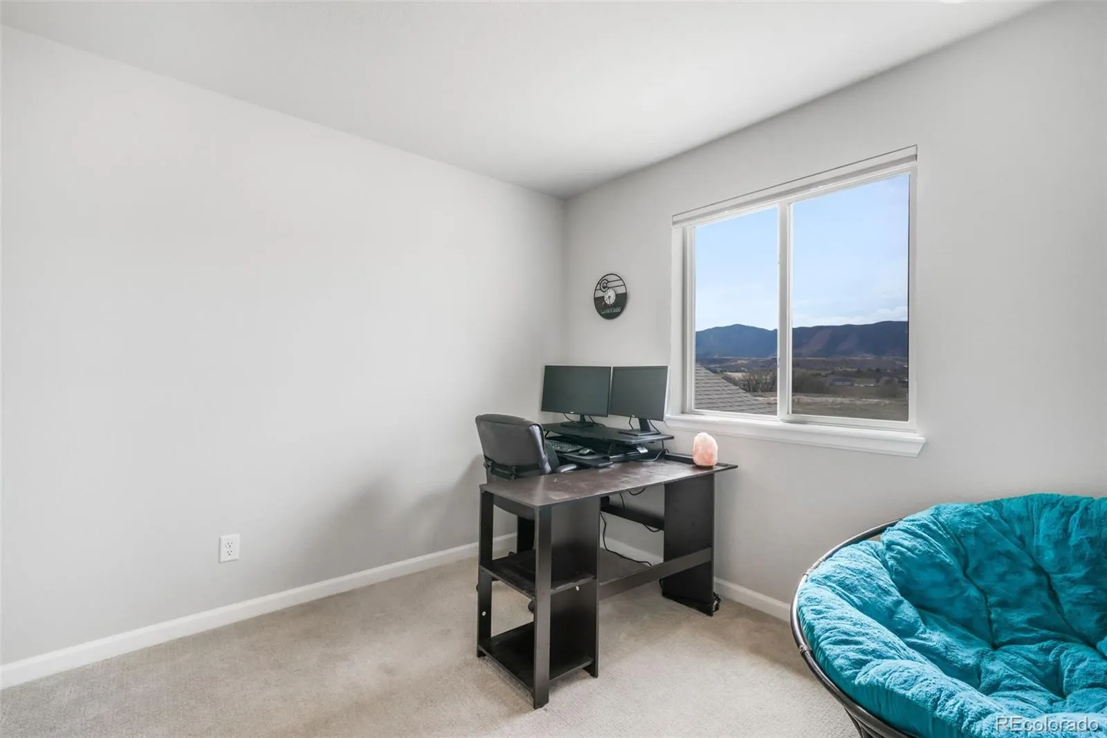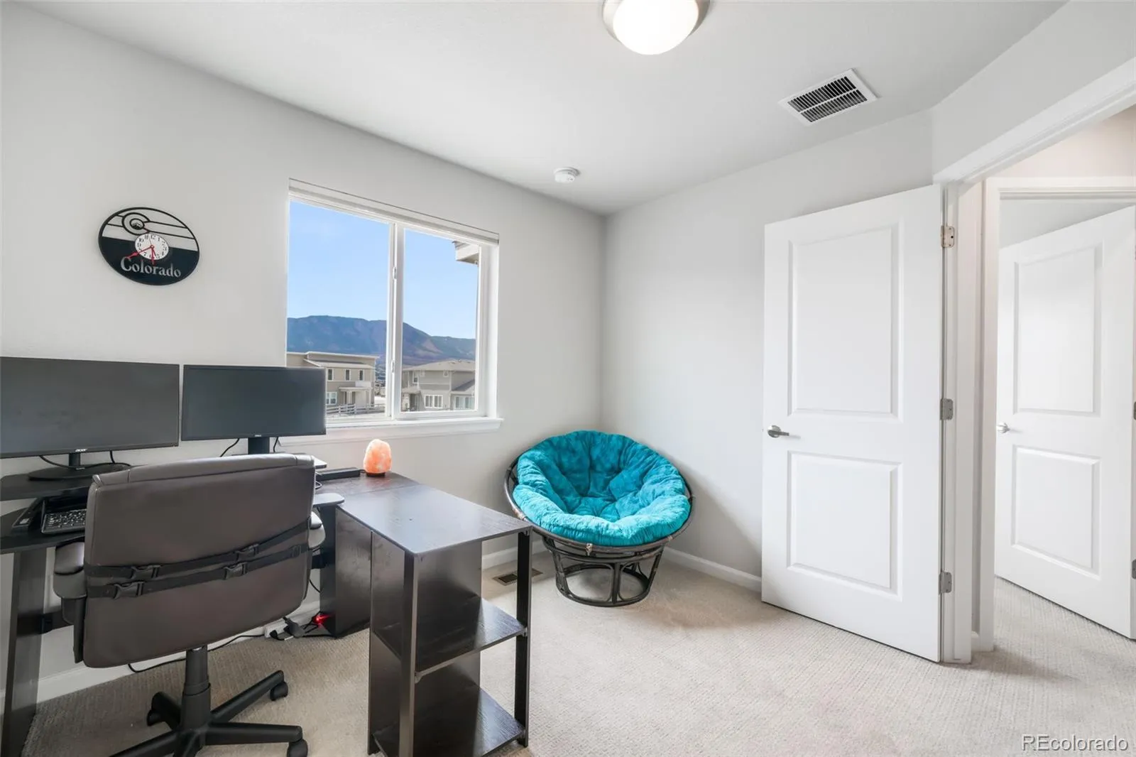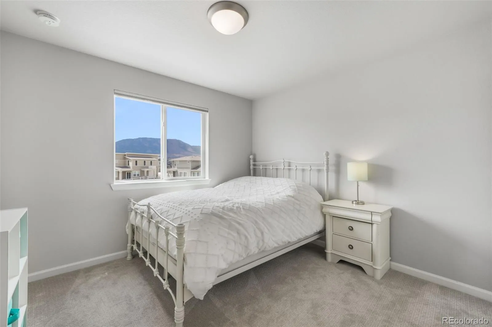 Welcome to easy Monument living in the beautiful and well maintained Wagons West community, located in desirable Lewis Palmer District 38. This two story townhome offers a rare setting within the neighborhood, backing to open community green space with mountain views and positioned on the furthest row of townhomes from Old Denver Highway. The open concept main level features LVP flooring throughout, abundant natural light, and a comfortable layout designed for everyday living. The kitchen includes stainless steel appliances (refrigerator included), island, pantry, and direct access to the dining area and living room. A powder bath and huge under stairs storage closet add convenience and functionality. Upstairs, freshly cleaned carpet leads to a spacious primary suite with a walk in closet, dual sink vanity, step in shower, and private water closet. Two additional bedrooms provide great flexibility, including one with its own walk in closet, along with a full hallway bath, laundry room, and excellent storage. Enjoy our beautiful Colorado weather from the private patio with covered porch. The attached two car garage is fully drywalled, and the HOA includes exterior maintenance for a low maintenance, lock and go lifestyle. Additional features include forced air, air conditioning, and a tankless water heater. With quick access to I25, USAFA, grocery stores, and the shops, dining, and conveniences along Jackson Creek Parkway, this home pairs peaceful surroundings with everyday convenience.