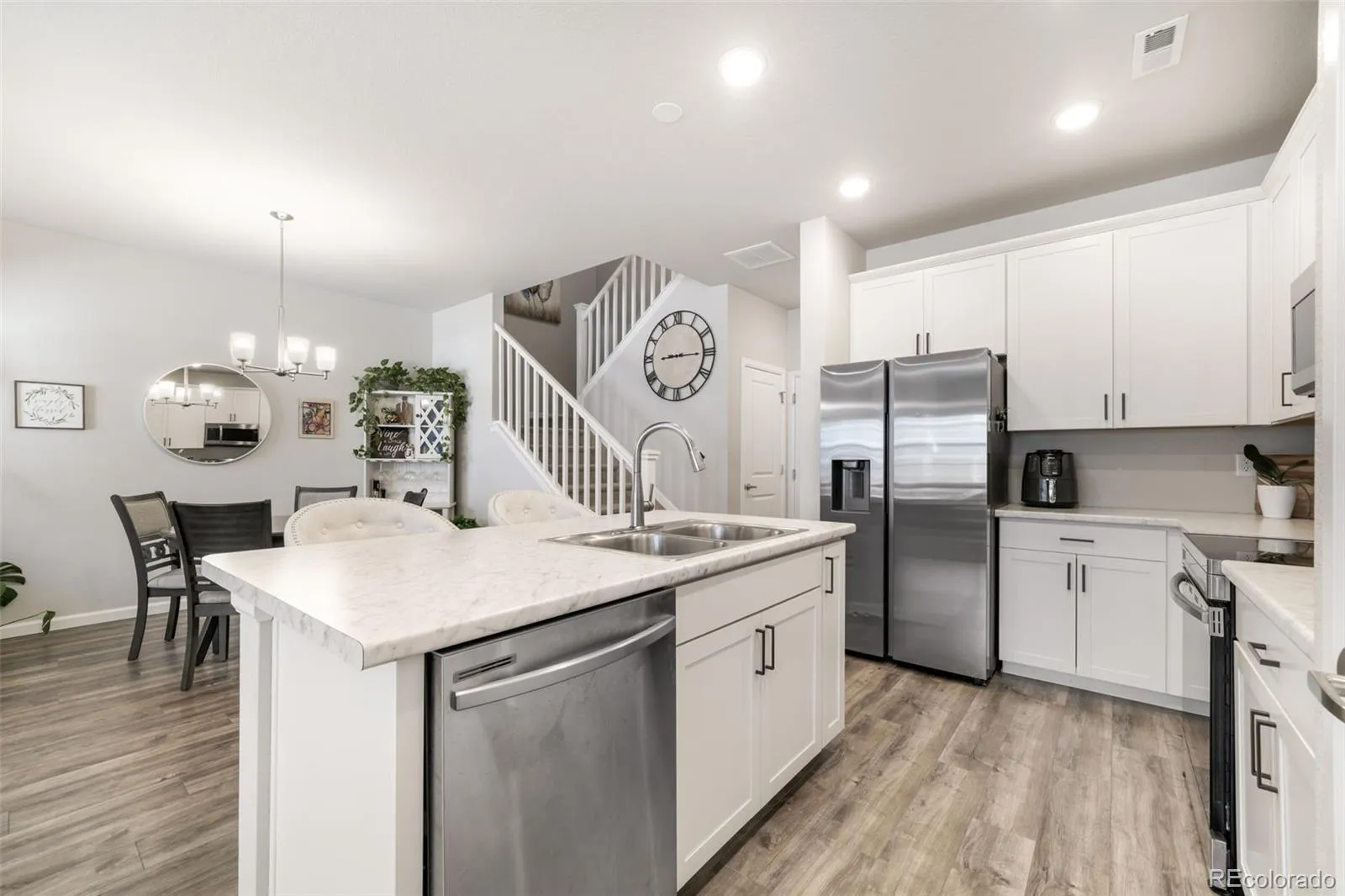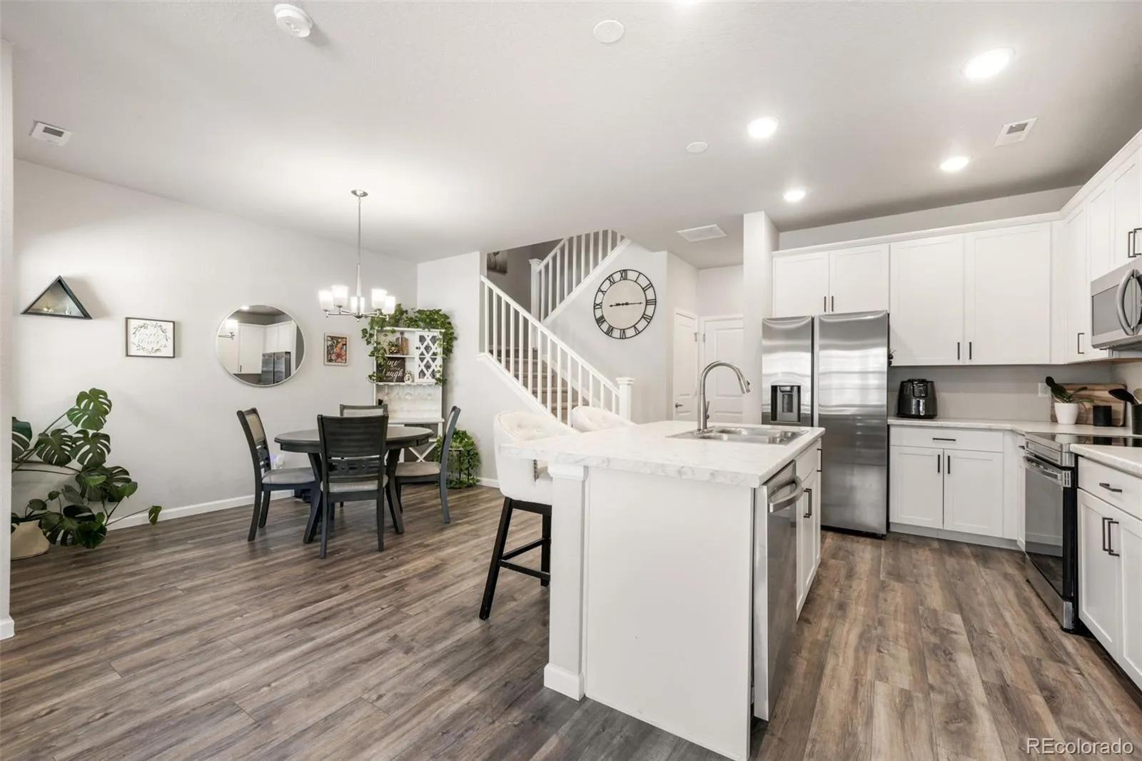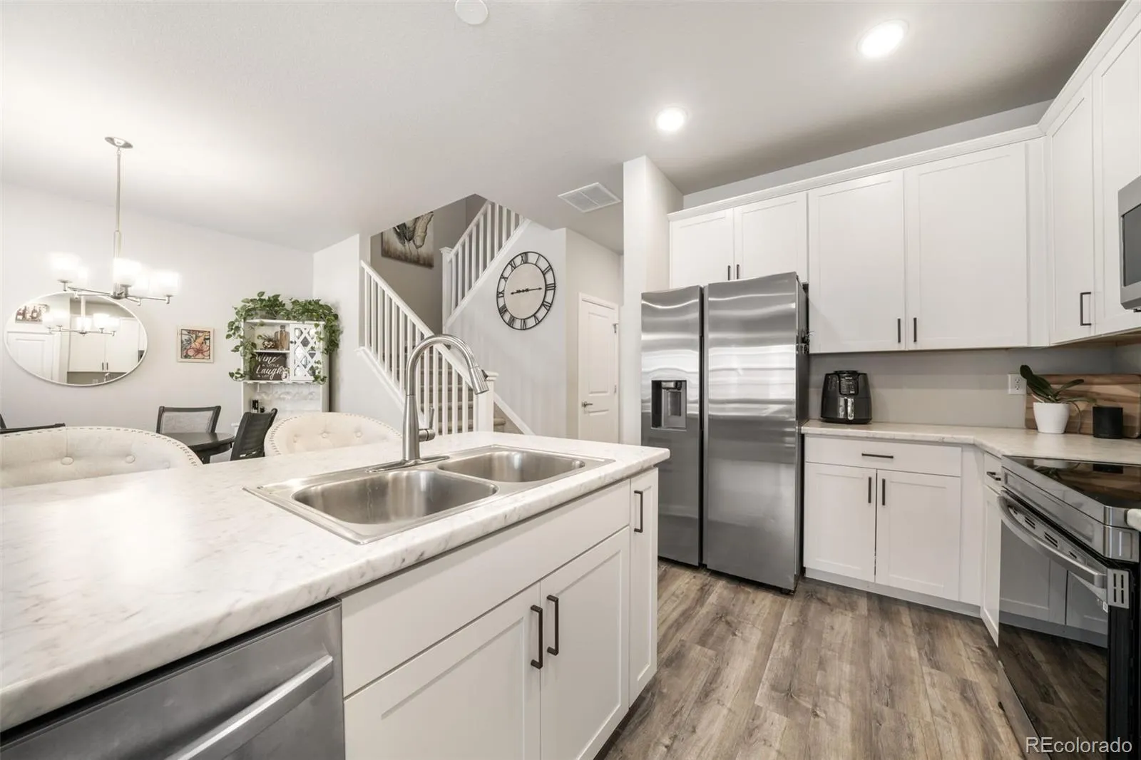 Welcome to easy Monument living in the beautiful and well maintained Wagons West community, located in desirable Lewis Palmer District 38. This two story townhome offers a rare setting within the neighborhood, backing to open community green space with mountain views and positioned on the furthest row of townhomes from Old Denver Highway. The open concept main level features LVP flooring throughout, abundant natural light, and a comfortable layout designed for everyday living. The kitchen includes stainless steel appliances (refrigerator included), island, pantry, and direct access to the dining area and living room. A powder bath and huge under stairs storage closet add convenience and functionality. Upstairs, freshly cleaned carpet leads to a spacious primary suite with a walk in closet, dual sink vanity, step in shower, and private water closet. Two additional bedrooms provide great flexibility, including one with its own walk in closet, along with a full hallway bath, laundry room, and excellent storage. Enjoy our beautiful Colorado weather from the private patio with covered porch. The attached two car garage is fully drywalled, and the HOA includes exterior maintenance for a low maintenance, lock and go lifestyle. Additional features include forced air, air conditioning, and a tankless water heater. With quick access to I25, USAFA, grocery stores, and the shops, dining, and conveniences along Jackson Creek Parkway, this home pairs peaceful surroundings with everyday convenience.