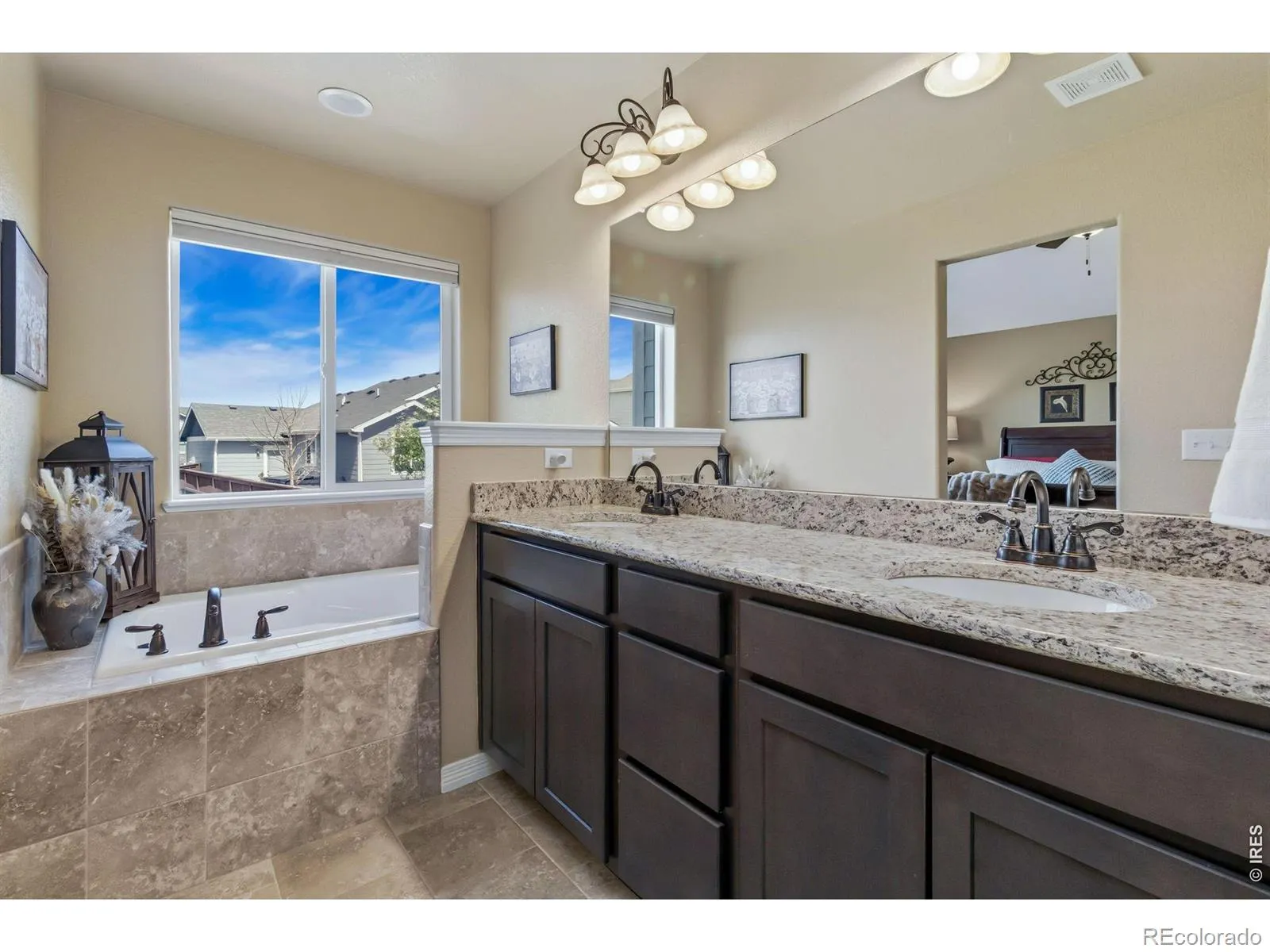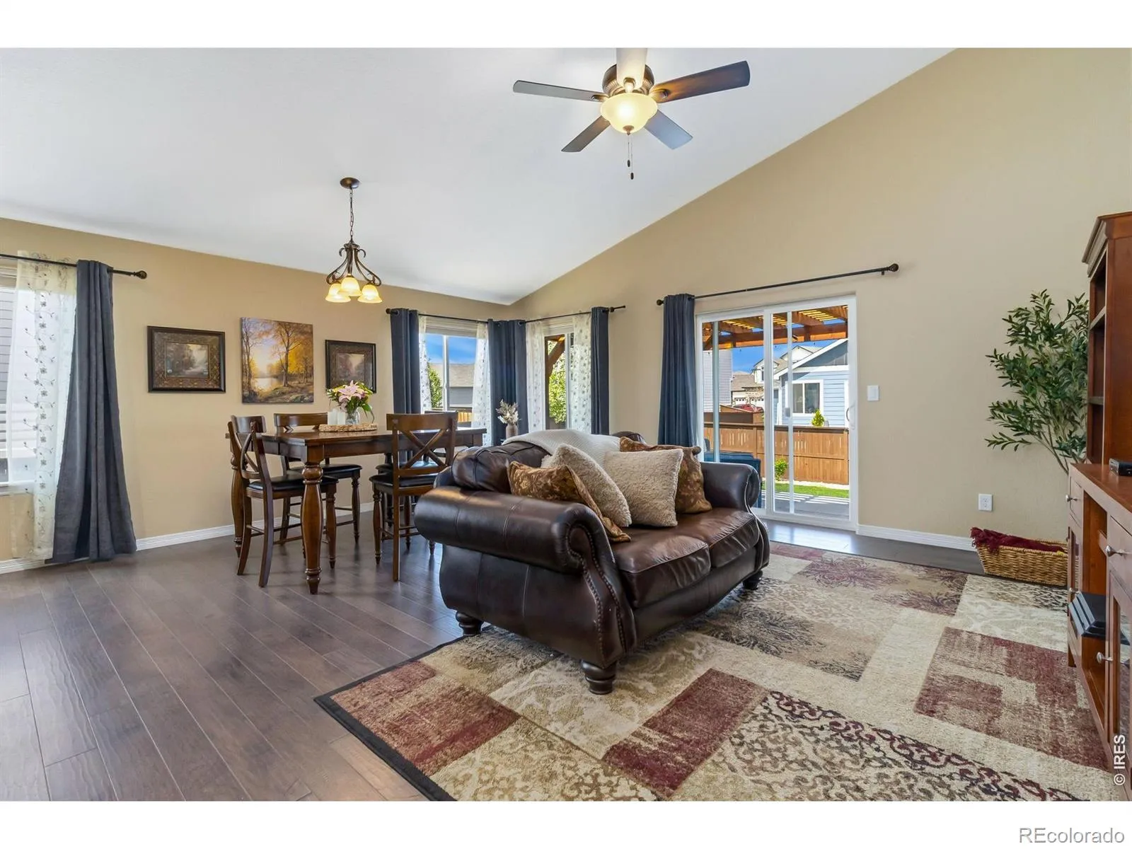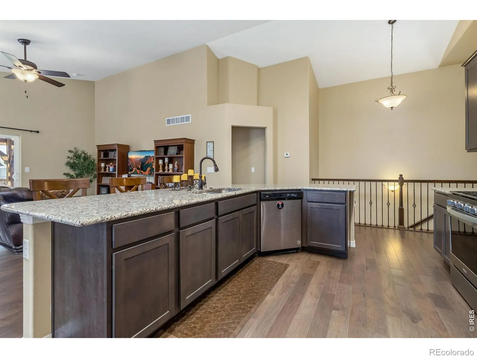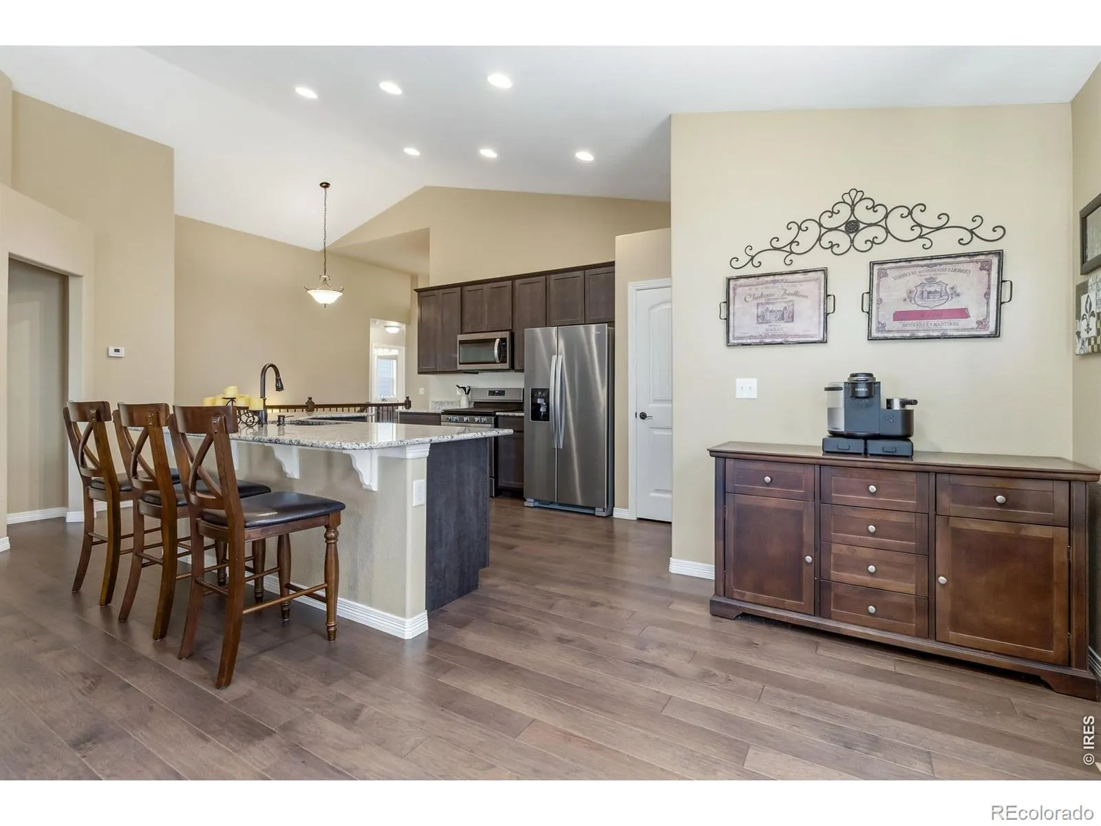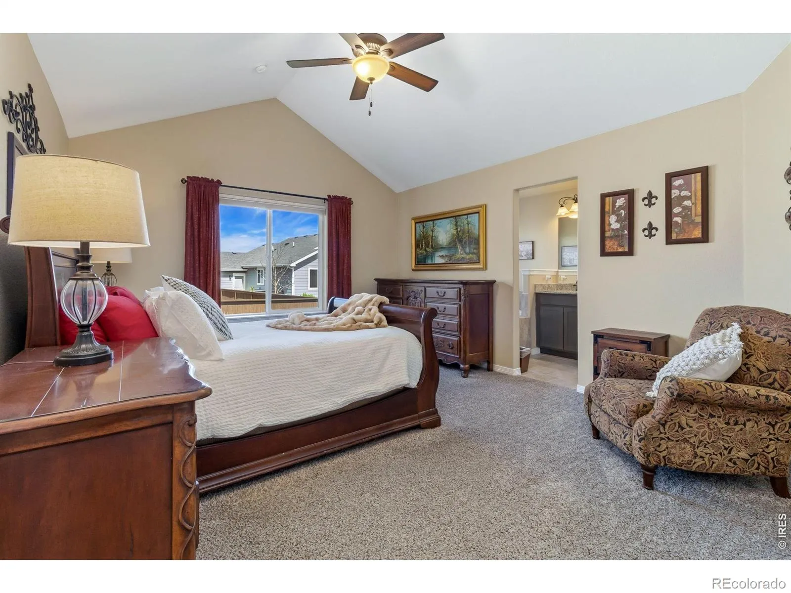 Better than new and thoughtfully upgraded, this ranch-style home offers 5 bedrooms, 3 full baths, and a 3-car garage in a prime Loveland location- Just steps from a new dog park and neighborhood backs to open land. Home Warranty Included for peace of mind! The beautifully landscaped, fully fenced backyard is a standout with blooming lilacs, an extended patio, and a stunning pergola-perfect for relaxing or entertaining while taking in peaceful mountain views. Inside, the open, vaulted main level features a spacious great room, a gourmet kitchen with a large island and granite countertops, xl gas range, and a private primary suite with a spa-like ensuite-deep soaking tub, separate shower, double vanity, and a generous walk-in closet. With 3 bedrooms on the main level and a finished basement boasting a massive 38.5′ x 20.5′ rec room, 2 additional bedrooms, and a full bath, there’s room for everyone to spread out and enjoy. Condition truly sets this home apart-move-in ready with completed landscaping, window coverings, and numerous upgrades. The south-facing driveway helps with winter snow melt, while inside you’ll find upgraded fixtures, ceiling fans, enhanced door hardware, and custom pantry shelving. The primary bath has been elevated with a new frameless shower enclosure. The home offers exceptional storage including overhead garage racks and a mechanical room with extra space and a craft/workbench area.Ideally located with easy access to Fort Collins and Loveland, this home is close to Front Range Community College and Medical Center of the Rockies. Outdoor enthusiasts will love nearby trails including Long View Trail, Sunset Vista Nature Trail, and the scenic paths of Prairie Ridge Natural Area.