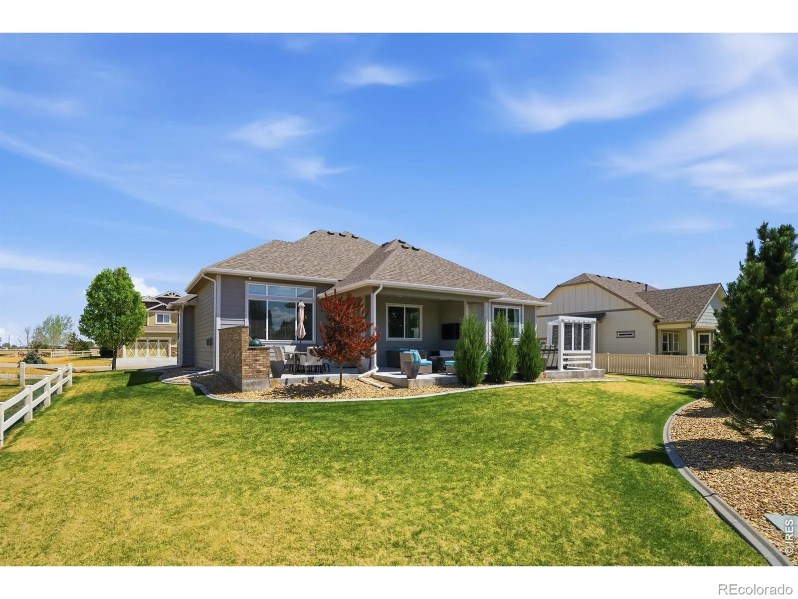 Looking for space, style, & a home that actually checks all the boxes? This one delivers. Beautifully built 3 bedroom 2 bathroom home in Eaton featuring tall ceilings, large bedrooms, & walk in closets in every room. Bright natural light pours in through oversized windows, highlighting the open concept layout with a spacious living room complete with a gas fireplace. The kitchen is designed for both everyday living & entertaining with granite countertops, a large island, tall pantry, modern appliances, & gas range, all included. Built in 2016 with thoughtful architectural details & upgraded light fixtures throughout. Step outside to enjoy a fully equipped outdoor kitchen with gas built ins, full pergola, new landscaping, & a patio finished with granite touches. Situated on a large lot. Additional updates include a brand new Class 4 impact resistant roof in 2025, new gutters, & durable Owens Corning materials. Oversized 3 car garage with finished areas offers plenty of space for storage or hobbies. Saltwater hot tub is included. Located in a desirable small town setting, this home offers the perfect blend of comfort, quality, & lifestyle.