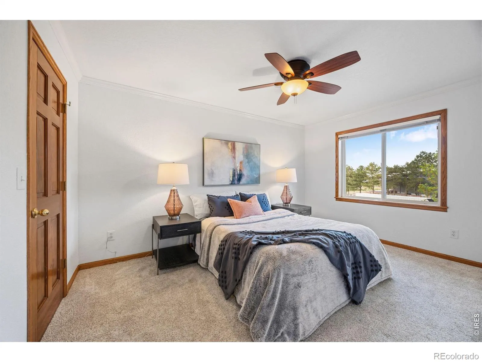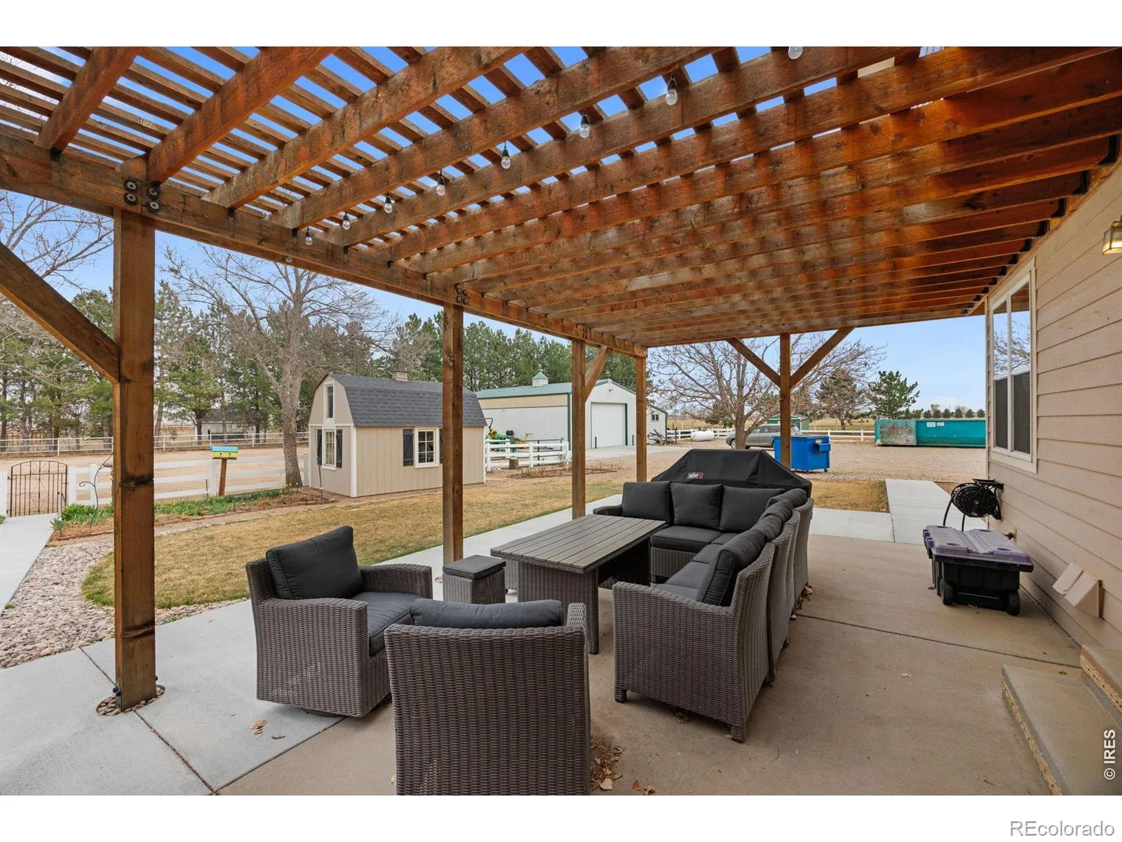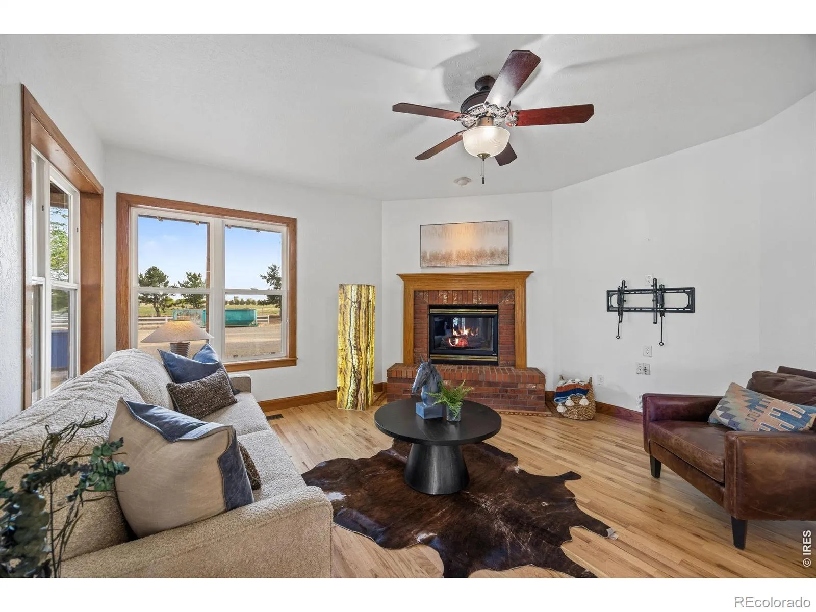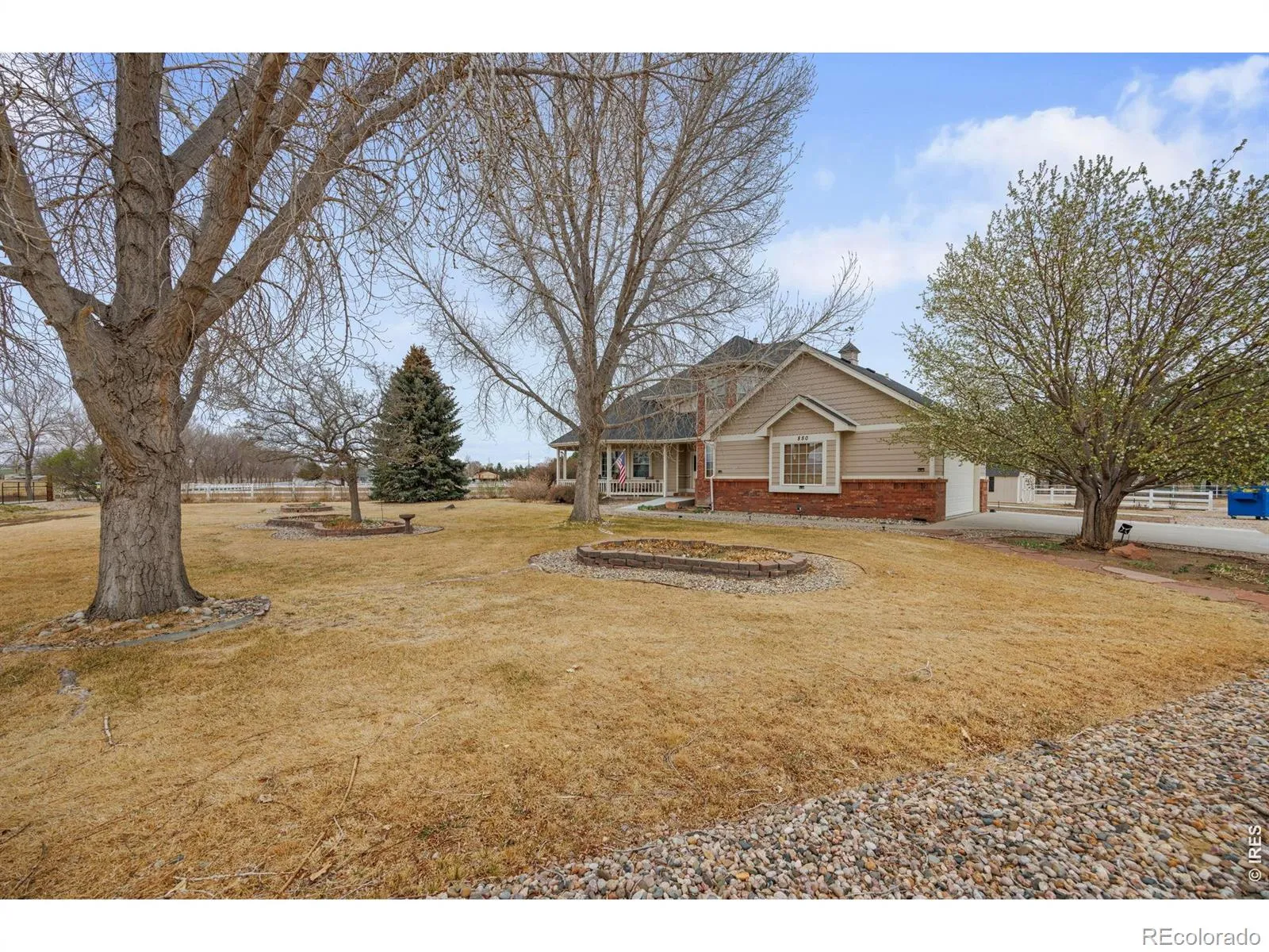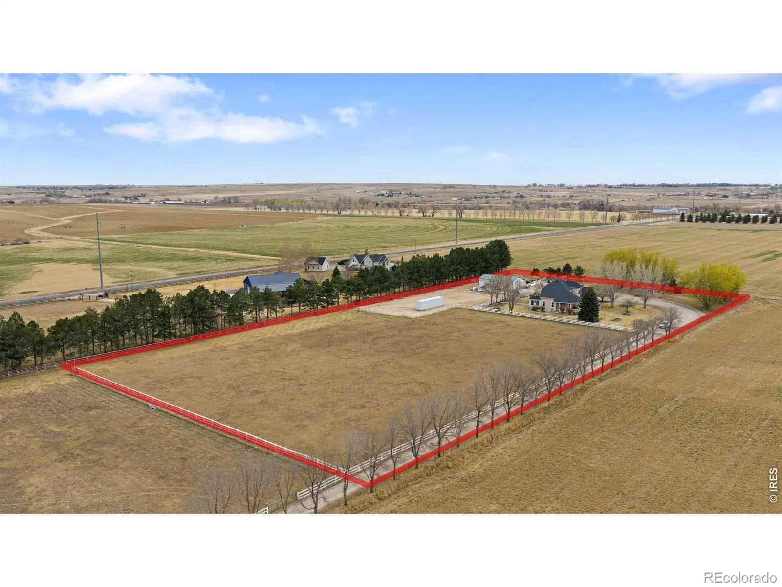 Spectacular estate set on nearly 5 acres, showcasing breathtaking, unobstructed views of Longs Peak and the Front Range. Privately tucked away in a serene setting, yet just minutes from downtown Berthoud and I-25, this property offers an exceptional blend of seclusion and convenience.Inside, refined finishes and thoughtful upgrades throughtout, featuring rich wood flooring and a beautifully renovated kitchen with custom cabinetry, granite countertops, double ovens, an induction cooktop, and soft-close cabinetry. The upper level offers two spacious bedrooms, upstairs laundry/craft room (or 3rd bedroom), including a stunning primary retreat with a fully updated, spa-inspired bathroom.The fully finished basement is designed for both relaxation and entertaining, complete with an expansive game room, wet bar, media room, and a private guest suite. Outdoors, the property continues to impress with 68 ft wide x 46 ft. deep detached shop 10’8″ tall x 14’6″ wide overhead door ideal for storage, barn or a dedicated workspace. The fully fenced grounds are perfectly suited for equestrian living, featuring a working horse arena and a 2-acre grazing pasture, all set against a truly picturesque Colorado backdrop.Sale includes 1 share McIntrye Lateral Ditch-irrigation water rights.