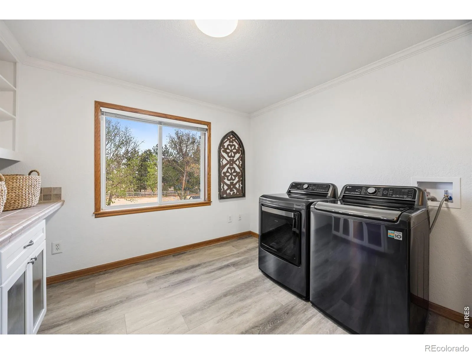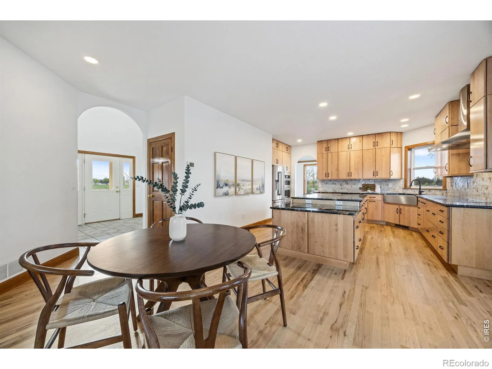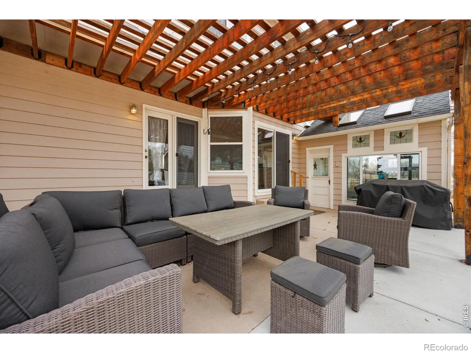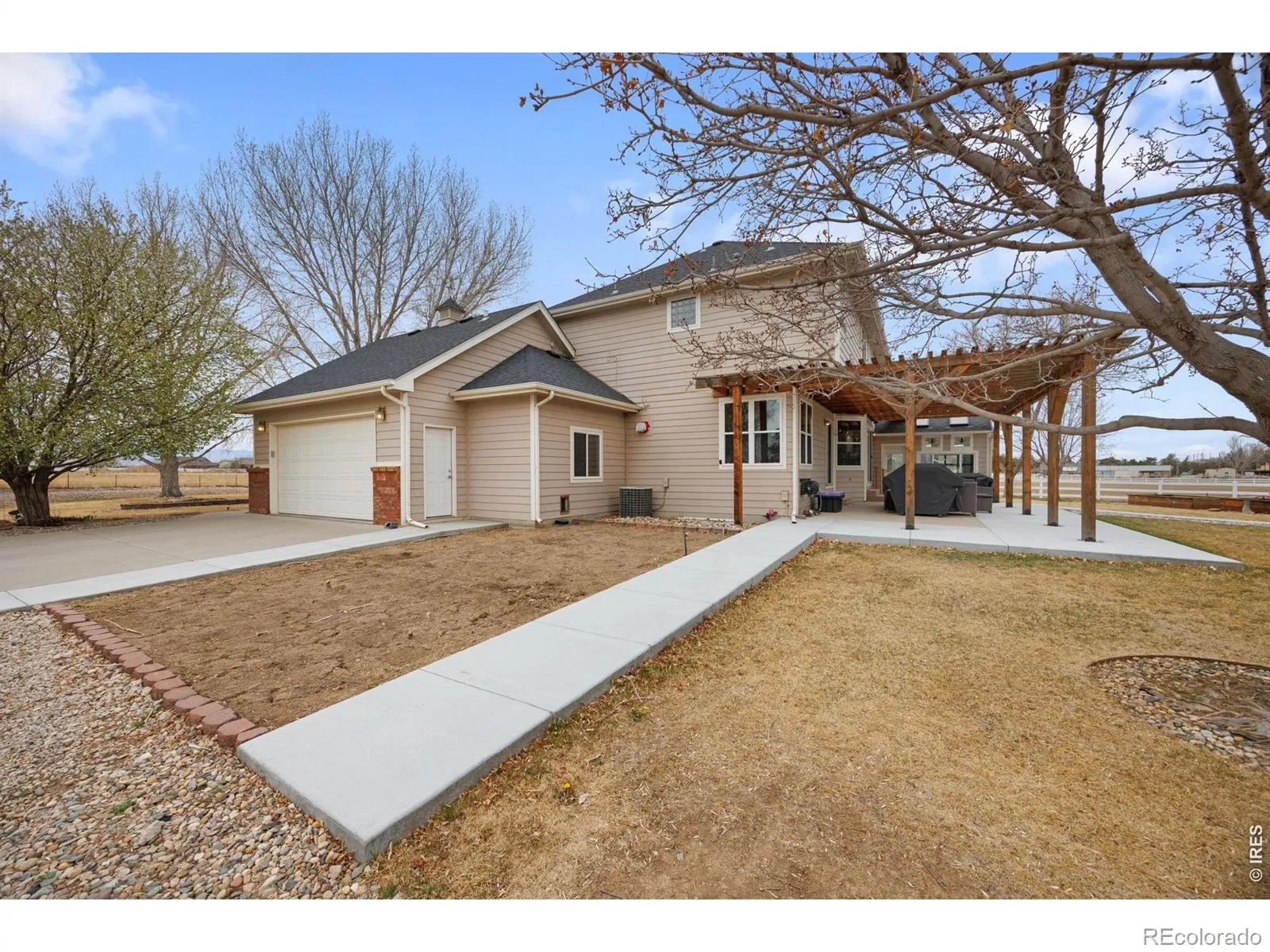 Spectacular estate set on nearly 5 acres, showcasing breathtaking, unobstructed views of Longs Peak and the Front Range. Privately tucked away in a serene setting, yet just minutes from downtown Berthoud and I-25, this property offers an exceptional blend of seclusion and convenience.Inside, refined finishes and thoughtful upgrades throughtout, featuring rich wood flooring and a beautifully renovated kitchen with custom cabinetry, granite countertops, double ovens, an induction cooktop, and soft-close cabinetry. The upper level offers two spacious bedrooms, upstairs laundry/craft room (or 3rd bedroom), including a stunning primary retreat with a fully updated, spa-inspired bathroom.The fully finished basement is designed for both relaxation and entertaining, complete with an expansive game room, wet bar, media room, and a private guest suite. Outdoors, the property continues to impress with 68 ft wide x 46 ft. deep detached shop 10’8″ tall x 14’6″ wide overhead door ideal for storage, barn or a dedicated workspace. The fully fenced grounds are perfectly suited for equestrian living, featuring a working horse arena and a 2-acre grazing pasture, all set against a truly picturesque Colorado backdrop.Sale includes 1 share McIntrye Lateral Ditch-irrigation water rights.