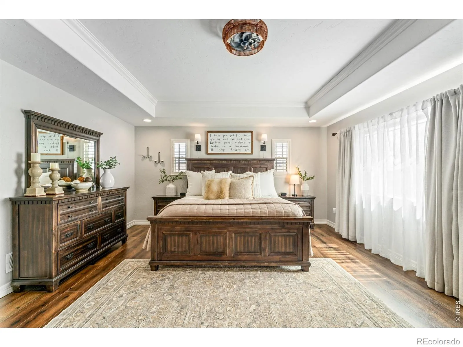 Welcome to 693 Biscayne Ct. in Berthoud’s Heritage Ridge subdivision, where space, function, and thoughtful upgrades come together in a way that is hard to find. This 7 bedroom, 6 bathroom home offers 4,425 square feet, a 4-car tandem garage, and a 100% finished basement designed to support everyday living and easy entertaining. The main level features vaulted ceilings, upgraded flooring, a formal dining room, butler’s pantry, and an open kitchen and family room that create a natural gathering space. The gourmet kitchen includes granite countertops, upgraded GE stainless steel appliances, abundant workspace, and strong connection to the living area. The living room fireplace has been completely redone with a custom modern stone mantle that gives the space a polished focal point. Upstairs, the spacious primary suite makes a statement with double doors, a tray ceiling, large walk-in closet, and a beautifully finished ensuite with dual vanities, granite countertops, tile finishes, custom tile shower, jetted tub, and private water closet. Five bedrooms have their own attached bath, while two additional bedrooms share a Jack and Jill bathroom, creating exceptional flexibility for guests, multigenerational living, or work-from-home needs. The finished basement adds even more usable space with a large living area and kitchenette. Outside, the lush yard, mature landscaping, and inviting patio create a private setting for relaxing or entertaining. Well maintained and full of thoughtful updates including replaced light fixtures, custom trim in the mudroom and dining room, hardwood floors, tile baths, AC, wood shelving, and the option to purchase furnished, this is a rare opportunity where residents enjoy access to neighborhood pool and park amenities that add even more appeal to this well-rounded Berthoud home.