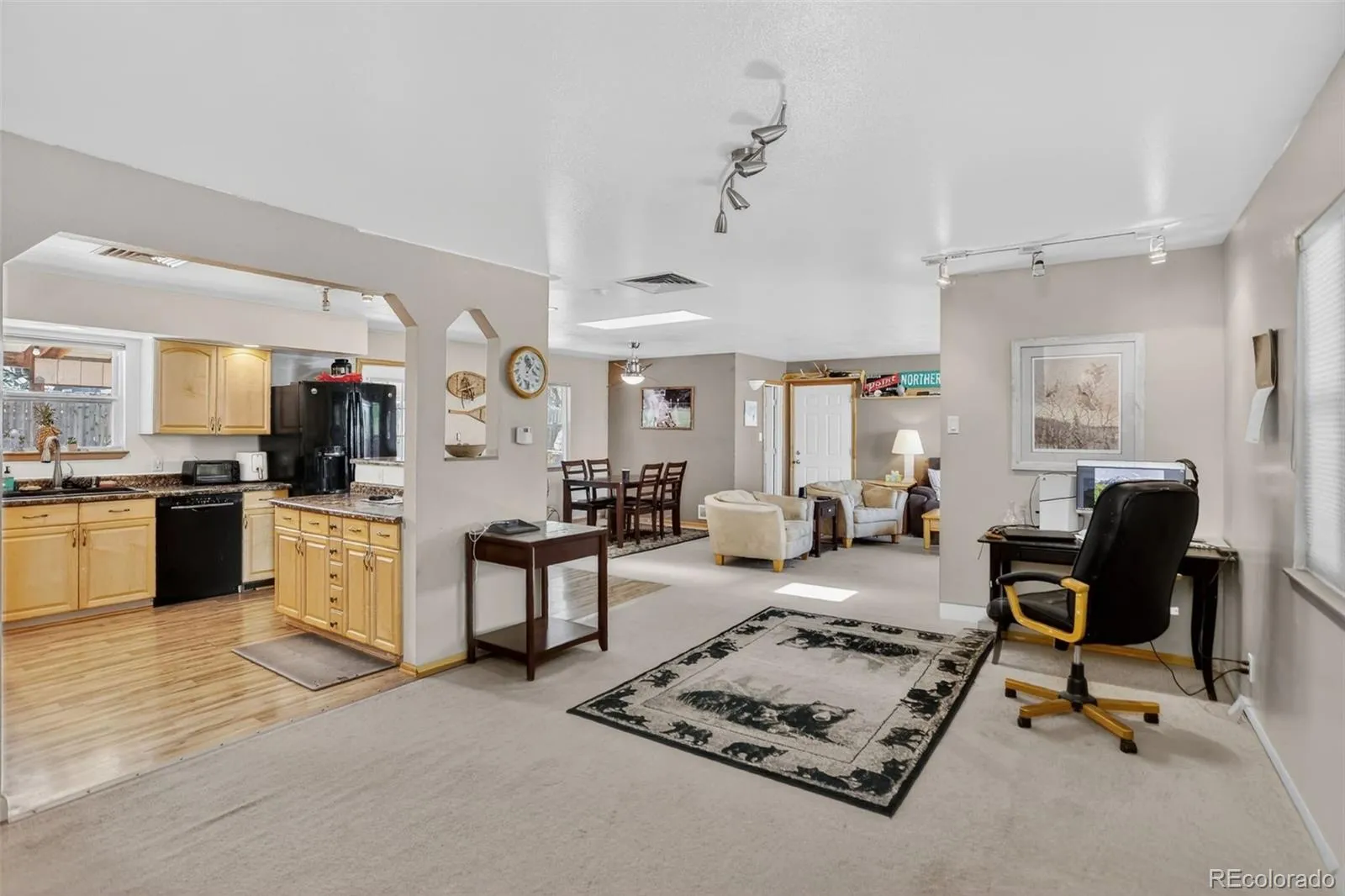 Welcome to this charming ranch-style home, offering comfortable single-level living on a spacious corner lot. Built in 1970, this 3-bedroom, 2 full bath home features 1,029 square feet of living space, plus a 392 sq. ft. attached 2-car heated garage complete with a work bench and garage door opener.Inside, you’ll find an inviting layout with a large living room and a versatile office or flex space-perfect for working from home, hobbies, or play. A skylight enhances the dining and living area with natural light, creating a warm and open feel.The kitchen is both functional and welcoming, featuring a breakfast bar, abundant cabinet storage, and black appliances including a gas stove and oven, dishwasher, and refrigerator. A convenient stackable washer and dryer are located in one of the full bathrooms.Additional highlights include vinyl windows, central A/C, and forced air heating for year-round comfort. Two of the bedrooms are equipped with ceiling fans for added convenience.Step outside to enjoy the fully fenced backyard with a mix of chain link and wood fencing, offering privacy and flexibility. The covered patio is perfect for relaxing or entertaining, and the backyard firepit creates an ideal space for gatherings. The property also includes an additional parking slab at the rear.With a roof replaced in 2018 and a generous 7,233 sq. ft. lot, this home combines practicality, comfort, and outdoor enjoyment in one inviting package.