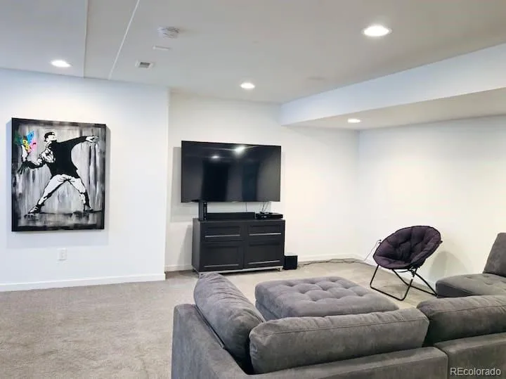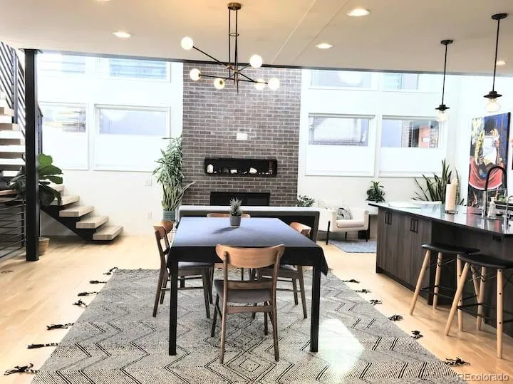 Presenting this bespoke 2.5-story duplex residence, 973 Tennyson Street, setting a definitive standard for high-performance urban luxury within Denver’s desirable Villa Park locale. Encompassing 2,988 square feet, this custom property (a 2018 builder’s model) utilizes structural steel and brick, ensuring superior sound attenuation and a private sanctuary. The architectural sophistication is immediately apparent: the main level features an expansive Great Room with soaring ceilings, anchored by a dramatic 18-foot European brick fireplace. Natural white oak floors transition to a gourmet chef’s kitchen, appointed with $50,000 in bespoke cabinetry, a professional Jenn-Air Pro Series appliance suite, and culinary convenience enhanced by a dedicated instant hot water system. The second level is reserved for private repose, offering a spa-caliber primary suite with a massive steam shower, alongside a secluded guest suite. The multi-level design culminates in the third-floor “Sky Lounge” (Office/Flex/Bedroom) accessing a private, covered rooftop deck, capturing permanent, unobstructed views of the Downtown Denver skyline. The 958 square foot subterranean level expands the exclusive footprint, conceived as a premier entertainment destination encompassing a pre-wired Movie Room/Lounge, a full wet bar, and a well-appointed third bedroom suite. Reflecting long-term value, this Energy Star Certified residence features R-49/R-21 insulation, a tankless water heater, and an active radon mitigation system. Its prime location offers unparalleled convenience, situated minutes from Sloan’s Lake and Downtown, granting effortless access to Denver’s cultural and commercial corridors. Complete with a secure two-car garage, this is a rare acquisition for the discerning client, defining architectural distinction and modern efficiency.