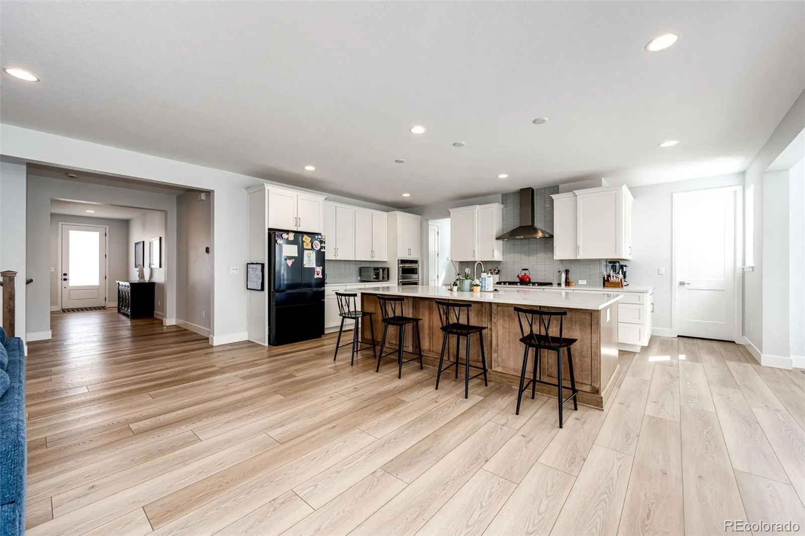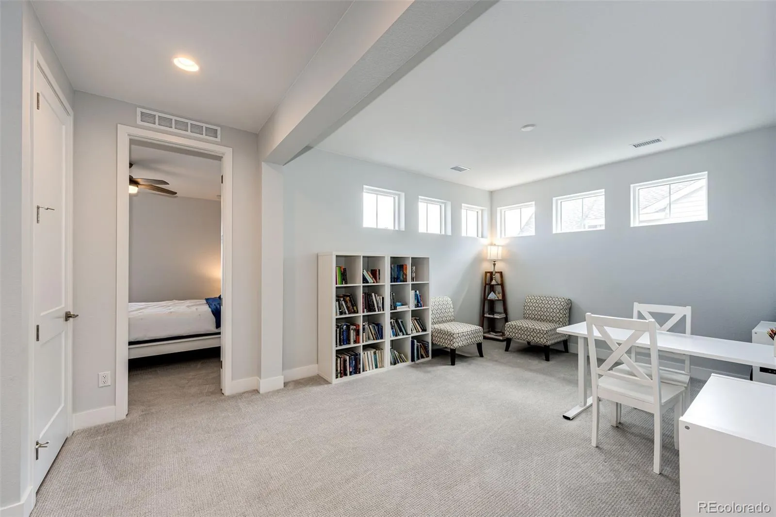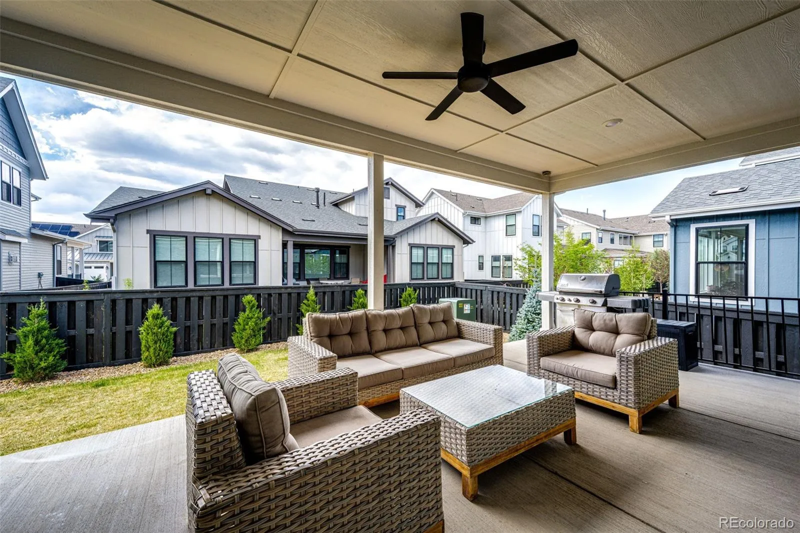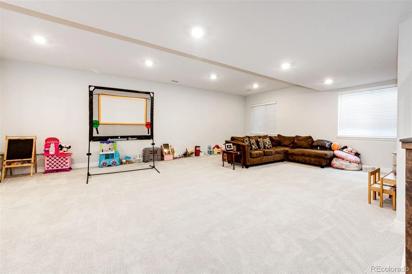 The gourmet kitchen includes Yorktowne Shaw Maple White Icing perimeter cabinets, a massive quartz island, MSI New Carrara Marmi countertops with a full backsplash, and Yorktowne Shaw Cherry Cappuccino cabinets throughout the rest of the home. Additionally, the property features a spacious upper primary bedroom with an incredible 5-piece bathroom, a large loft, separate office, a functional finished basement with a large rec room, an extra bedroom, a three-quarter bathroom, and ample unfinished space for storage, a home gym, and a golf simulator. Outdoor features include a covered patio and a professionally landscaped backyard. There is an extra-large 4-bay tandem garage equipped with an EV charger. Residents also enjoy access to an incredible clubhouse with a pool, as well as the High Line Canal, Roxborough State Park, Chatfield State Park, and Waterton Canyon, all offering extensive trails and outdoor recreation nearby. Very convenient to C-470, Santa Fe Ave. You will love this home!