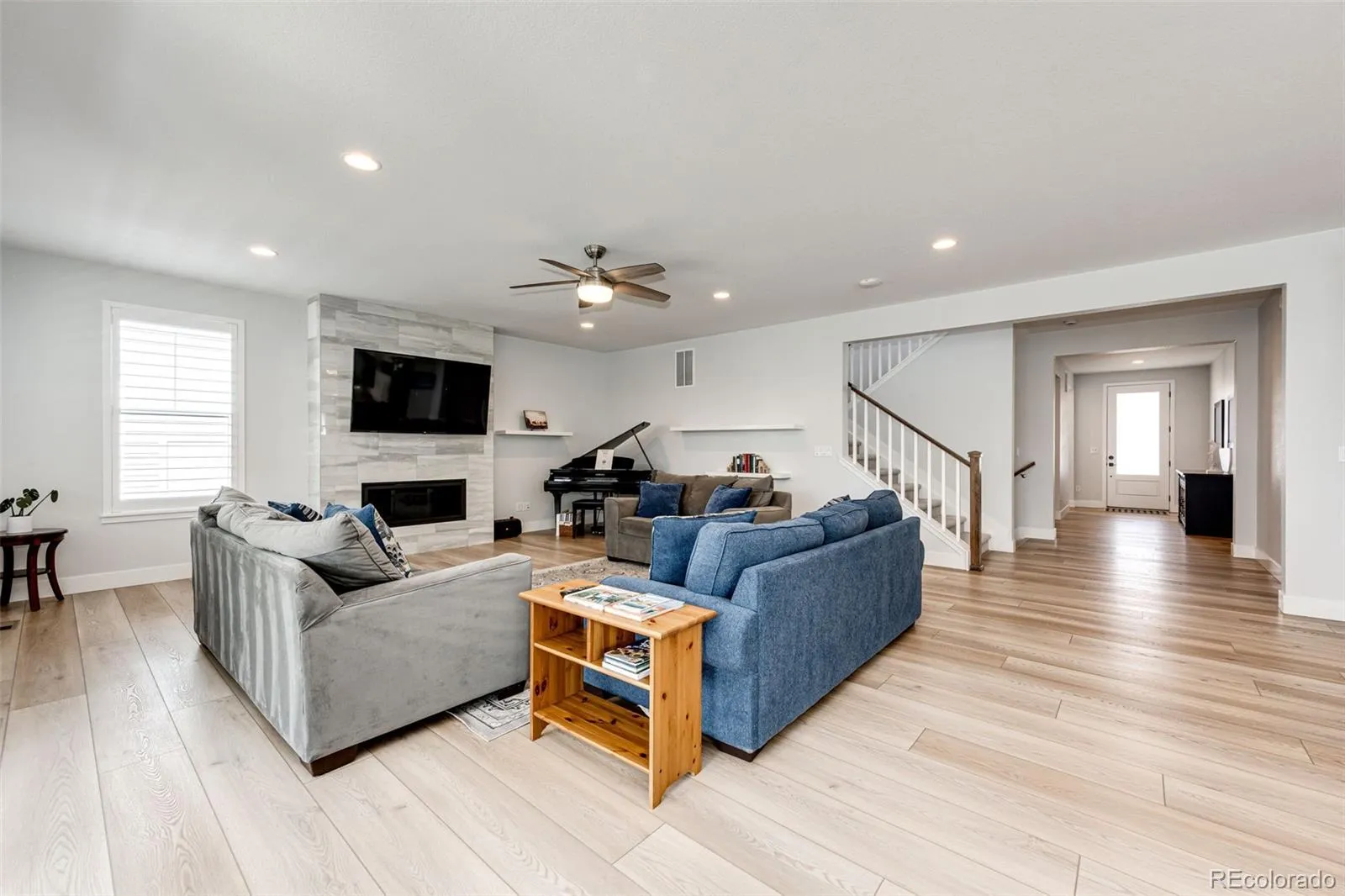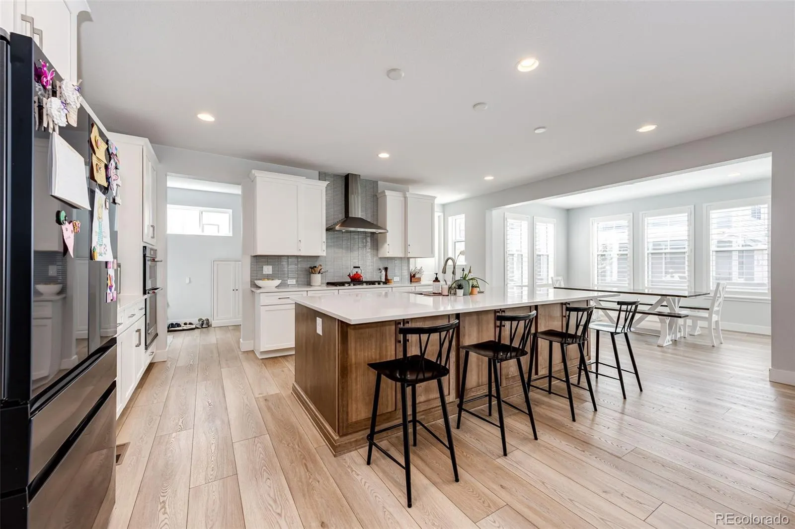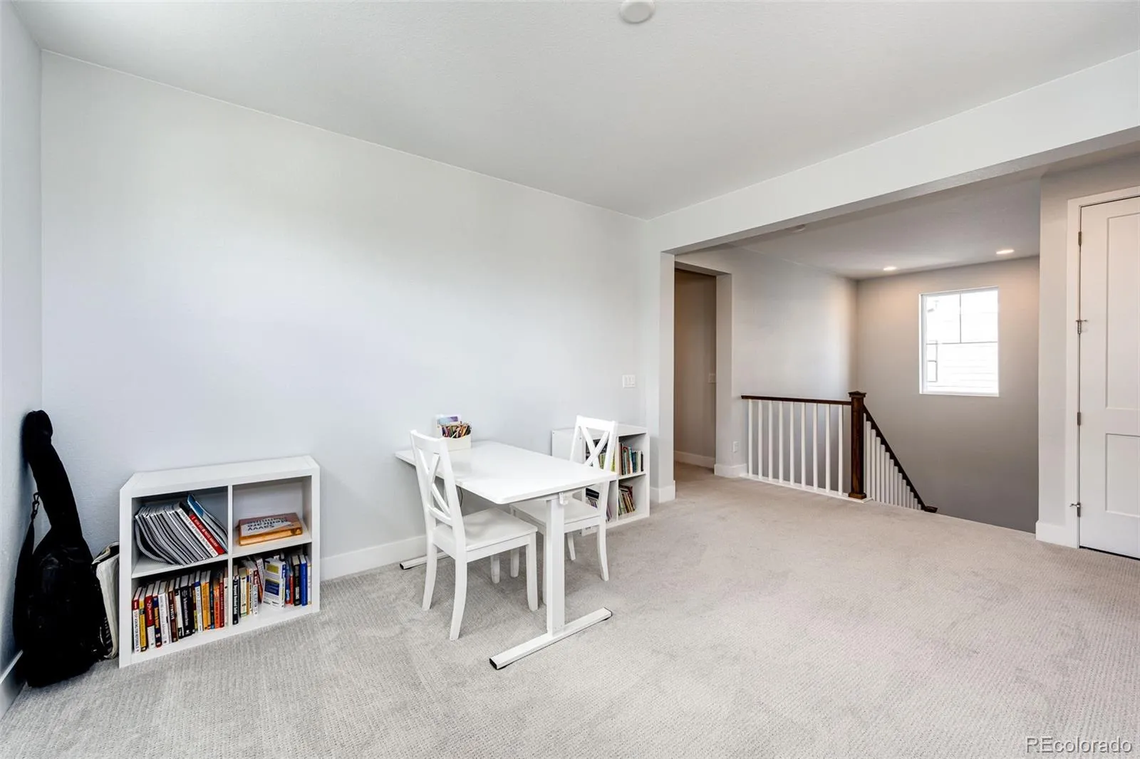 The gourmet kitchen includes Yorktowne Shaw Maple White Icing perimeter cabinets, a massive quartz island, MSI New Carrara Marmi countertops with a full backsplash, and Yorktowne Shaw Cherry Cappuccino cabinets throughout the rest of the home. Additionally, the property features a spacious upper primary bedroom with an incredible 5-piece bathroom, a large loft, separate office, a functional finished basement with a large rec room, an extra bedroom, a three-quarter bathroom, and ample unfinished space for storage, a home gym, and a golf simulator. Outdoor features include a covered patio and a professionally landscaped backyard. There is an extra-large 4-bay tandem garage equipped with an EV charger. Residents also enjoy access to an incredible clubhouse with a pool, as well as the High Line Canal, Roxborough State Park, Chatfield State Park, and Waterton Canyon, all offering extensive trails and outdoor recreation nearby. Very convenient to C-470, Santa Fe Ave. You will love this home!