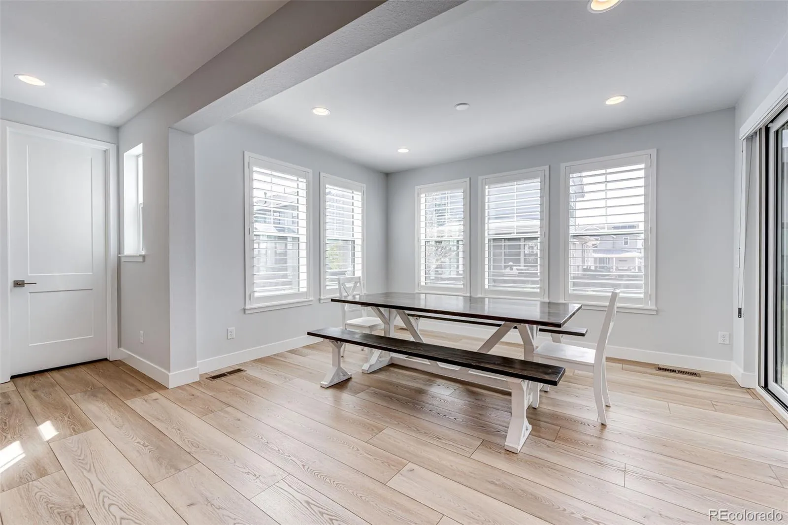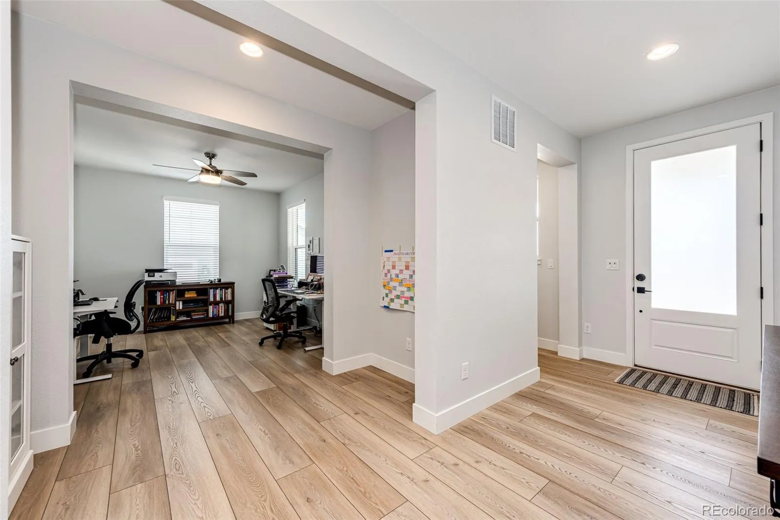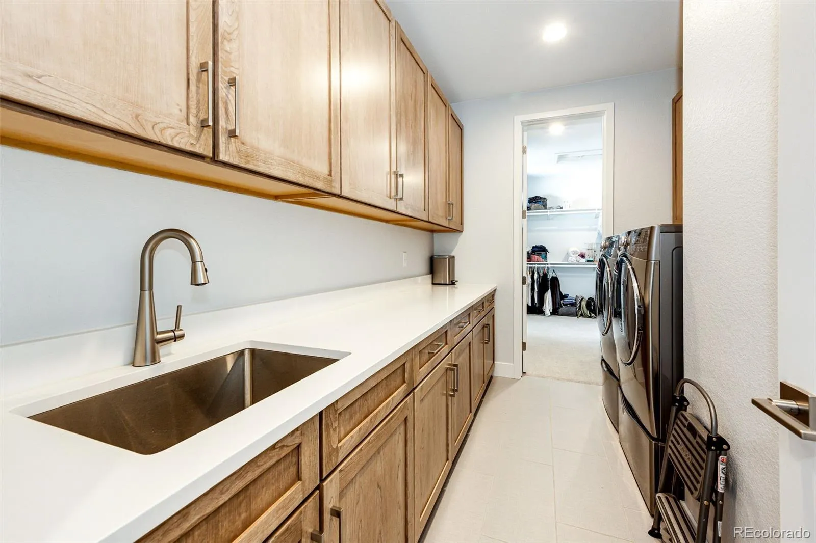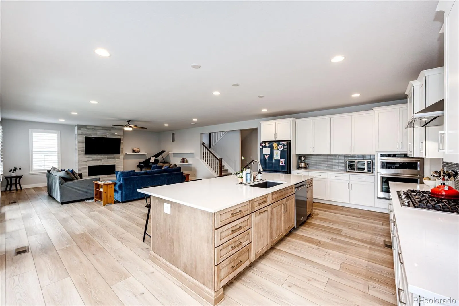 The gourmet kitchen includes Yorktowne Shaw Maple White Icing perimeter cabinets, a massive quartz island, MSI New Carrara Marmi countertops with a full backsplash, and Yorktowne Shaw Cherry Cappuccino cabinets throughout the rest of the home. Additionally, the property features a spacious upper primary bedroom with an incredible 5-piece bathroom, a large loft, separate office, a functional finished basement with a large rec room, an extra bedroom, a three-quarter bathroom, and ample unfinished space for storage, a home gym, and a golf simulator. Outdoor features include a covered patio and a professionally landscaped backyard. There is an extra-large 4-bay tandem garage equipped with an EV charger. Residents also enjoy access to an incredible clubhouse with a pool, as well as the High Line Canal, Roxborough State Park, Chatfield State Park, and Waterton Canyon, all offering extensive trails and outdoor recreation nearby. Very convenient to C-470, Santa Fe Ave. You will love this home!