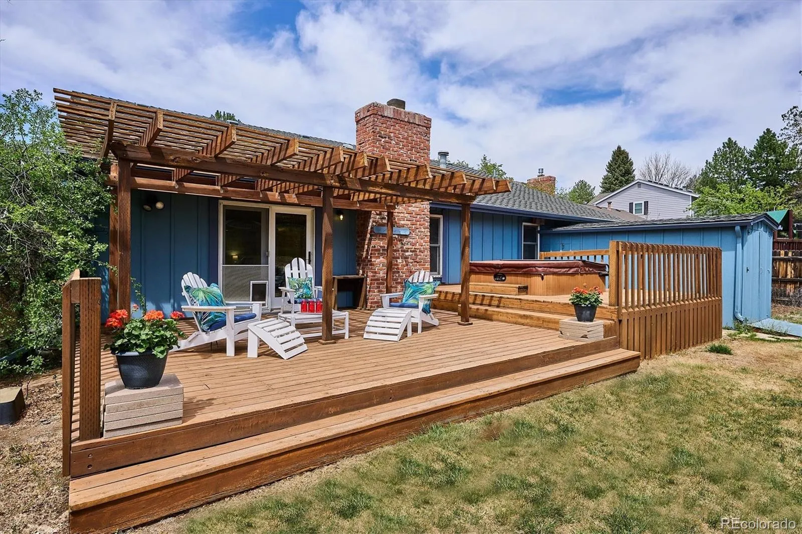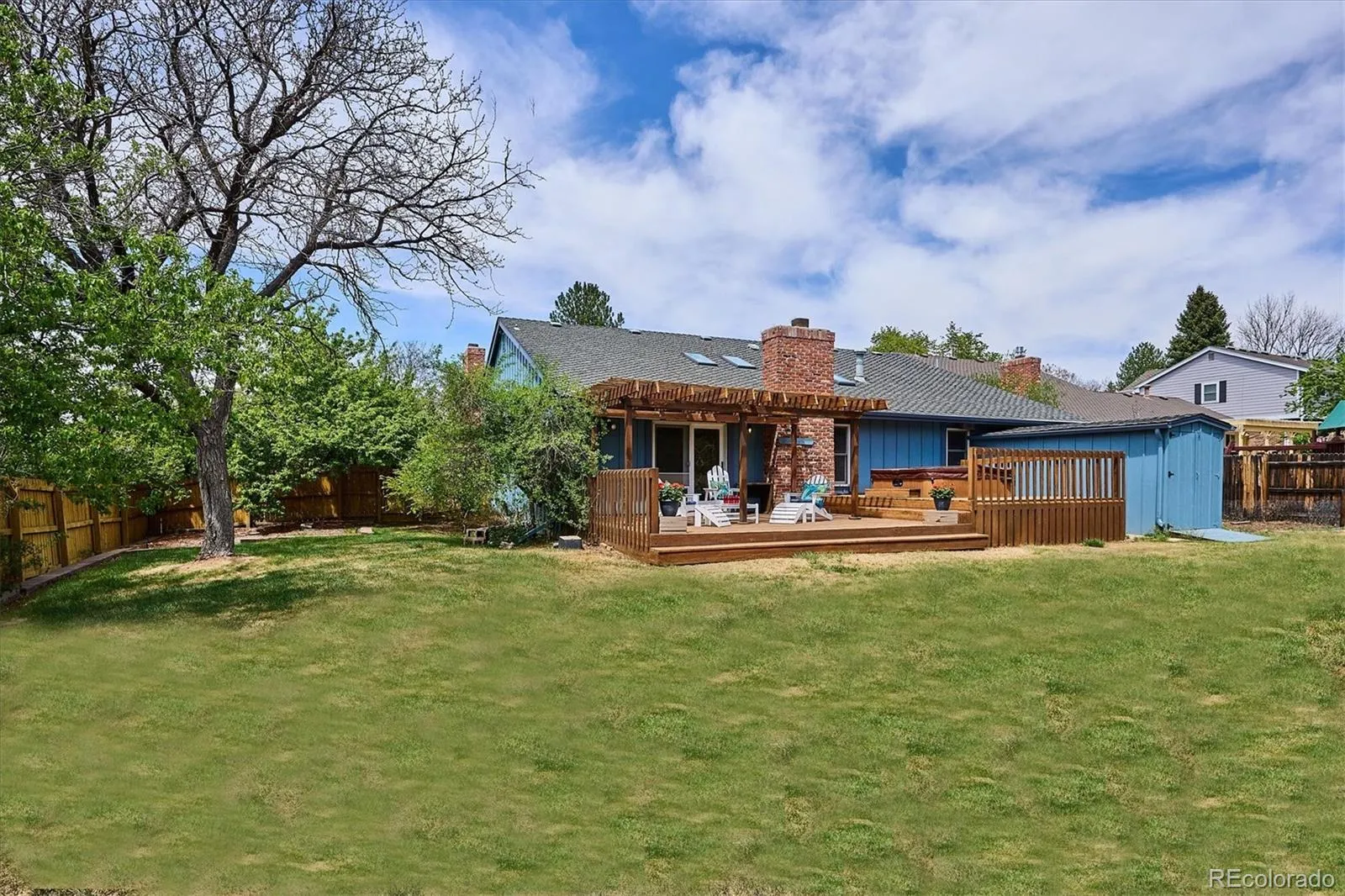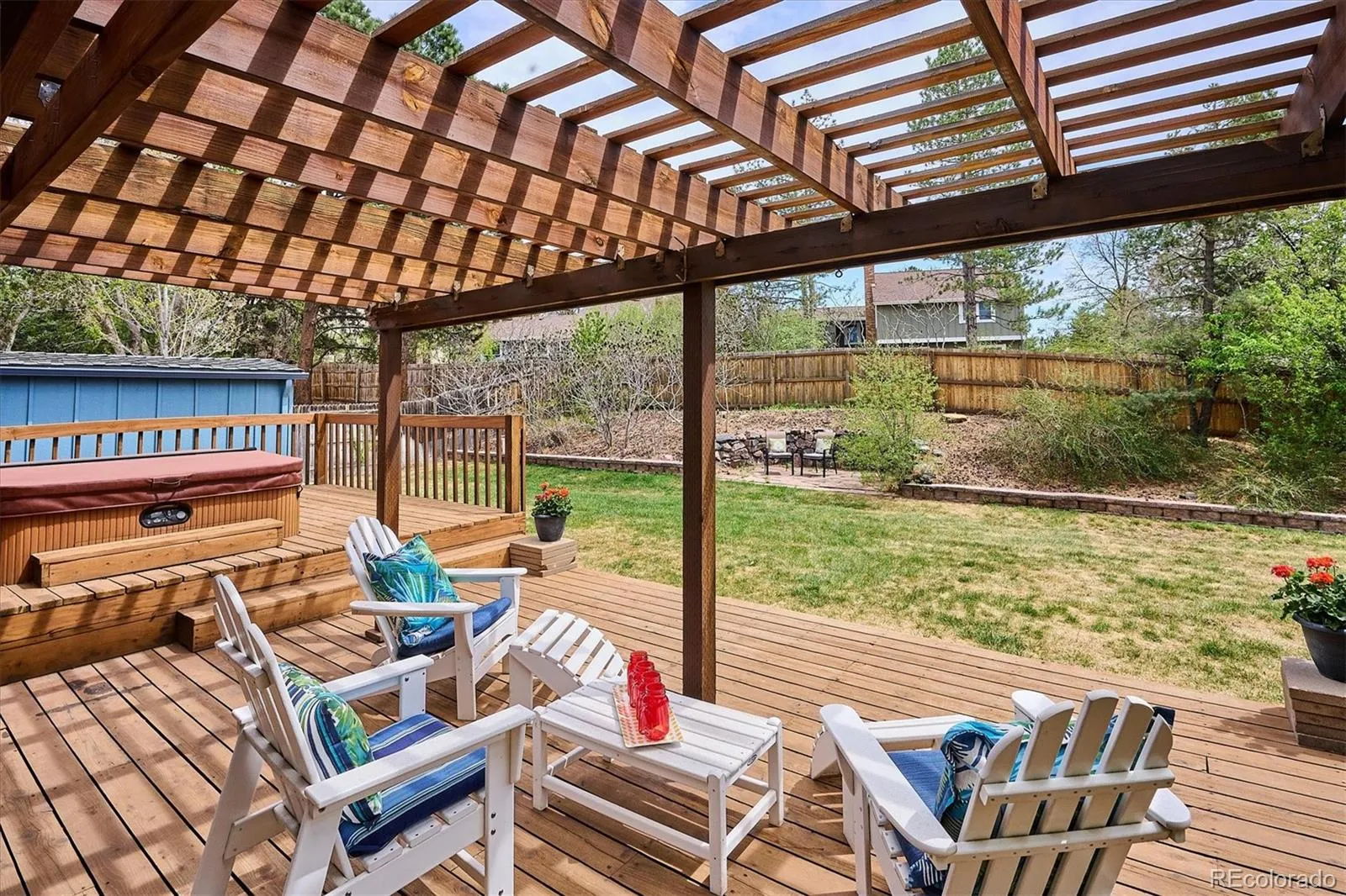 The home also features professionally landscaped front and backyard with mature trees and shrubs, and a large, 12,806 sq ft lot. Relax in the backyard on the deck or in the included hot tub, perfect for enjoying Colorado evenings.The backyard includes an 8×16 shed for additional storage, and the garage features coated floors.