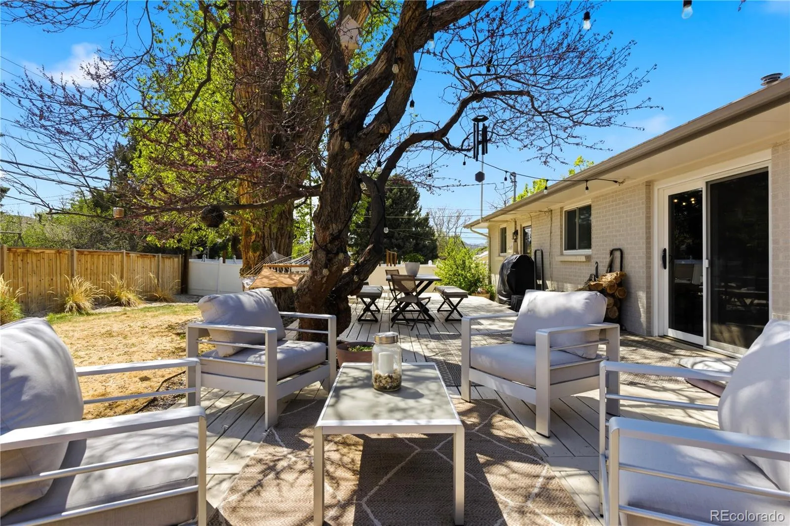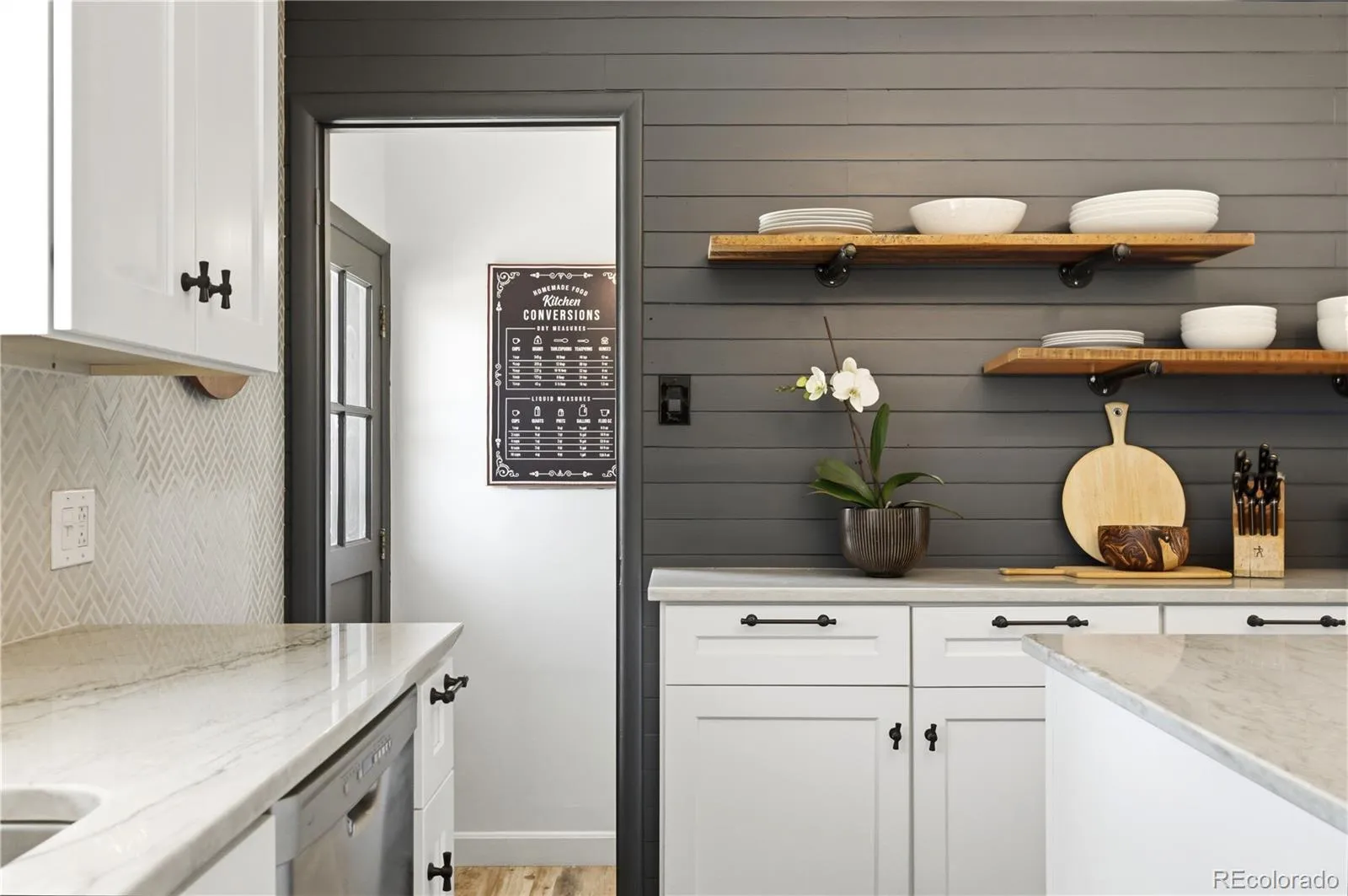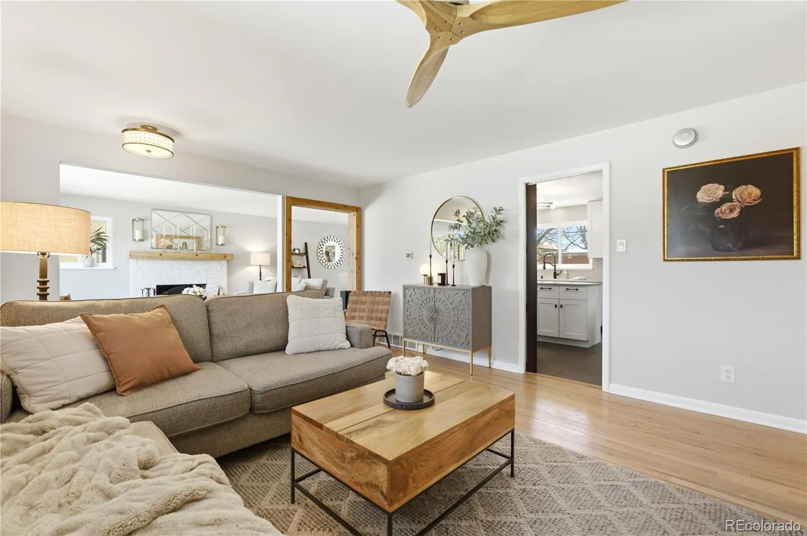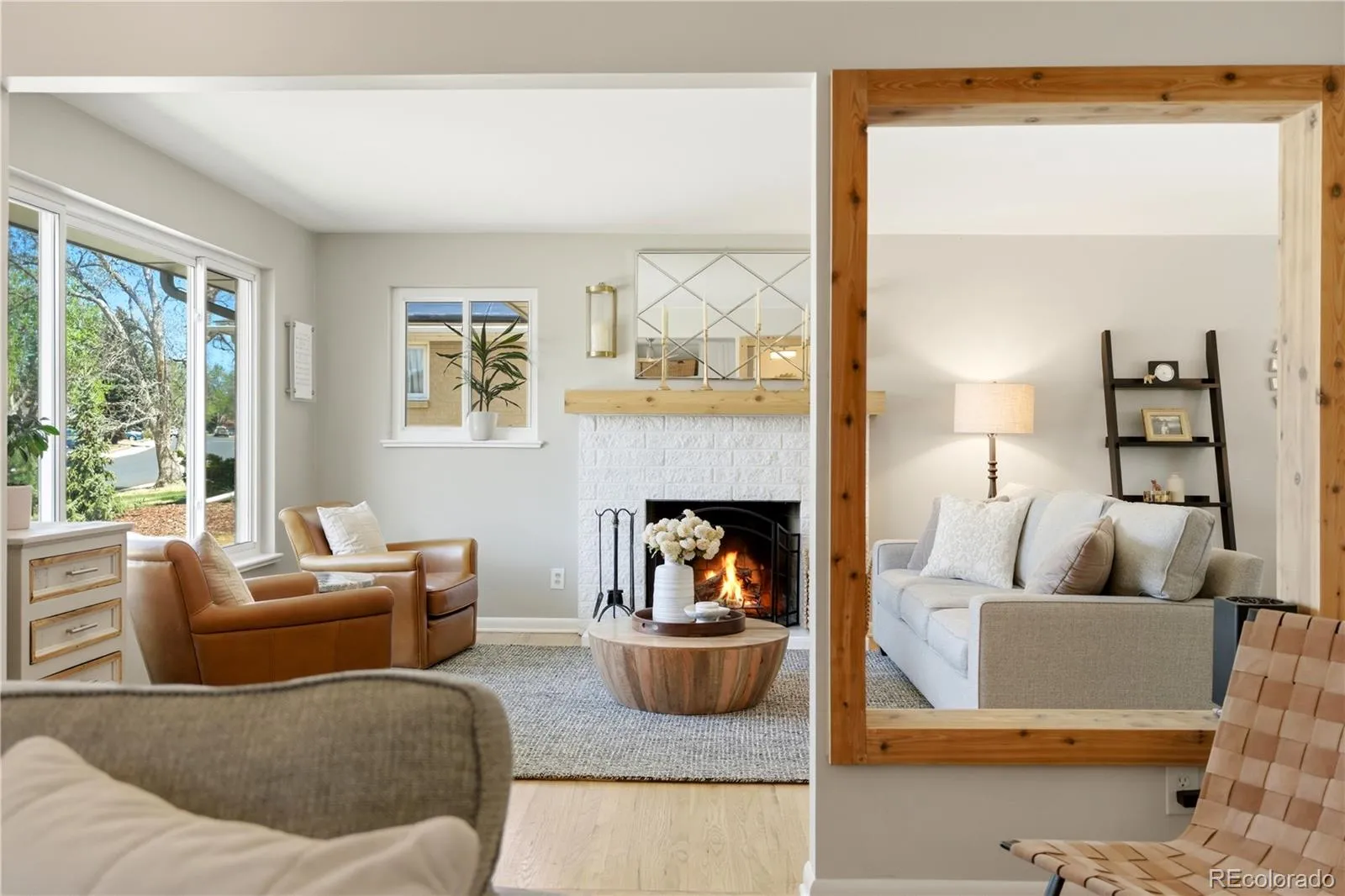 Inside, you’ll find warm and inviting living spaces highlighted by a cozy wood-burning fireplace and stunning refinished original hardwood floors. The designer kitchen features custom cabinetry, Sea Pearl granite counters, and stainless-steel appliances. Upgraded doors and custom cabinets add both style and functionality. The bathrooms are remodeled with elegant marble flooring, a cast iron tub, well-appointed light fixtures. and a refined, spa-like feel. The main level offers two bedrooms and one and a half bathrooms, while the finished basement expands your living space with two additional bedrooms, a three-quarter bath, a second fireplace, and a large media room—perfect for entertaining, relaxing, or working out. Outdoors, the newly designed backyard offers a spacious retreat with a beautiful and generous deck ideal for enjoying Colorado’s seasons. A one-car attached garage, carport, and extended driveway provide ample parking and convenience. Absolutely delightful and full of charm, this home is a rare blend of thoughtful design, quality craftsmanship, and timeless appeal in a highly desirable Littleton location.