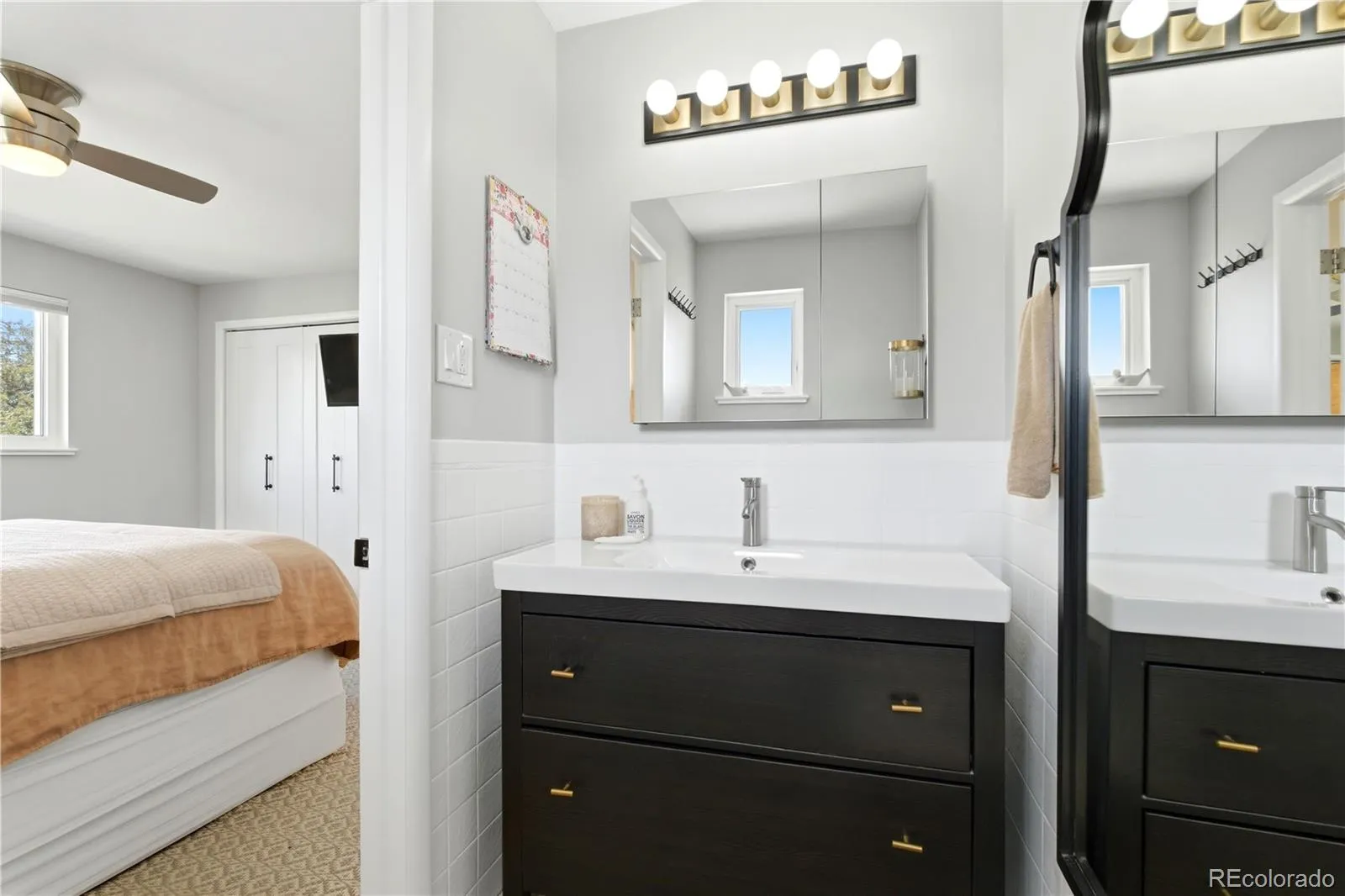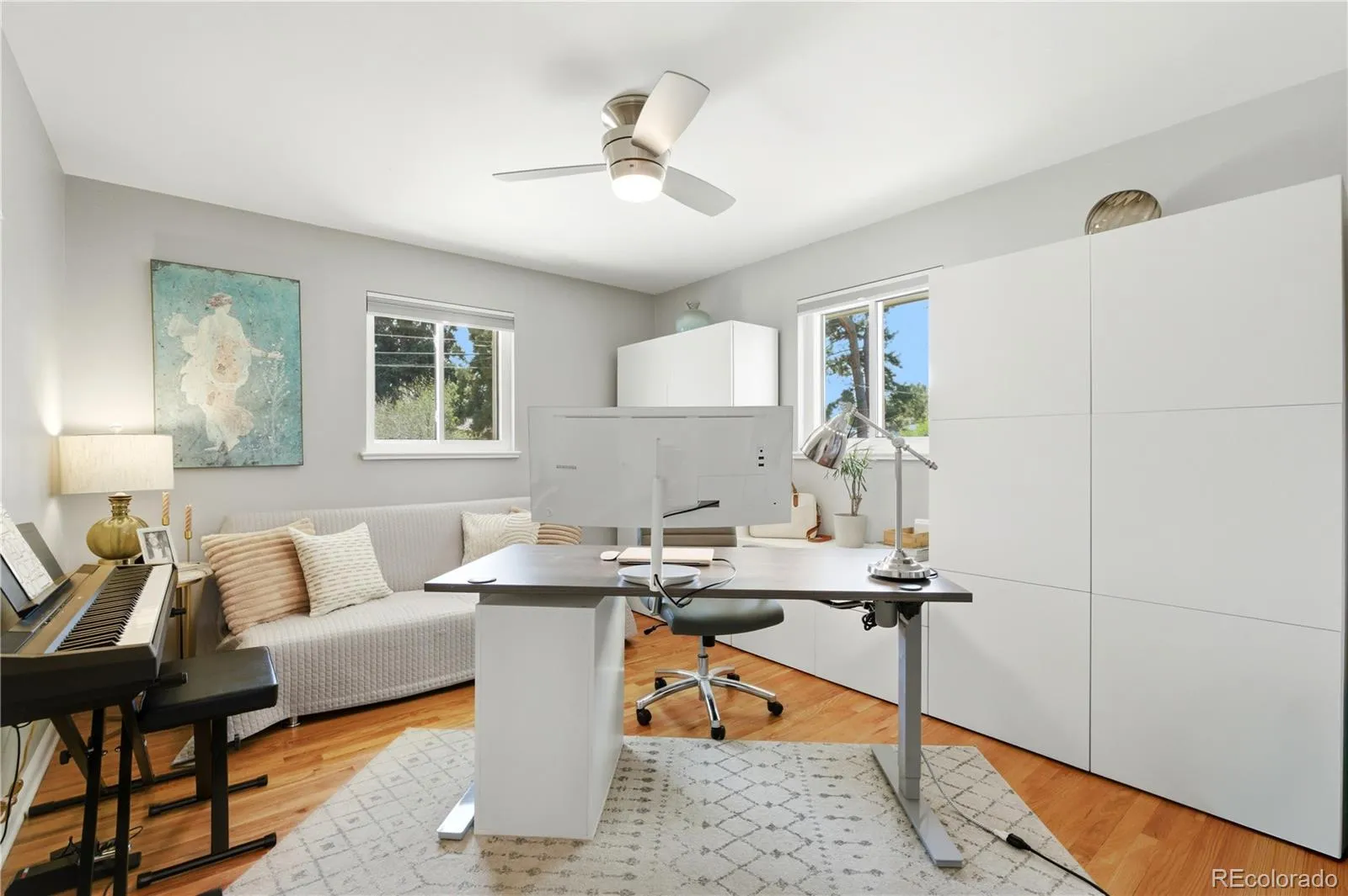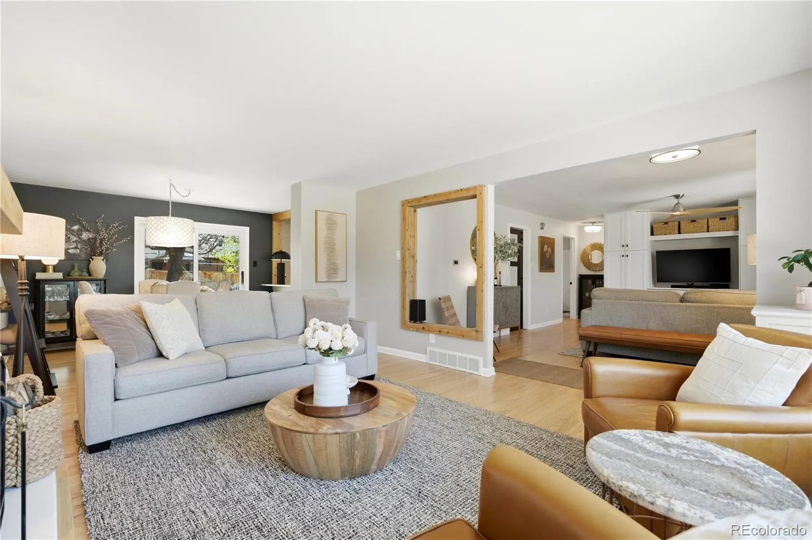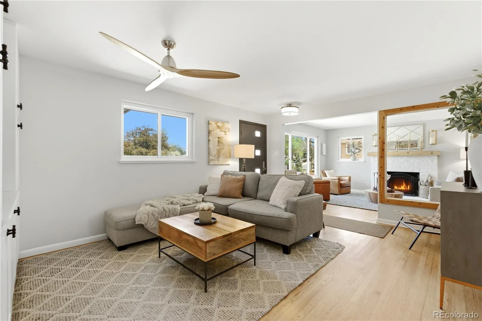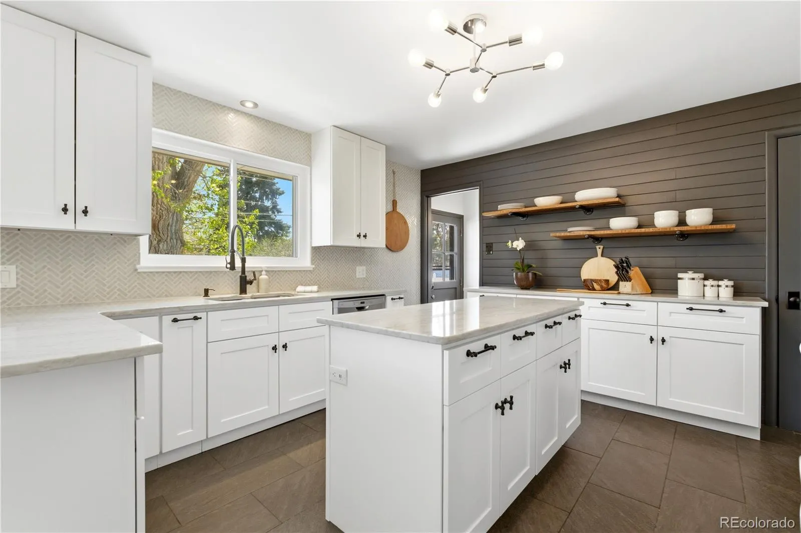 Inside, you’ll find warm and inviting living spaces highlighted by a cozy wood-burning fireplace and stunning refinished original hardwood floors. The designer kitchen features custom cabinetry, Sea Pearl granite counters, and stainless-steel appliances. Upgraded doors and custom cabinets add both style and functionality. The bathrooms are remodeled with elegant marble flooring, a cast iron tub, well-appointed light fixtures. and a refined, spa-like feel. The main level offers two bedrooms and one and a half bathrooms, while the finished basement expands your living space with two additional bedrooms, a three-quarter bath, a second fireplace, and a large media room—perfect for entertaining, relaxing, or working out. Outdoors, the newly designed backyard offers a spacious retreat with a beautiful and generous deck ideal for enjoying Colorado’s seasons. A one-car attached garage, carport, and extended driveway provide ample parking and convenience. Absolutely delightful and full of charm, this home is a rare blend of thoughtful design, quality craftsmanship, and timeless appeal in a highly desirable Littleton location.