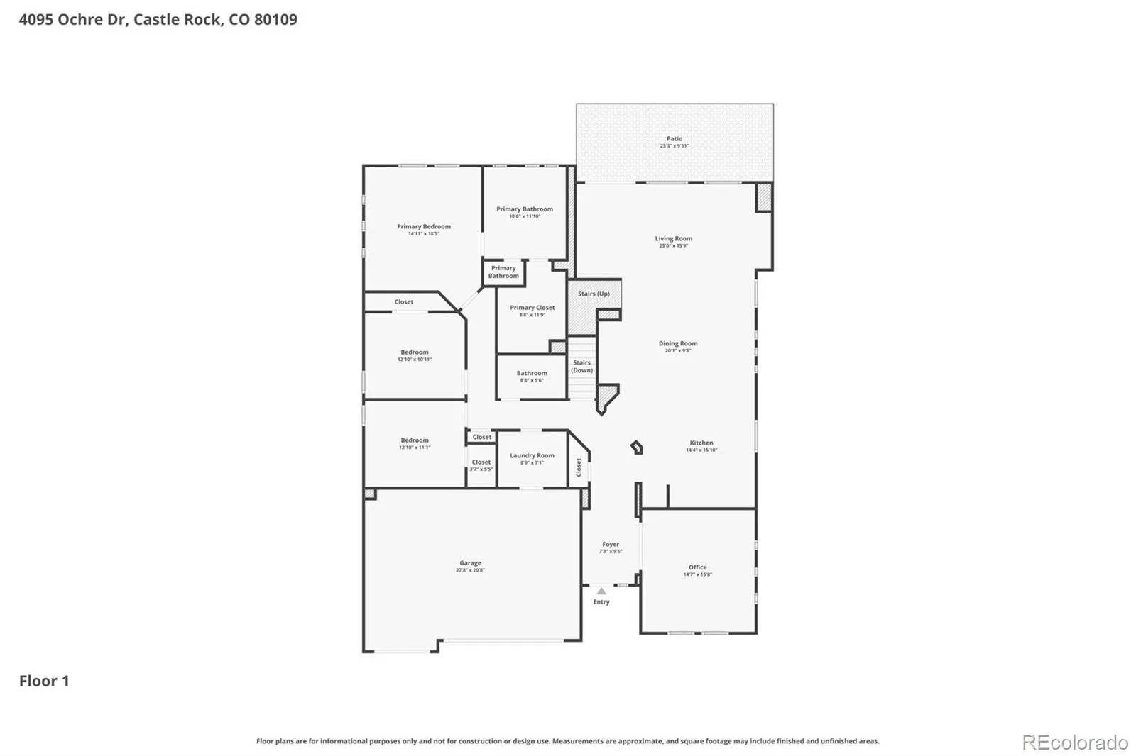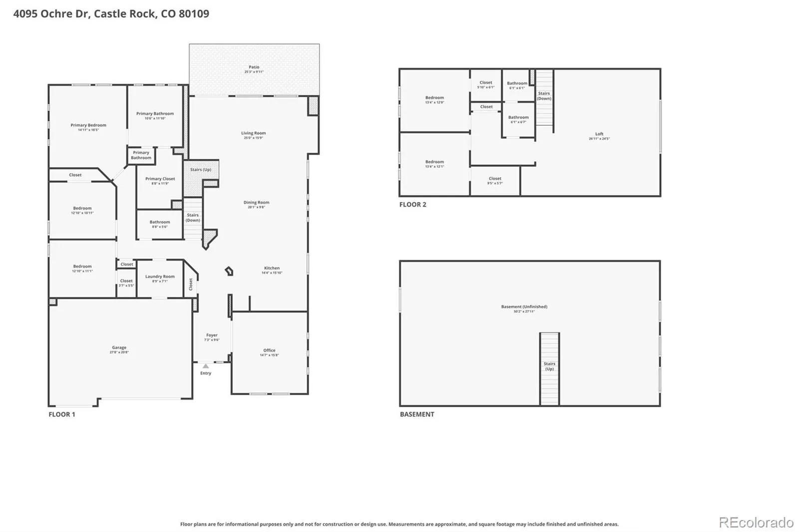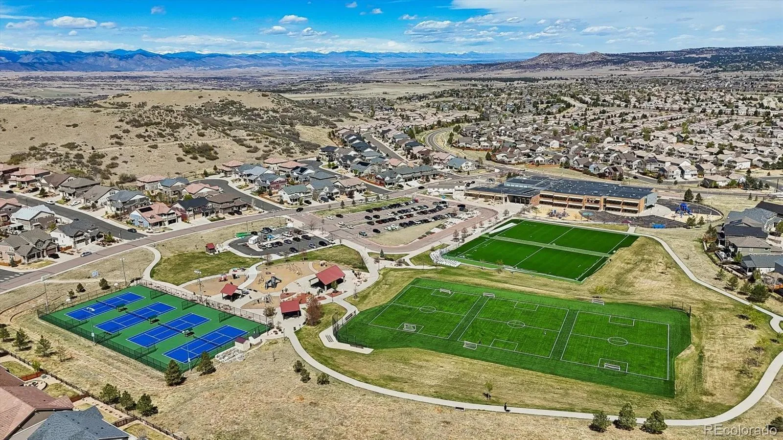 Rare 5 bedroom home with ranch style living!!! Three bedrooms – the Primary Suite and two secondary bedrooms on the main level and two additional secondary bedrooms on the upper level! Perfect for guests, in-laws, teenagers, etc.! This designer-finished home is excellent for those seeking luxury and serenity, nestled against hundreds of acres of open space and trails. This spacious residence features 5 bedrooms and 3 bathrooms, sprawling over 4,992 square feet of meticulously designed living space. The 7,579 square foot lot offers breathtaking views and a seamless connection to nature, with direct access to the Ridgeline Trail system a mere 40 yards to a trailheadand! The amenities of The Meadows, including pools, parks, and more are right at hand. The chef’s kitchen is a centerpiece of the home, offering a breakfast bar, island, and top-of-the-line appliances, including a range, refrigerator, dishwasher and microwave. it boasts a functional and elegant design plus full open to the expanded family room for a great room effect.. A main-floor primary suite providing comfort and privacy. A full unfinished basement with 9-foot ceilings is ready for your customization, with the potential to add additional bedrooms, bathroom, and a living area. Enjoy modern conveniences such as central AC, heated garage, washer, dryer, forced air heating and an expansive loft. The home is also has an attached and heated 3-car garage. Take advantage of the stunning open space views right from your backyard, along with the community’s trail systems, 1 block to elementary school and park, I-25, Santa Fe, and downtown Castle Rock. This home is a perfect blend of elegance and functionality, offering a peaceful retreat with easy access to the vibrant amenities of Castle Rock. Don’t miss this special opportunity to own a home in one of the most desirable areas and locations of Castle Rock. One owner with pride of ownership. Unique floor plan fits large or expanded families!