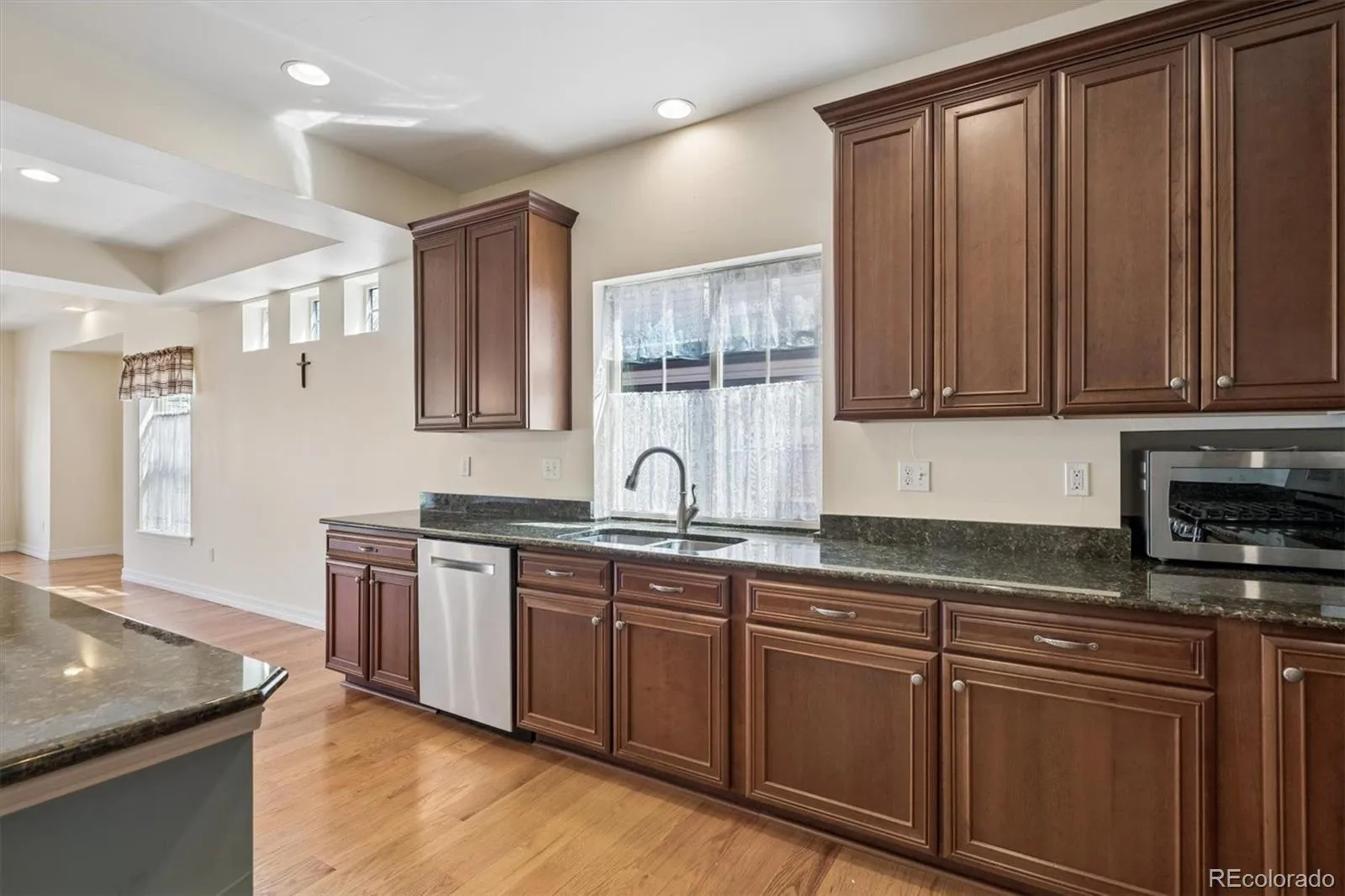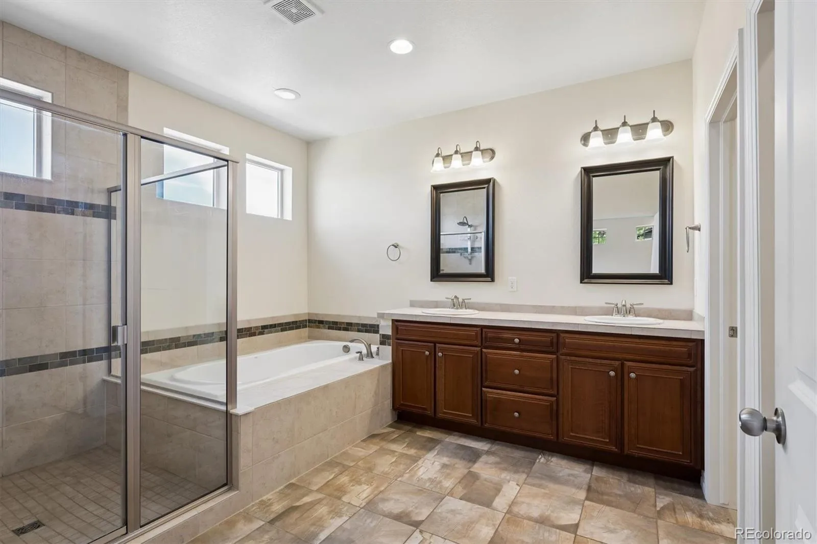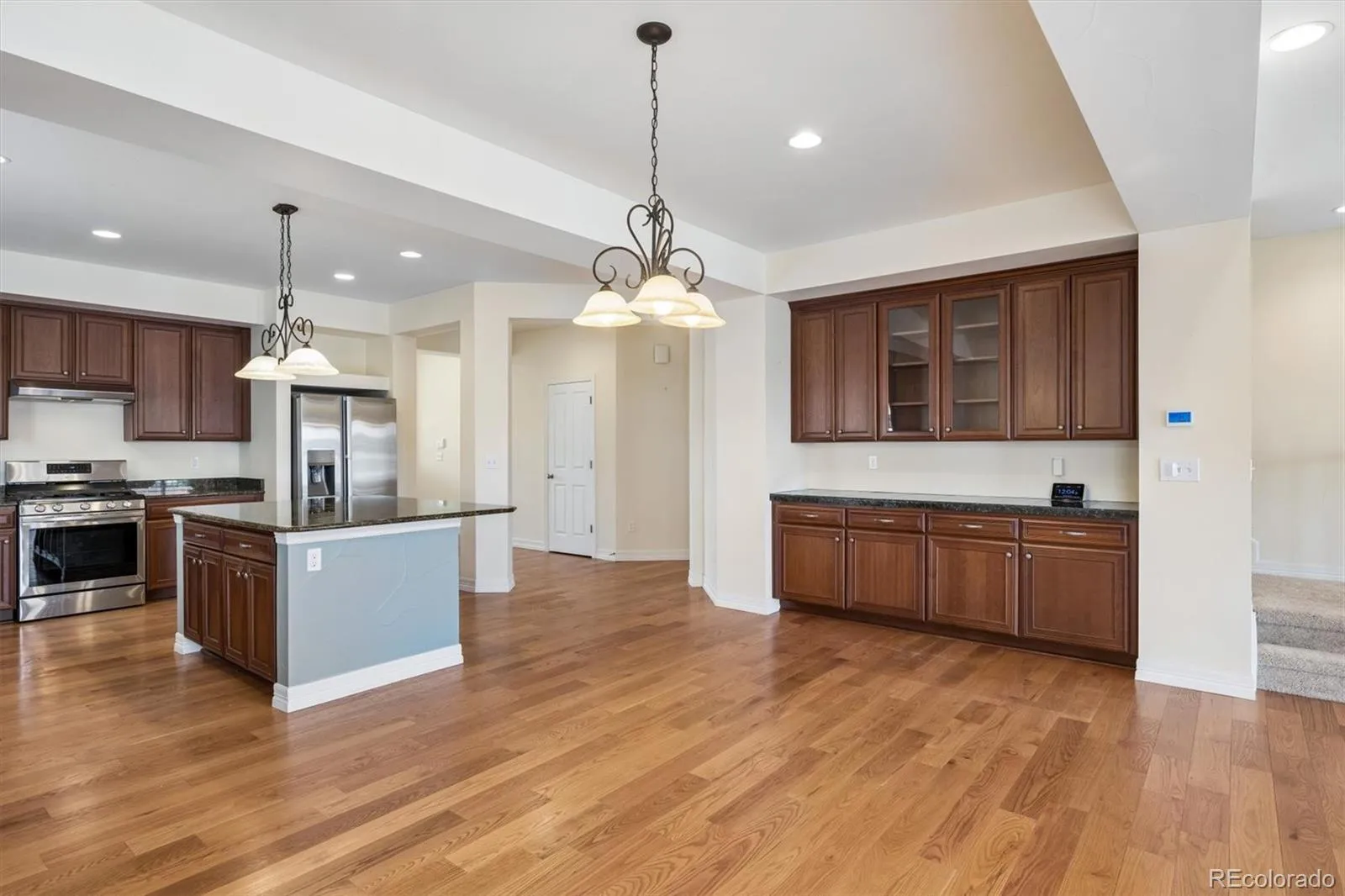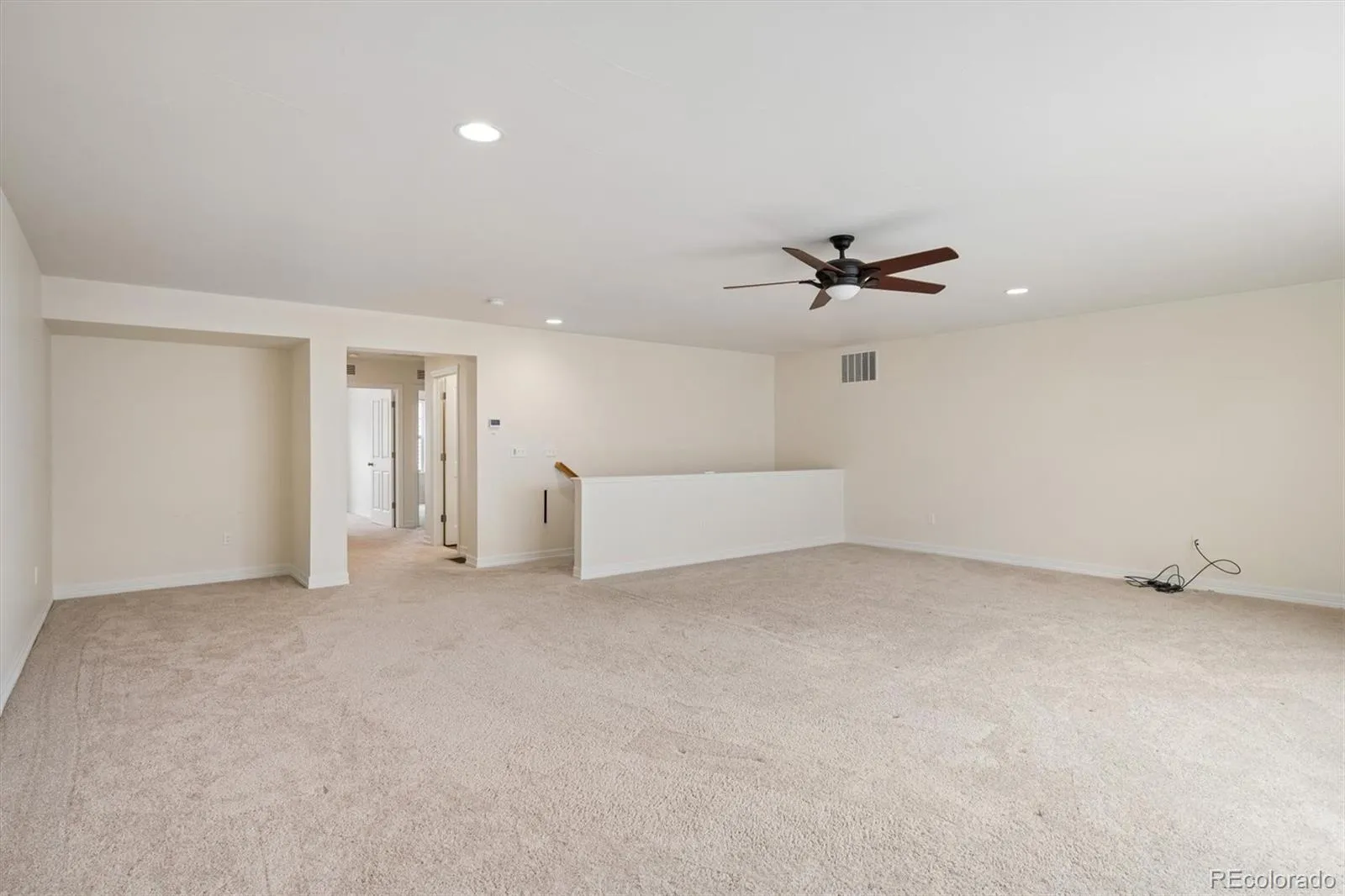 Rare 5 bedroom home with ranch style living!!! Three bedrooms – the Primary Suite and two secondary bedrooms on the main level and two additional secondary bedrooms on the upper level! Perfect for guests, in-laws, teenagers, etc.! This designer-finished home is excellent for those seeking luxury and serenity, nestled against hundreds of acres of open space and trails. This spacious residence features 5 bedrooms and 3 bathrooms, sprawling over 4,992 square feet of meticulously designed living space. The 7,579 square foot lot offers breathtaking views and a seamless connection to nature, with direct access to the Ridgeline Trail system a mere 40 yards to a trailheadand! The amenities of The Meadows, including pools, parks, and more are right at hand. The chef’s kitchen is a centerpiece of the home, offering a breakfast bar, island, and top-of-the-line appliances, including a range, refrigerator, dishwasher and microwave. it boasts a functional and elegant design plus full open to the expanded family room for a great room effect.. A main-floor primary suite providing comfort and privacy. A full unfinished basement with 9-foot ceilings is ready for your customization, with the potential to add additional bedrooms, bathroom, and a living area. Enjoy modern conveniences such as central AC, heated garage, washer, dryer, forced air heating and an expansive loft. The home is also has an attached and heated 3-car garage. Take advantage of the stunning open space views right from your backyard, along with the community’s trail systems, 1 block to elementary school and park, I-25, Santa Fe, and downtown Castle Rock. This home is a perfect blend of elegance and functionality, offering a peaceful retreat with easy access to the vibrant amenities of Castle Rock. Don’t miss this special opportunity to own a home in one of the most desirable areas and locations of Castle Rock. One owner with pride of ownership. Unique floor plan fits large or expanded families!
