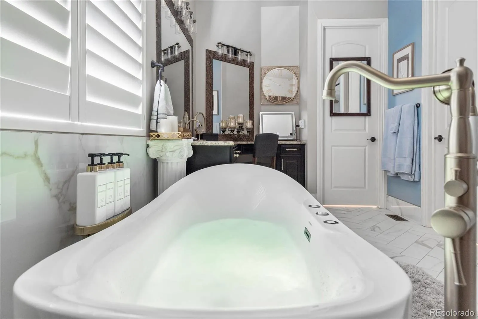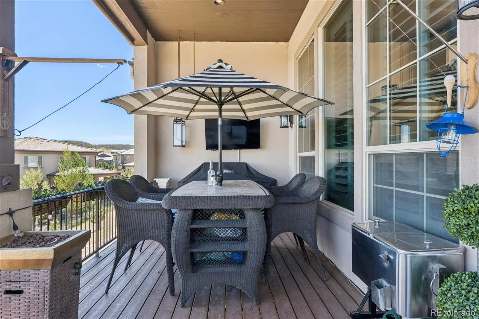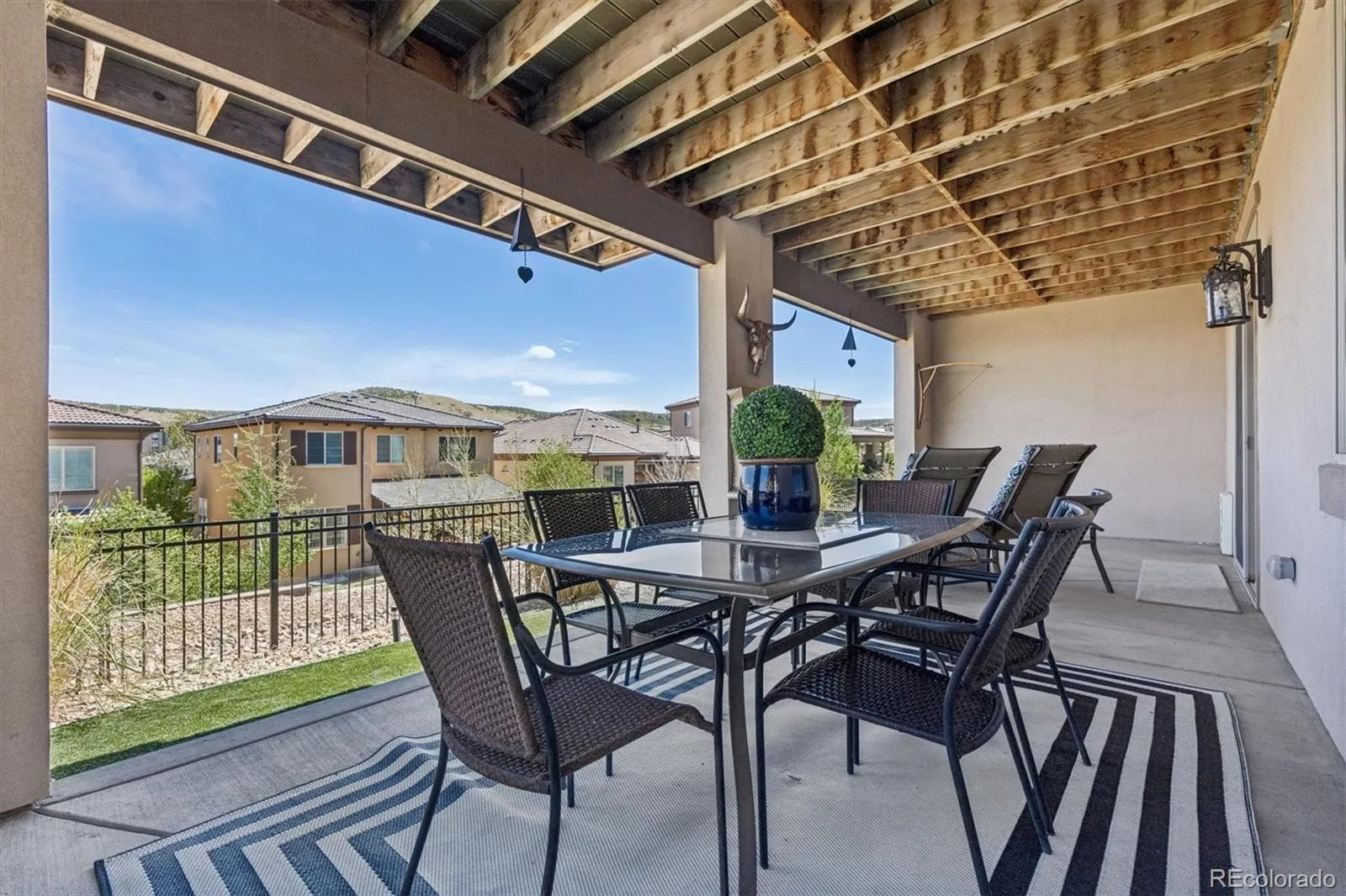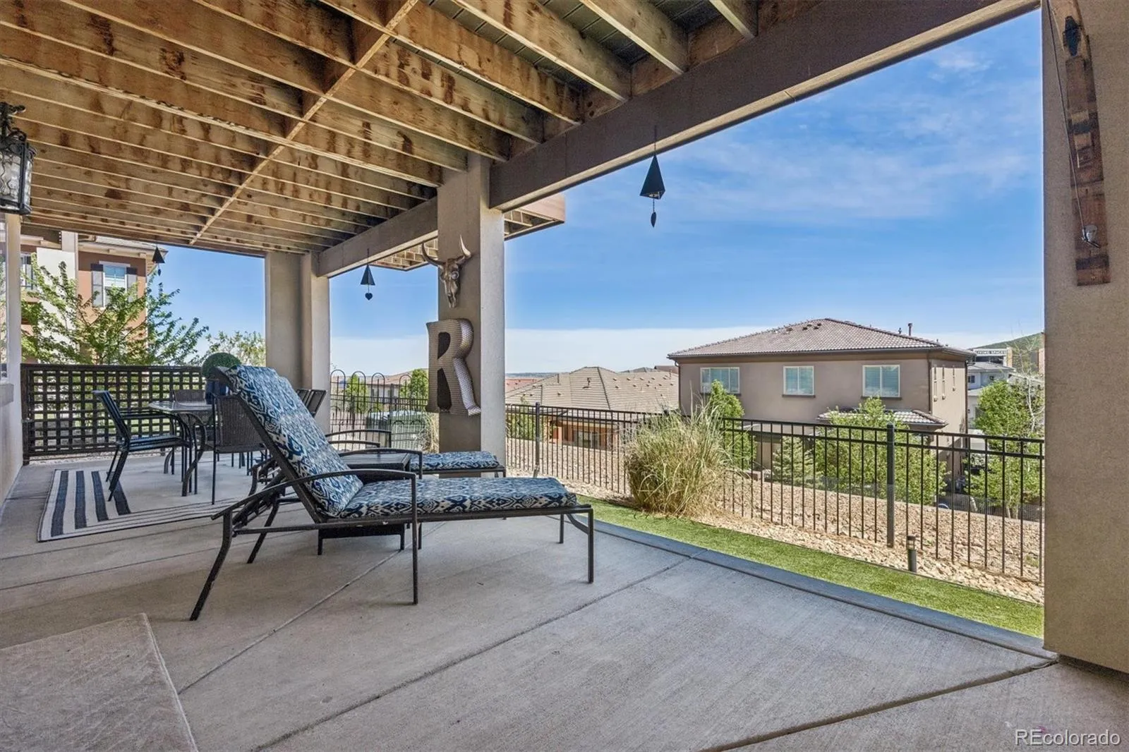 ARTISINAL MASTERPIECE, WELL APPOINTED, CUSTOM DETAILED AND ONE OF A KIND! This Ranch Style Home in the highly coveted Montecito Neighborhood is designed for buyers who value both comfort and thoughtful upgrades. Enjoy watching the sunrise and serene views of the Bluffs in a setting that feels both quiet and elevated. The Main Floor features a spacious En-Suite Primary Bedroom with a Large Walk-In Closet. The Primary Five Piece Bathroom includes a Freestanding Jetted Tub with Lighting, Dual Vanities, Dual Shower, and Smart Toilet Bidet. Spacious Dining Room, Laundry Room, additional Bedroom, and Two Bathrooms. The Kitchen is designed for both everyday living and entertaining with a Waterfall Granite Large Island, Two Ovens, Six Burner Cooktop with Griddle, Hood with Warming Lights, Pantry, and flexible Bonus Area. The Family Room is warm and inviting with a Gas Fireplace and Bluffs views. Covered Patio with Sunshade and Two Gas Lines creates a seamless indoor outdoor experience. Walk-Out Basement with Bedroom, Bathroom, Game Area, Family Room, Storage, and versatile space to personalize. The garage stands out with Tiled Flooring, Tiled Walls, Epoxy Finish, and custom Art Mural. High Ceilings, Natural Light, Plantation Shutters, integrated Speakers, New Custom Garage Doors and New Light Fixtures throughout. Montecito Living includes Pool, Clubhouse, and High Speed Internet. Unbeatable location, Overlooking the Bluffs Regional Park Trail, Near the Lone Tree Recreation Center, Numerous Restaurants and Shopping and easy access to the major highways.
