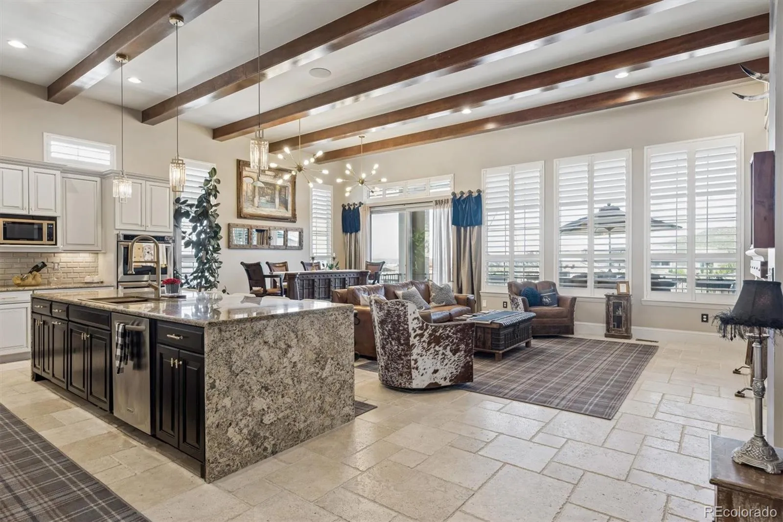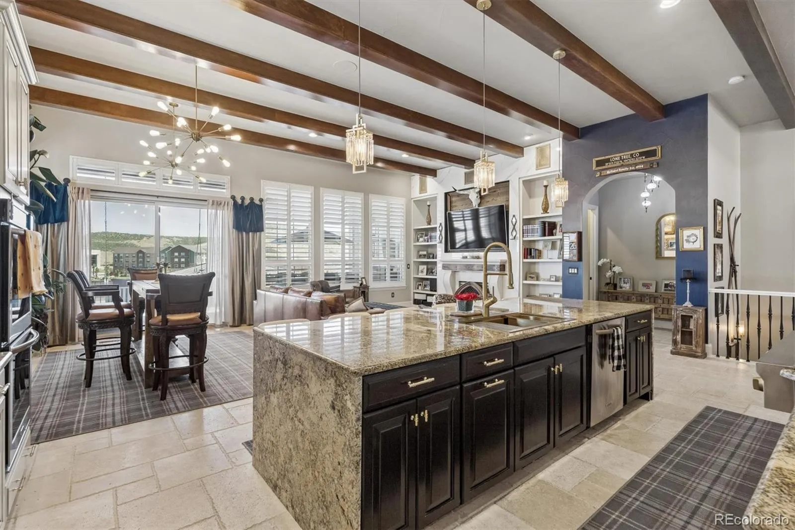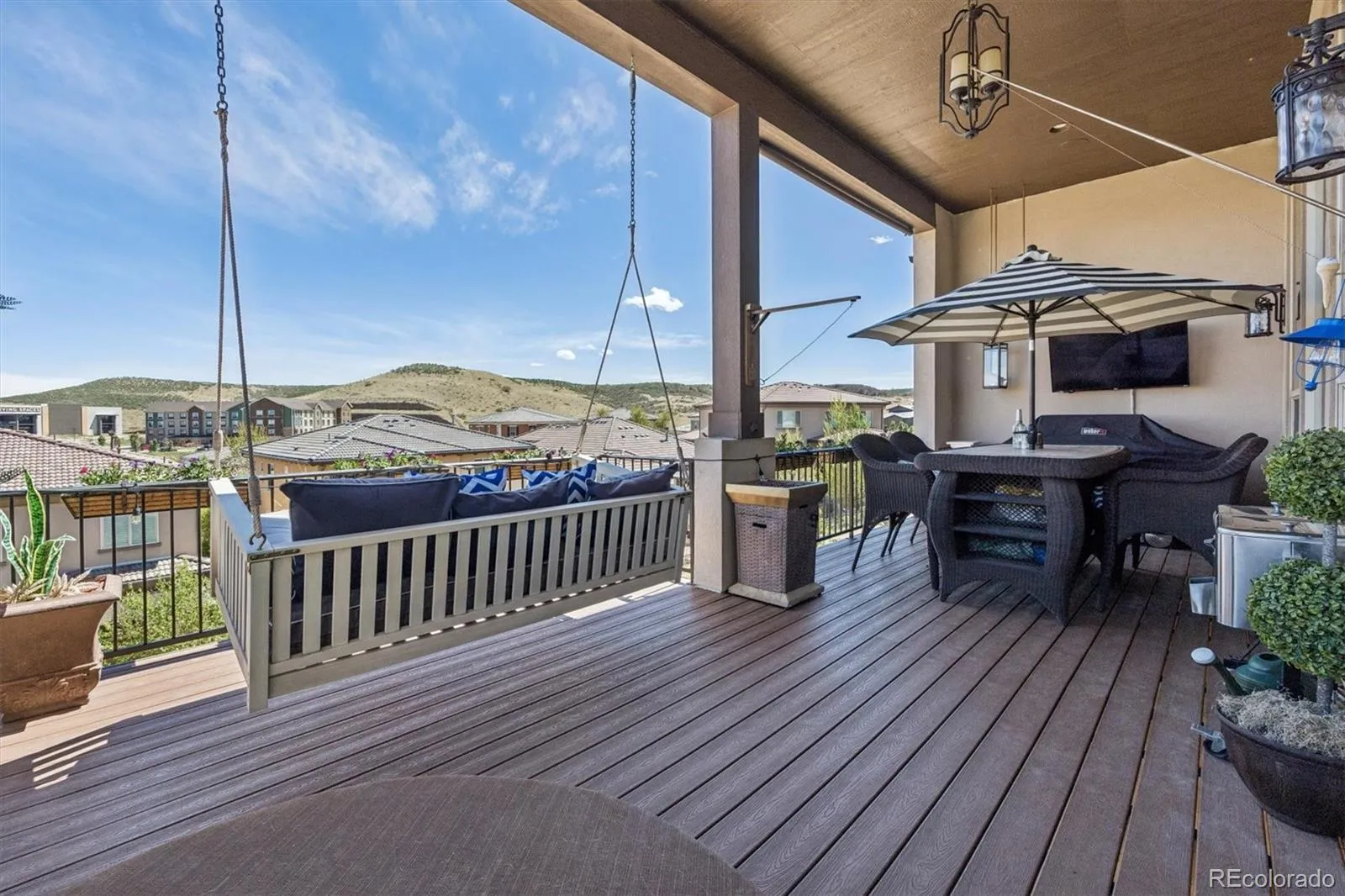 ARTISINAL MASTERPIECE, WELL APPOINTED, CUSTOM DETAILED AND ONE OF A KIND! This Ranch Style Home in the highly coveted Montecito Neighborhood is designed for buyers who value both comfort and thoughtful upgrades. Enjoy watching the sunrise and serene views of the Bluffs in a setting that feels both quiet and elevated. The Main Floor features a spacious En-Suite Primary Bedroom with a Large Walk-In Closet. The Primary Five Piece Bathroom includes a Freestanding Jetted Tub with Lighting, Dual Vanities, Dual Shower, and Smart Toilet Bidet. Spacious Dining Room, Laundry Room, additional Bedroom, and Two Bathrooms. The Kitchen is designed for both everyday living and entertaining with a Waterfall Granite Large Island, Two Ovens, Six Burner Cooktop with Griddle, Hood with Warming Lights, Pantry, and flexible Bonus Area. The Family Room is warm and inviting with a Gas Fireplace and Bluffs views. Covered Patio with Sunshade and Two Gas Lines creates a seamless indoor outdoor experience. Walk-Out Basement with Bedroom, Bathroom, Game Area, Family Room, Storage, and versatile space to personalize. The garage stands out with Tiled Flooring, Tiled Walls, Epoxy Finish, and custom Art Mural. High Ceilings, Natural Light, Plantation Shutters, integrated Speakers, New Custom Garage Doors and New Light Fixtures throughout. Montecito Living includes Pool, Clubhouse, and High Speed Internet. Unbeatable location, Overlooking the Bluffs Regional Park Trail, Near the Lone Tree Recreation Center, Numerous Restaurants and Shopping and easy access to the major highways.