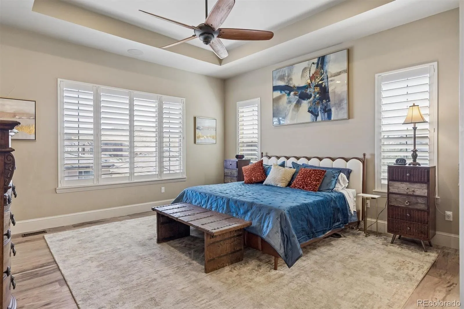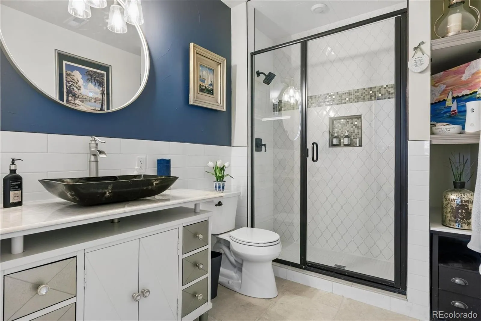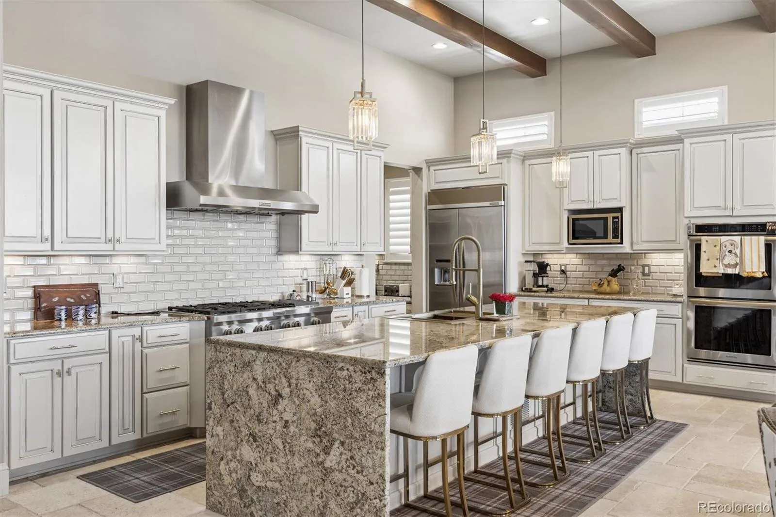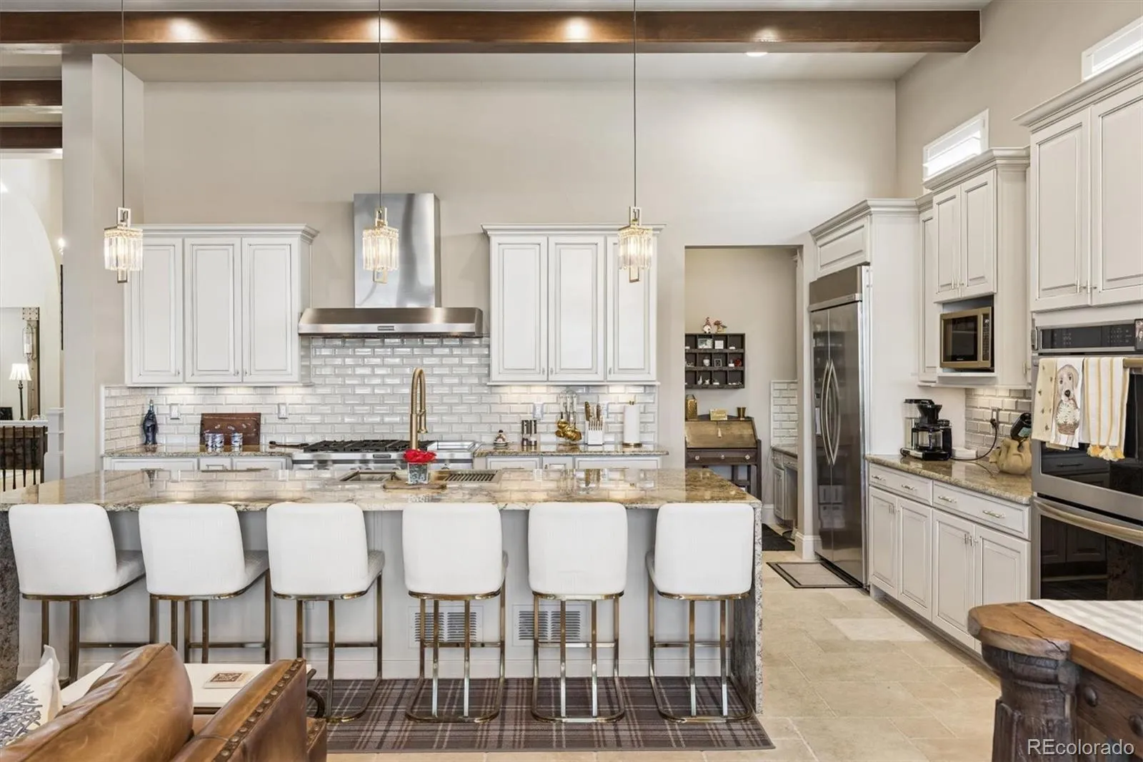 ARTISINAL MASTERPIECE, WELL APPOINTED, CUSTOM DETAILED AND ONE OF A KIND! This Ranch Style Home in the highly coveted Montecito Neighborhood is designed for buyers who value both comfort and thoughtful upgrades. Enjoy watching the sunrise and serene views of the Bluffs in a setting that feels both quiet and elevated. The Main Floor features a spacious En-Suite Primary Bedroom with a Large Walk-In Closet. The Primary Five Piece Bathroom includes a Freestanding Jetted Tub with Lighting, Dual Vanities, Dual Shower, and Smart Toilet Bidet. Spacious Dining Room, Laundry Room, additional Bedroom, and Two Bathrooms. The Kitchen is designed for both everyday living and entertaining with a Waterfall Granite Large Island, Two Ovens, Six Burner Cooktop with Griddle, Hood with Warming Lights, Pantry, and flexible Bonus Area. The Family Room is warm and inviting with a Gas Fireplace and Bluffs views. Covered Patio with Sunshade and Two Gas Lines creates a seamless indoor outdoor experience. Walk-Out Basement with Bedroom, Bathroom, Game Area, Family Room, Storage, and versatile space to personalize. The garage stands out with Tiled Flooring, Tiled Walls, Epoxy Finish, and custom Art Mural. High Ceilings, Natural Light, Plantation Shutters, integrated Speakers, New Custom Garage Doors and New Light Fixtures throughout. Montecito Living includes Pool, Clubhouse, and High Speed Internet. Unbeatable location, Overlooking the Bluffs Regional Park Trail, Near the Lone Tree Recreation Center, Numerous Restaurants and Shopping and easy access to the major highways.