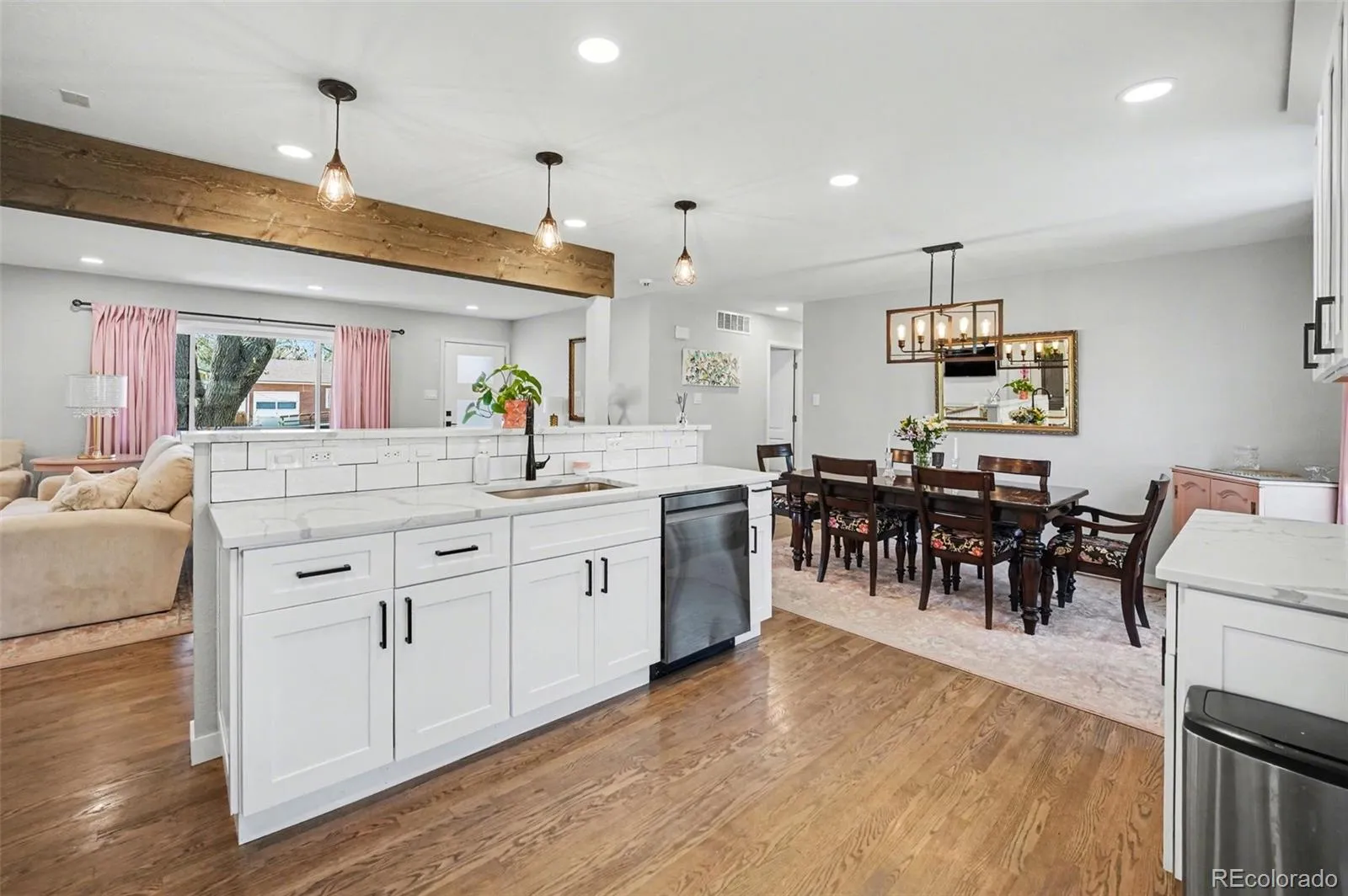Every inch of the home has been carefully updated with both style and comfort in mind. The main level features an open-concept layout, perfect for entertaining or everyday living. The kitchen stands out with quartz countertops, ample cabinet space, and tasteful finishes, seamlessly connecting to the patio for easy indoor-outdoor living and grilling.