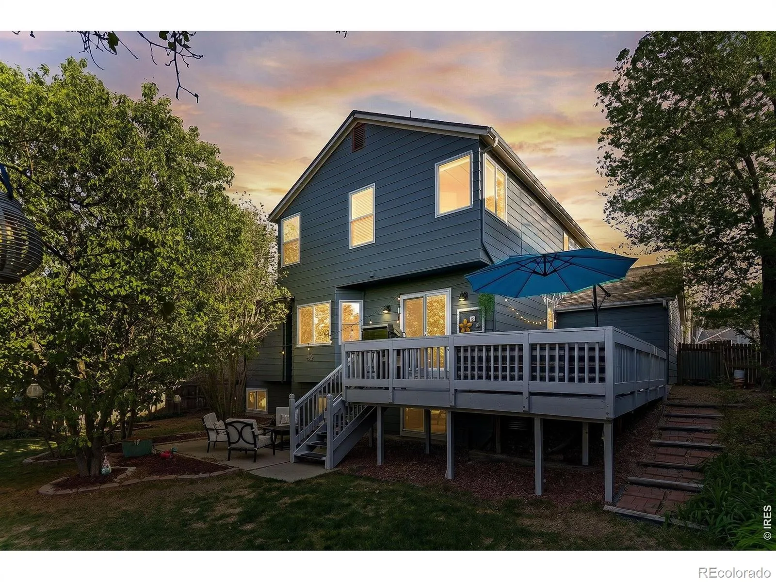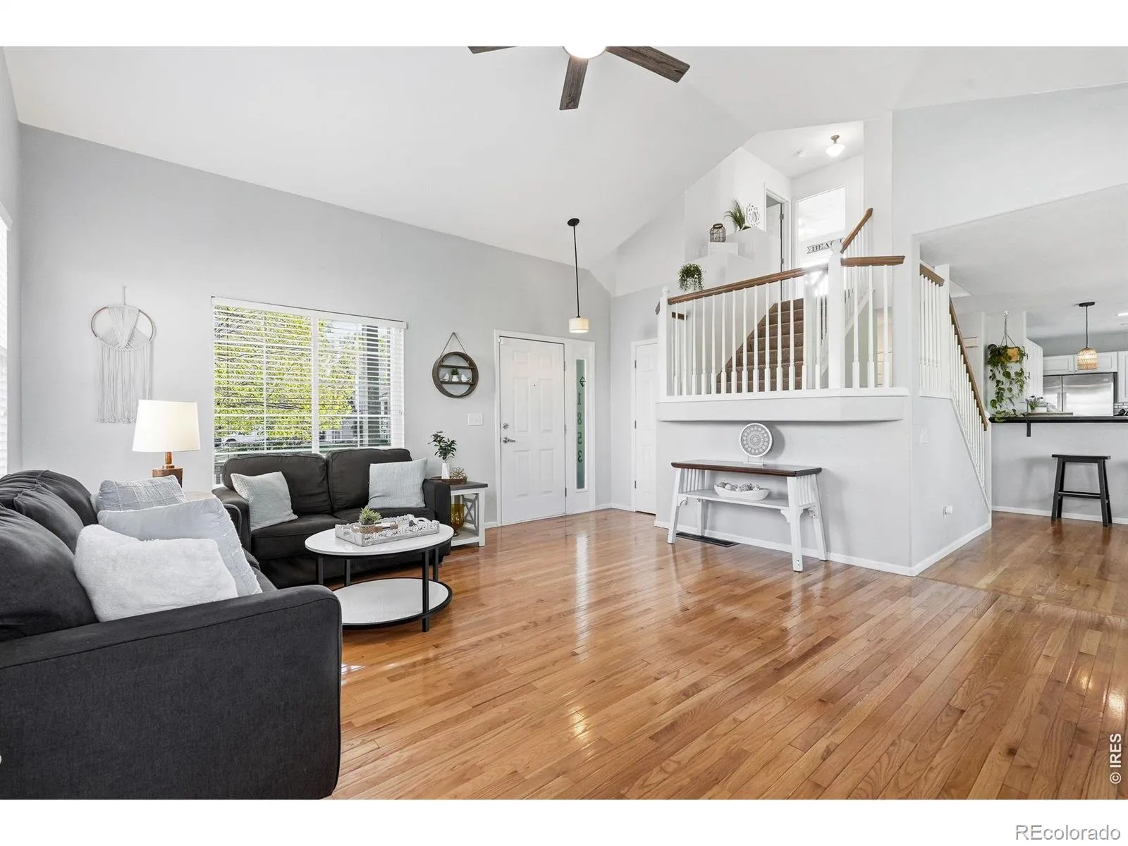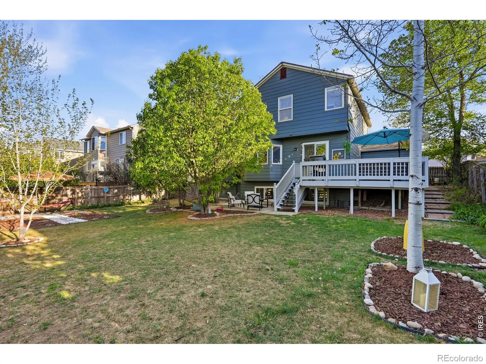 Beautiful 4 BR,4 BA home backing to Country Fields Open Space. Go through the backyard to the multi path & walk or ride to school, rec center, library, shops & restaurants. Hardwood floors though out the main level, open floor plan w/ vaulted ceilings & lots of natural light, gas fireplace in the living room. The kitchen features quartz counters, white cabinetry, modern recessed lighting, subway tile backsplash, & breakfast bar. Private primary bedroom w/ on suite bathroom. Huge finished basement with additional bedroom & bathroom. Great comfy Rec room with pool table. A 3-car garage holds all your toys. The large private fenced in backyard w/ patio area under the trees. Or enjoy the large deck off the kitchen. Newer windows bring peace of mind. This home is move in ready to enjoy!
