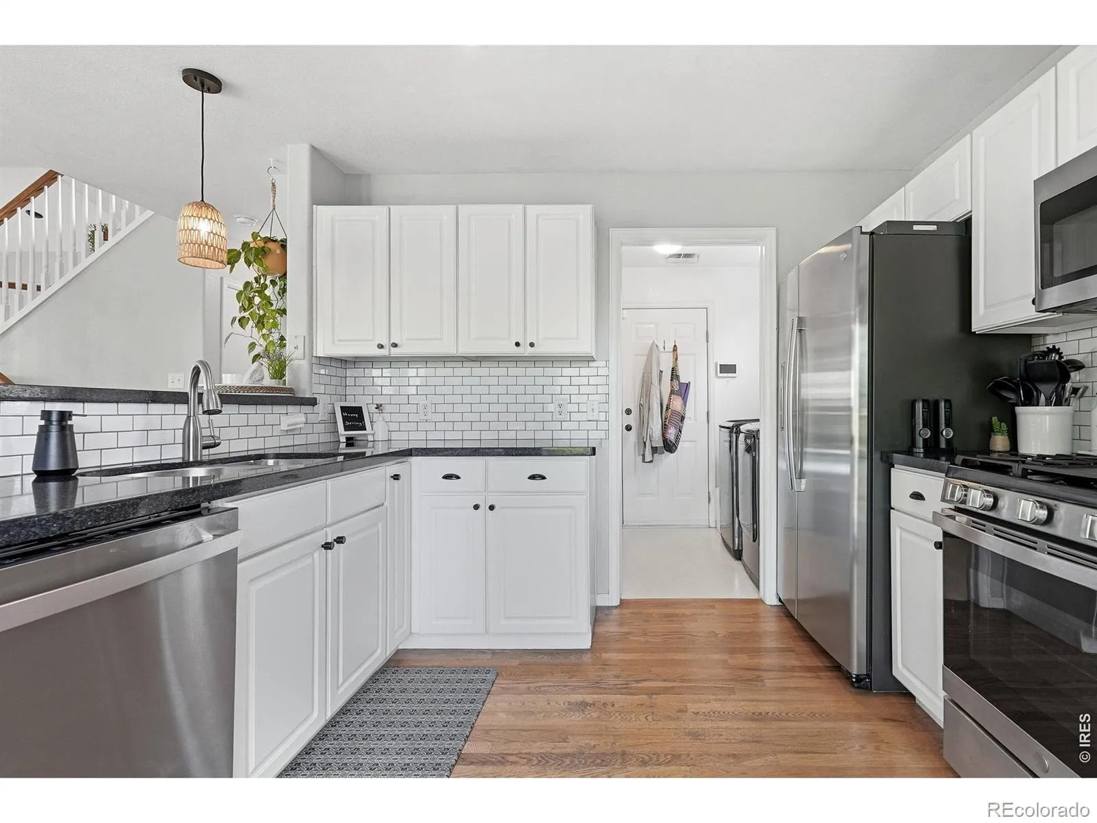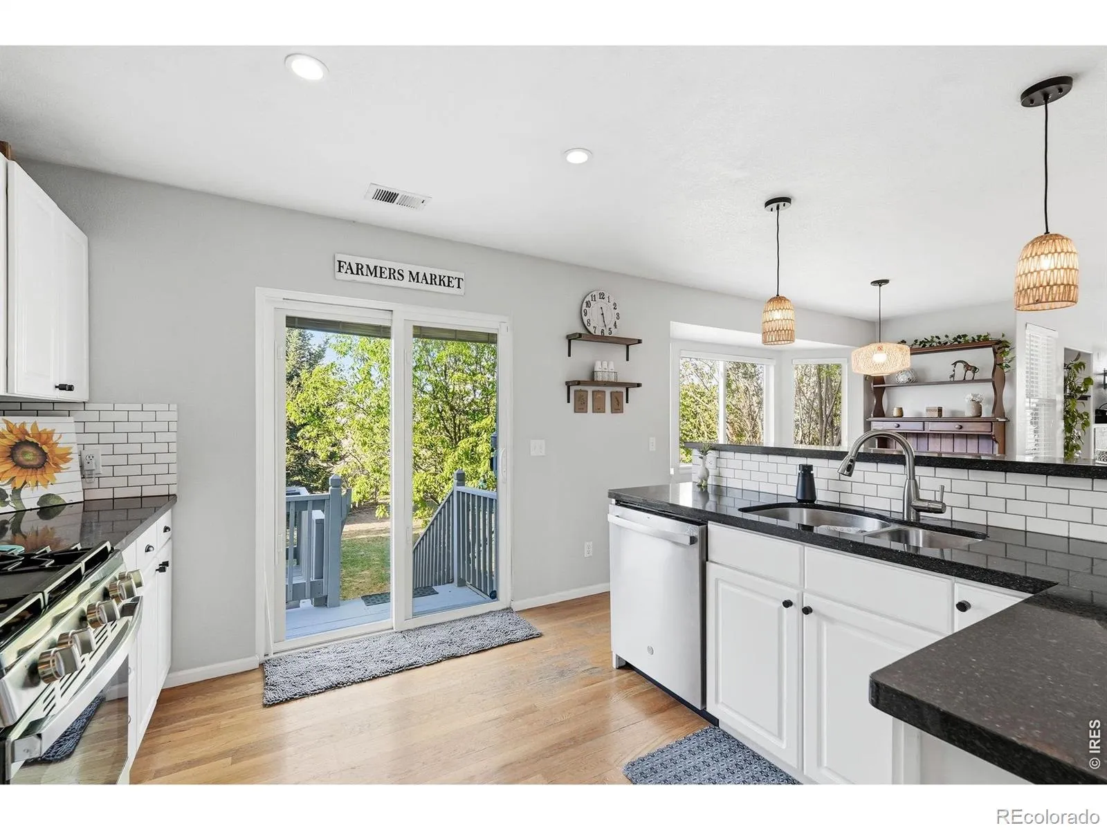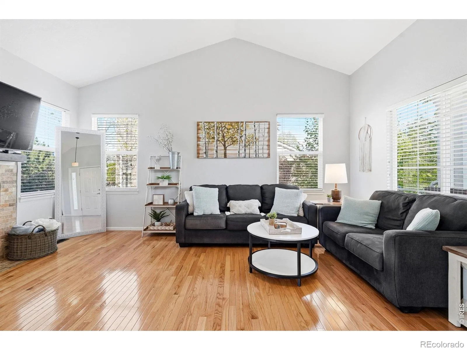 Beautiful 4 BR,4 BA home backing to Country Fields Open Space. Go through the backyard to the multi path & walk or ride to school, rec center, library, shops & restaurants. Hardwood floors though out the main level, open floor plan w/ vaulted ceilings & lots of natural light, gas fireplace in the living room. The kitchen features quartz counters, white cabinetry, modern recessed lighting, subway tile backsplash, & breakfast bar. Private primary bedroom w/ on suite bathroom. Huge finished basement with additional bedroom & bathroom. Great comfy Rec room with pool table. A 3-car garage holds all your toys. The large private fenced in backyard w/ patio area under the trees. Or enjoy the large deck off the kitchen. Newer windows bring peace of mind. This home is move in ready to enjoy!