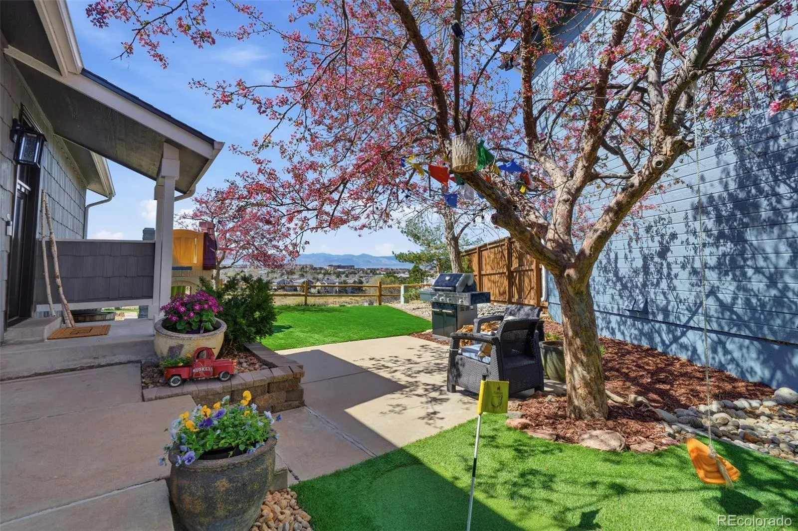 This is THE ONE! Scan QR Code to Virtually Tour this beautifully updated & light-filled Highlands Ranch gem that is perfectly situated on Open Space offering amazing Mountain Views and a private backyard designed for Colorado living. Ideally located near parks, trails, shopping, and recreation centers, this move-in ready home blends comfort, convenience, and community in a great Highlands Ranch neighborhood! The main level features a fully remodeled kitchen with stainless steel appliances, sleek countertops, a stylish backsplash, dedicated coffee bar, and inviting eat-in dining area. Fresh interior paint, refinished hardwood floors, brand new carpet, updated lighting, and modern finishes throughout create a clean, move-in ready feel from the moment you enter. Stylish horizontal wrought-iron railings add a contemporary touch. The layout offers both a comfortable living room adjacent to the kitchen and a few short steps down to the lower level is a sunken family room perfect for casual everyday living. Lower level also offers a convenient bedroom, 3/4 bathroom & Laundry. Upstairs, the primary bedroom is paired with an updated full bathroom and and thoughtful addition with separate “wing” that includes a Bonus Room, two more bedrooms and a 3/4 bath. This layout provides endless possibilities for growing households, work-from-home needs, hobbies, or guest accommodations. Outside is a private backyard retreat—perfect for summer evenings, pets, playtime, or relaxing on the Stamped Concrete Patio watching the weather roll in or the sun set behind the Front Range Mountains. Whether you’re hosting friends or enjoying a quiet morning coffee, the outdoor space complete with a putting green and low maintenance turf adds another level of livability. Don’t miss this very rare find in Highlands Ranch with the million dollar views without the million dollar price tag!