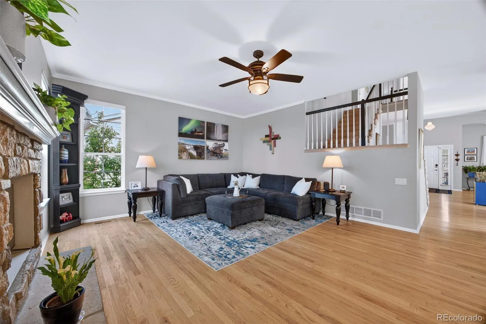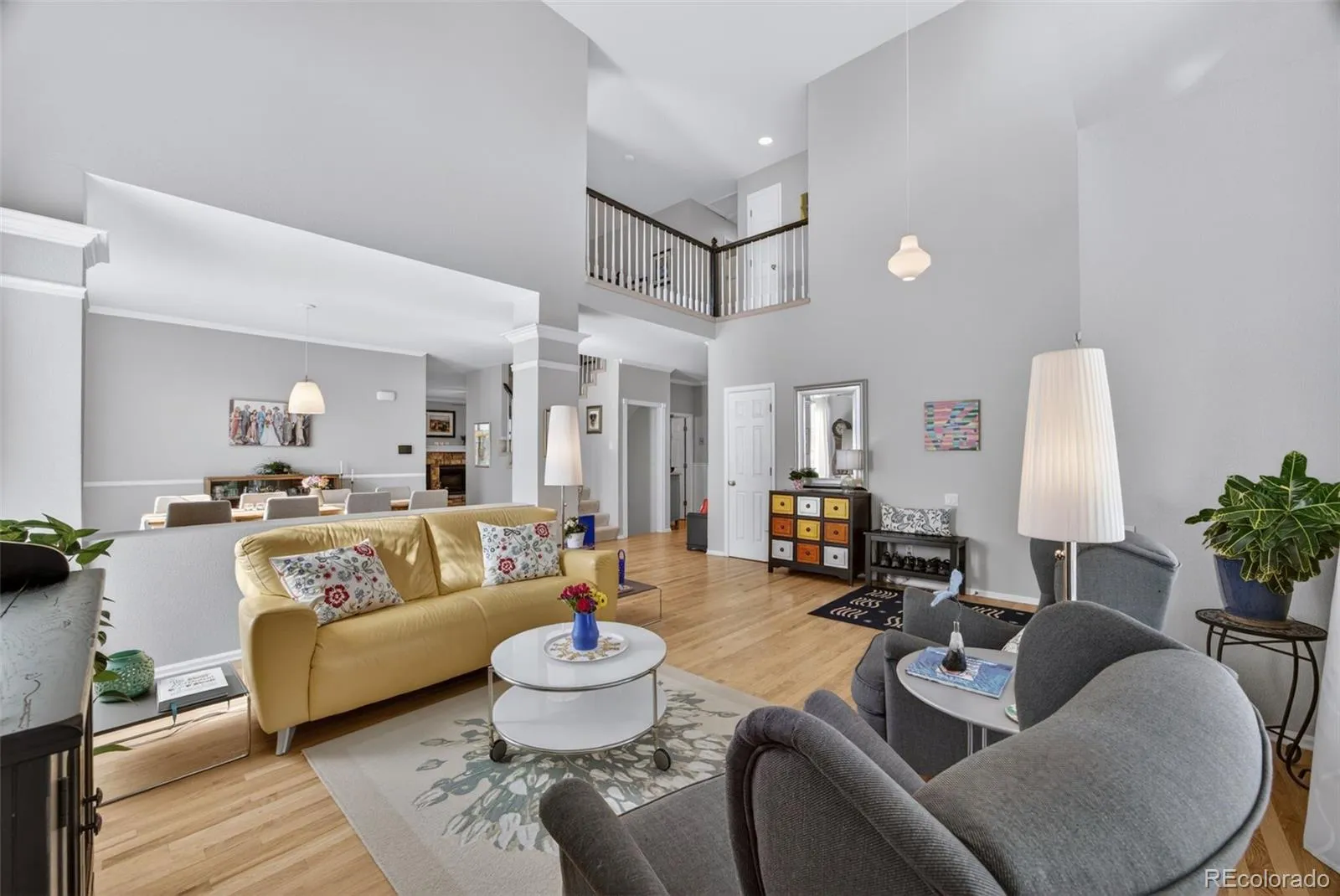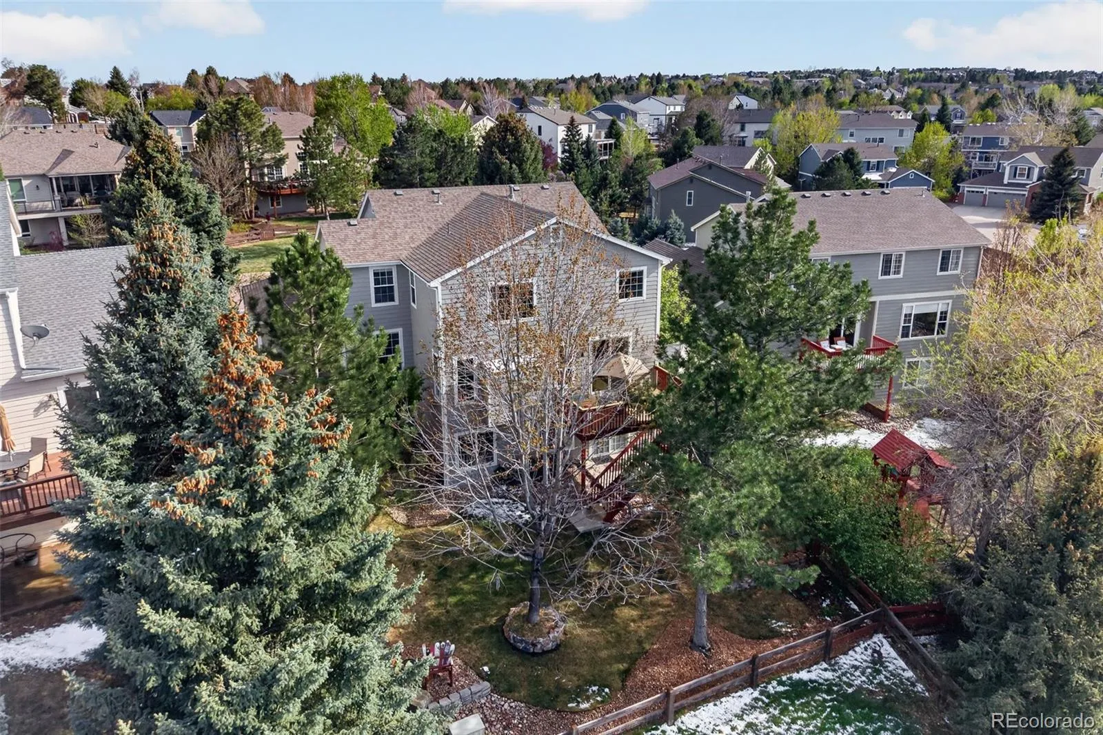 Amazing VIEWS, Backing to GREENBELT, Exceptional FLOORPLAN, Absolute SERENITY, Desirable LOCATION in the highly sought-after Castle Pines neighborhood! Pride in ownership is apparent as this 6-bedroom, 4-bathroom home has been updated and meticulously maintained. Front door opens to a soaring vaulted ceiling and living room drenched in natural light. The gleaming hardwood flooring throughout the main level leads to a spacious dining room and a stunning kitchen, and family room with views out the back of the home that quickly captures the eyes! The kitchen features stainless appliances (new stove/double ovens, refrigerator), granite counters, sizable island, and pantry. The back deck is the perfect way to start/end a day relaxing. Back into the house to see an extensive family room with a cozy gas fireplace, and a dedicated office, with French glass doors. Powder bath completes the main floor. Upstairs boasts 4 bedrooms that include a peaceful primary suite. Enjoy mountain and greenbelt views from the expansive windows. The luxurious 5-piece primary bath has it all; dual sinks, large shower and soaking tub. Walk in closet tops it all off. The remaining 3 bedrooms are light and bright, with ample closet space and easy access to the full bath in the main hallway. The laundry room is conveniently located near the bedrooms. The walk-out basement features 2 additional bedrooms, a full bath, plenty of storage, and a spacious great room complete with gas fireplace. Views of the greenbelt are stunning. A 3-car attached garage offers a workbench and wired for EV charger. Other highlights include: hail resistant roof, New AC and water heater, central humidifier, and recessed lighting throughout. Enjoy privacy and seclusion in this Colorado oasis. Walking distance to award winning Douglas County elementary school, community pool, clubhouse, parks, trails, hiking, biking, The Ridge Golf Course and Daniels Park Bison Sanctuary. Move-in, Relax, and Enjoy!